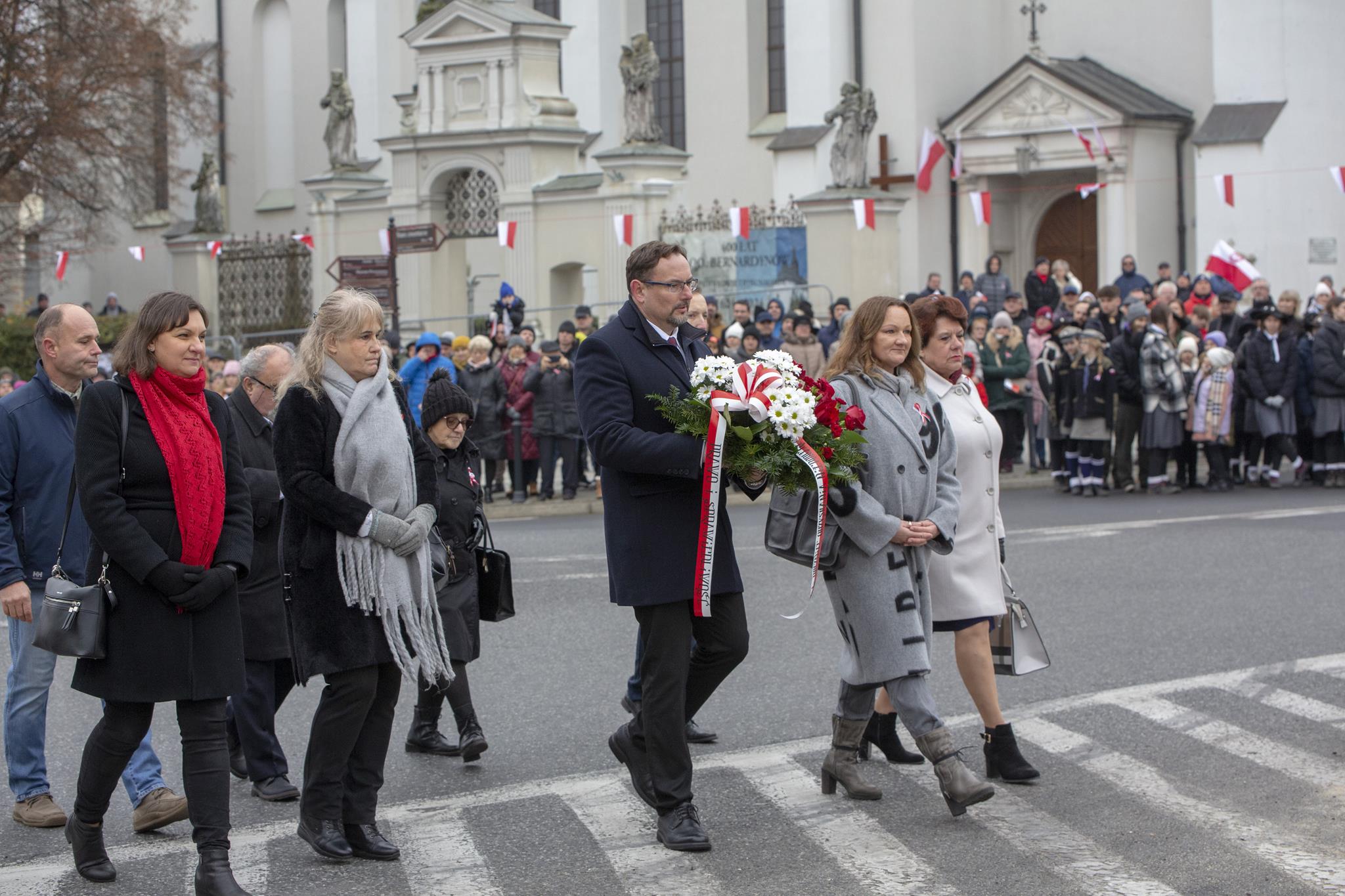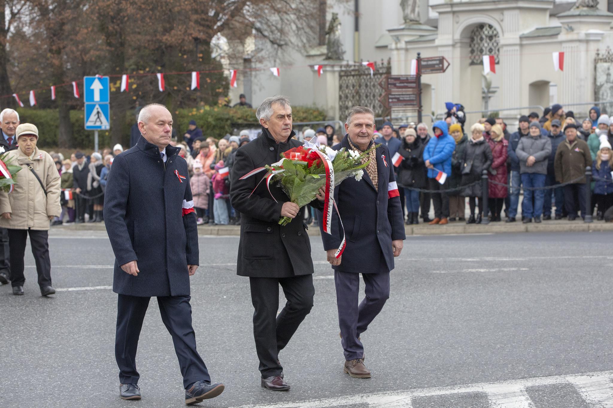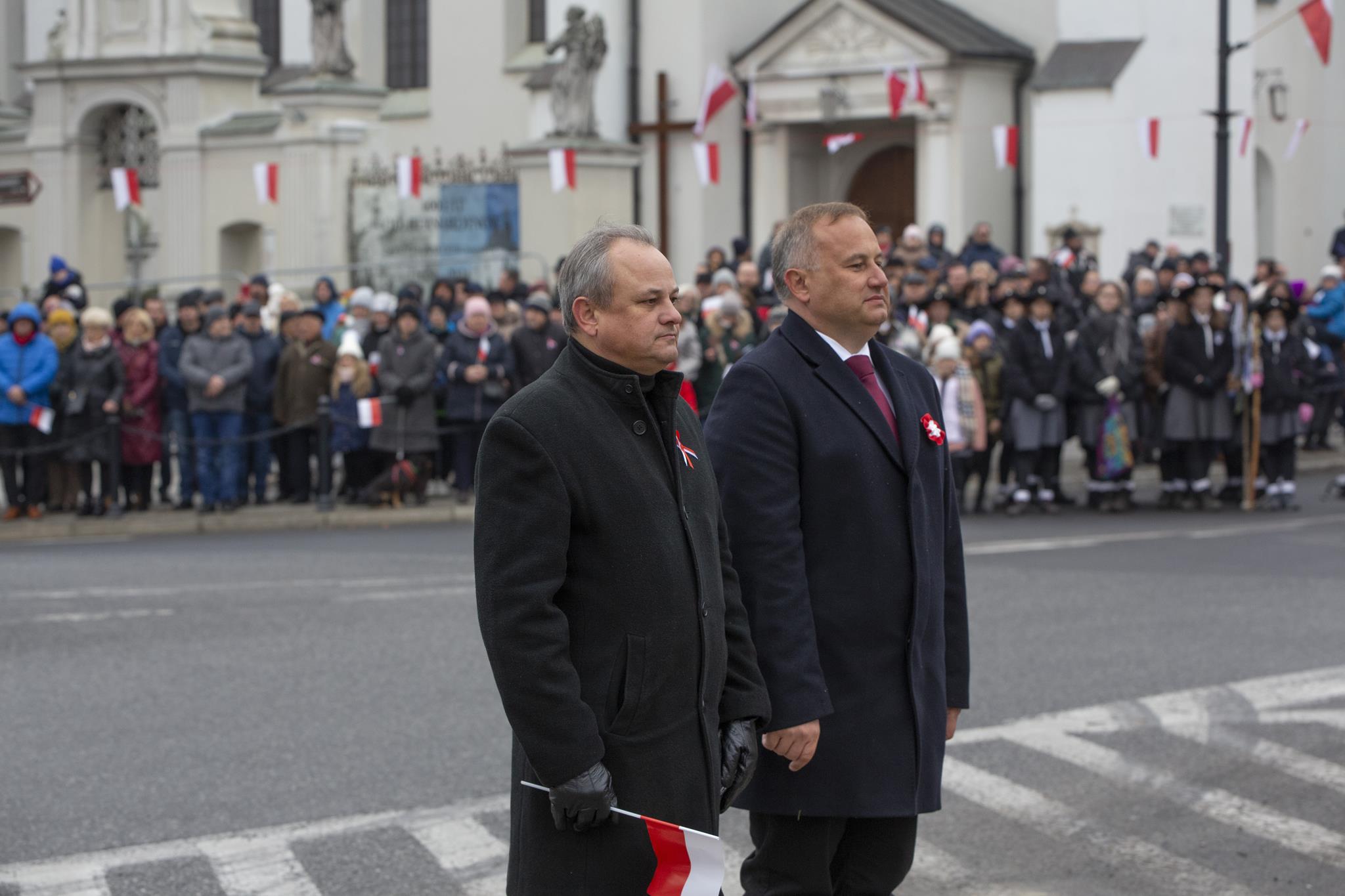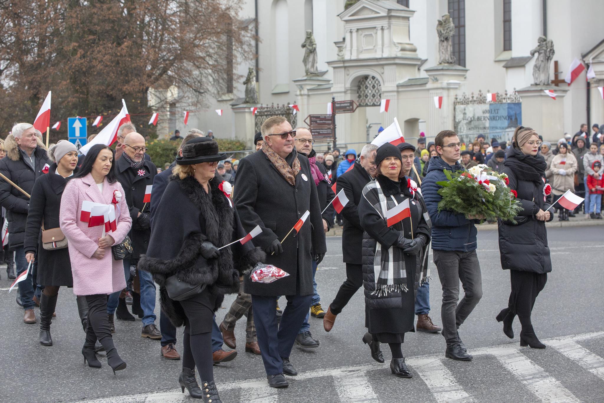 Całość rozpoczęła się od mszy świętej odprawionej w intencji Ojczyzny w kościele oo. Bernardynów. Po liturgii przybyli przeszli przy akompaniamencie Miejskiej Orkiestry Dętej i asyście żołnierzy Kompanii Honorowej 25. Brygady Kawalerii Powietrznej z Tomaszowa Mazowieckiego oraz licznie zebranych pocztów sztandarowych na plac Kościuszki. Tutaj pod pomnikiem Grobu Nieznanego Żołnierza uroczyście wciągnięto na maszt flagę państwową, odśpiewano hymn narodowy, po czym prezydent Juliusz Wiernicki wygłosił okolicznościowe przemówienie.