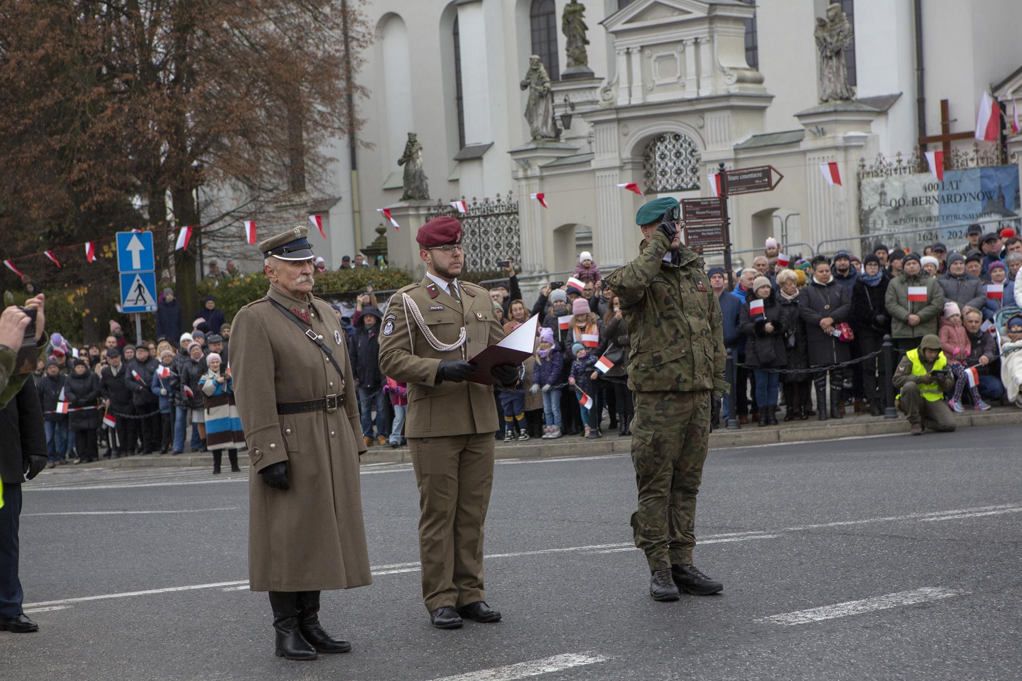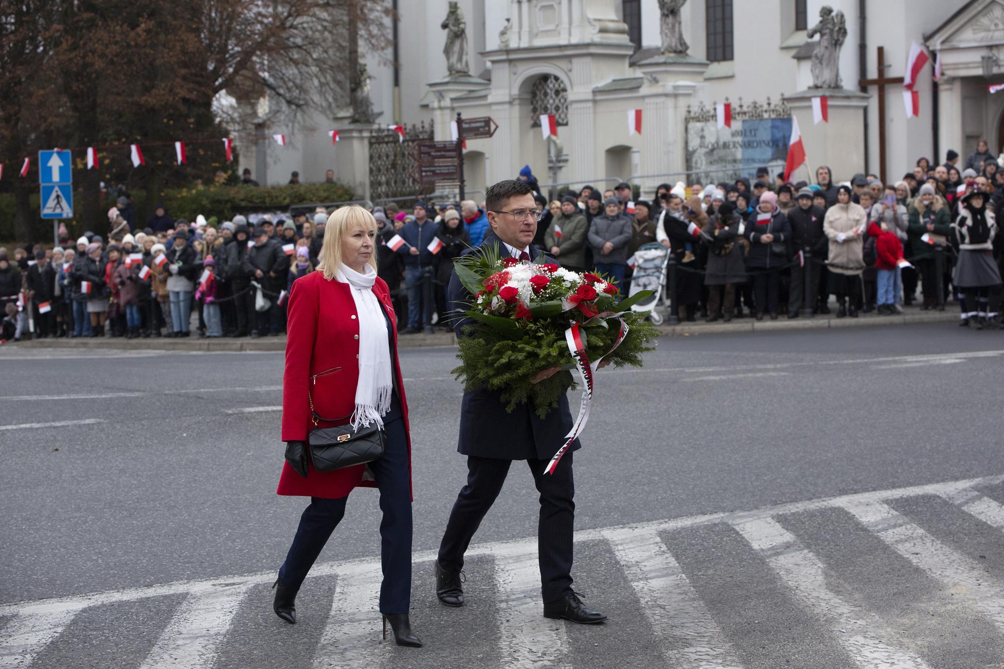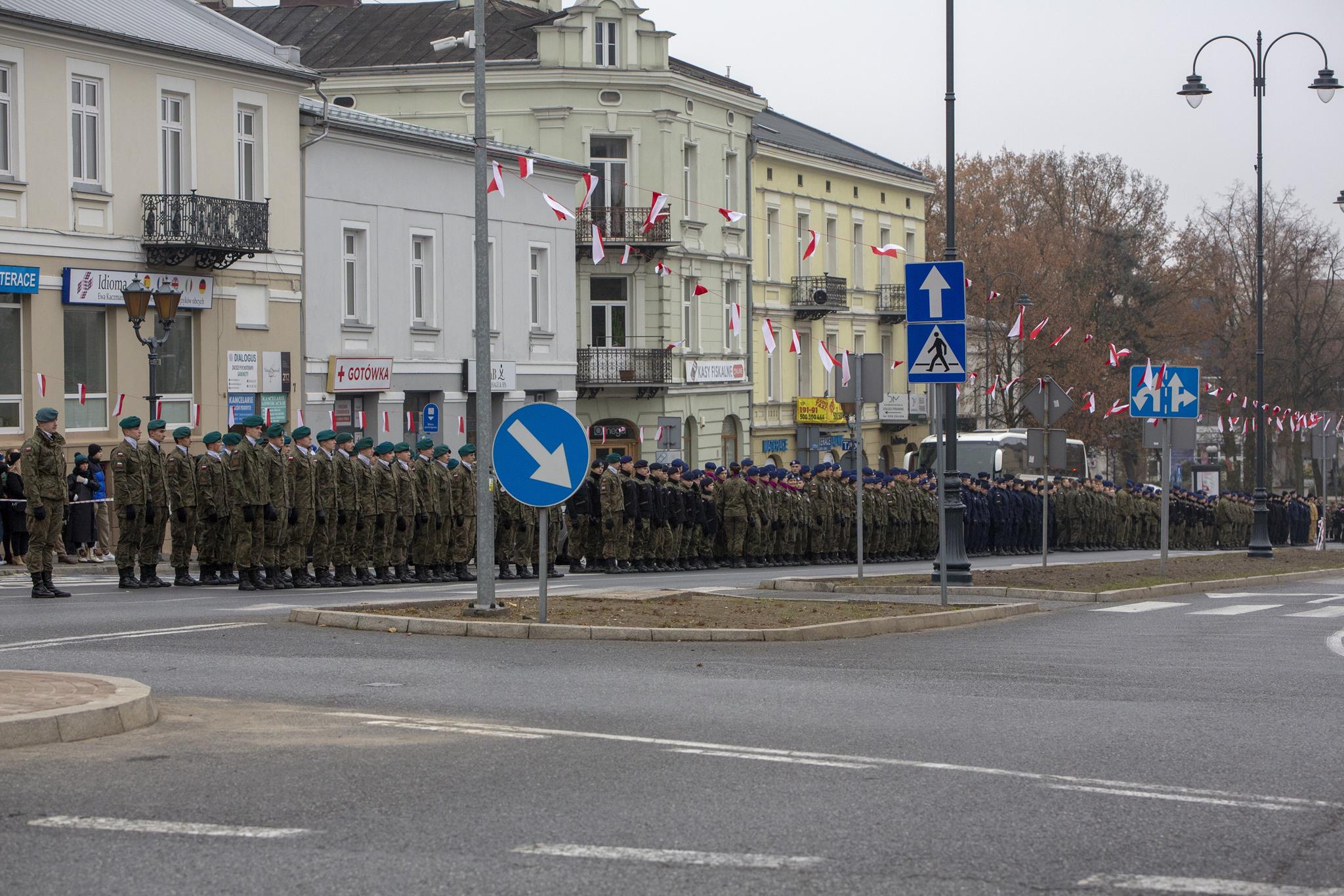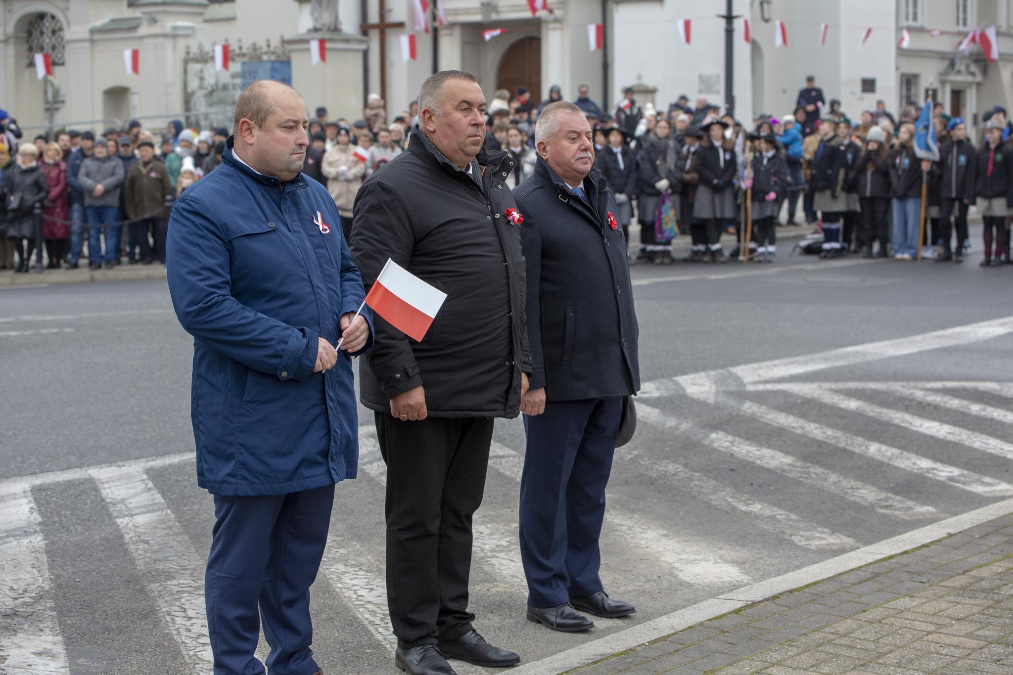 Całość rozpoczęła się od mszy świętej odprawionej w intencji Ojczyzny w kościele oo. Bernardynów. Po liturgii przybyli przeszli przy akompaniamencie Miejskiej Orkiestry Dętej i asyście żołnierzy Kompanii Honorowej 25. Brygady Kawalerii Powietrznej z Tomaszowa Mazowieckiego oraz licznie zebranych pocztów sztandarowych na plac Kościuszki. Tutaj pod pomnikiem Grobu Nieznanego Żołnierza uroczyście wciągnięto na maszt flagę państwową, odśpiewano hymn narodowy, po czym prezydent Juliusz Wiernicki wygłosił okolicznościowe przemówienie.