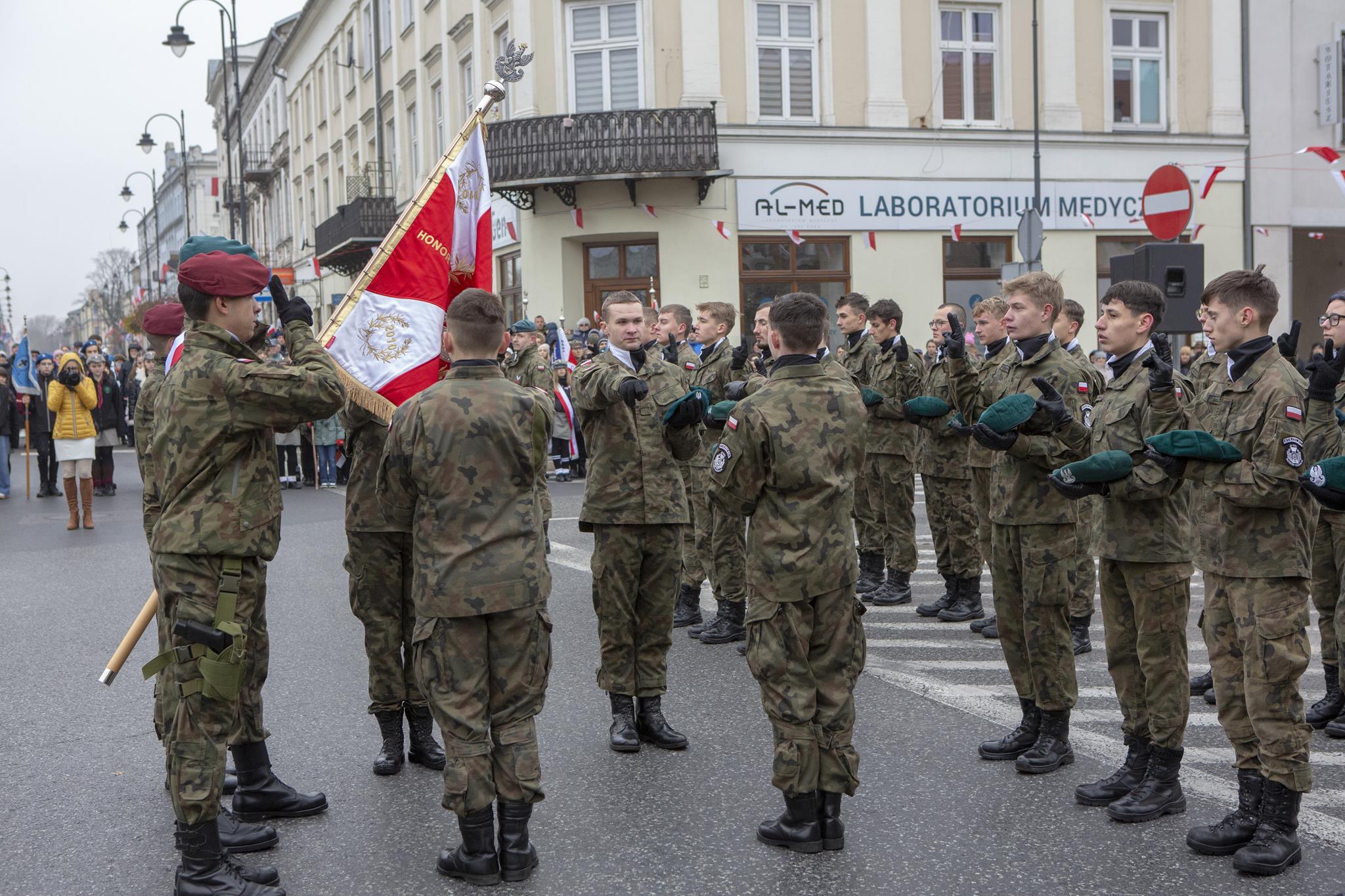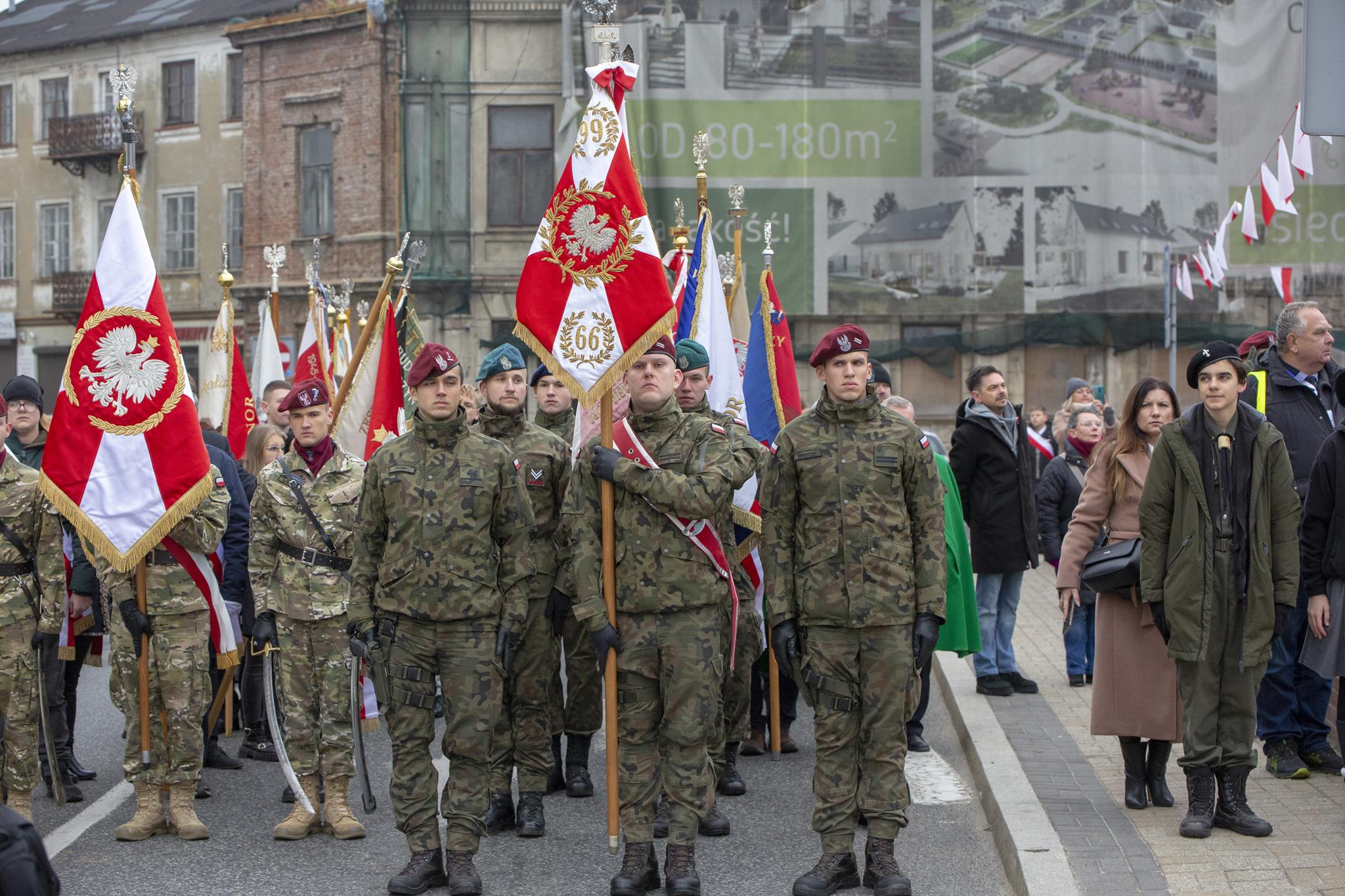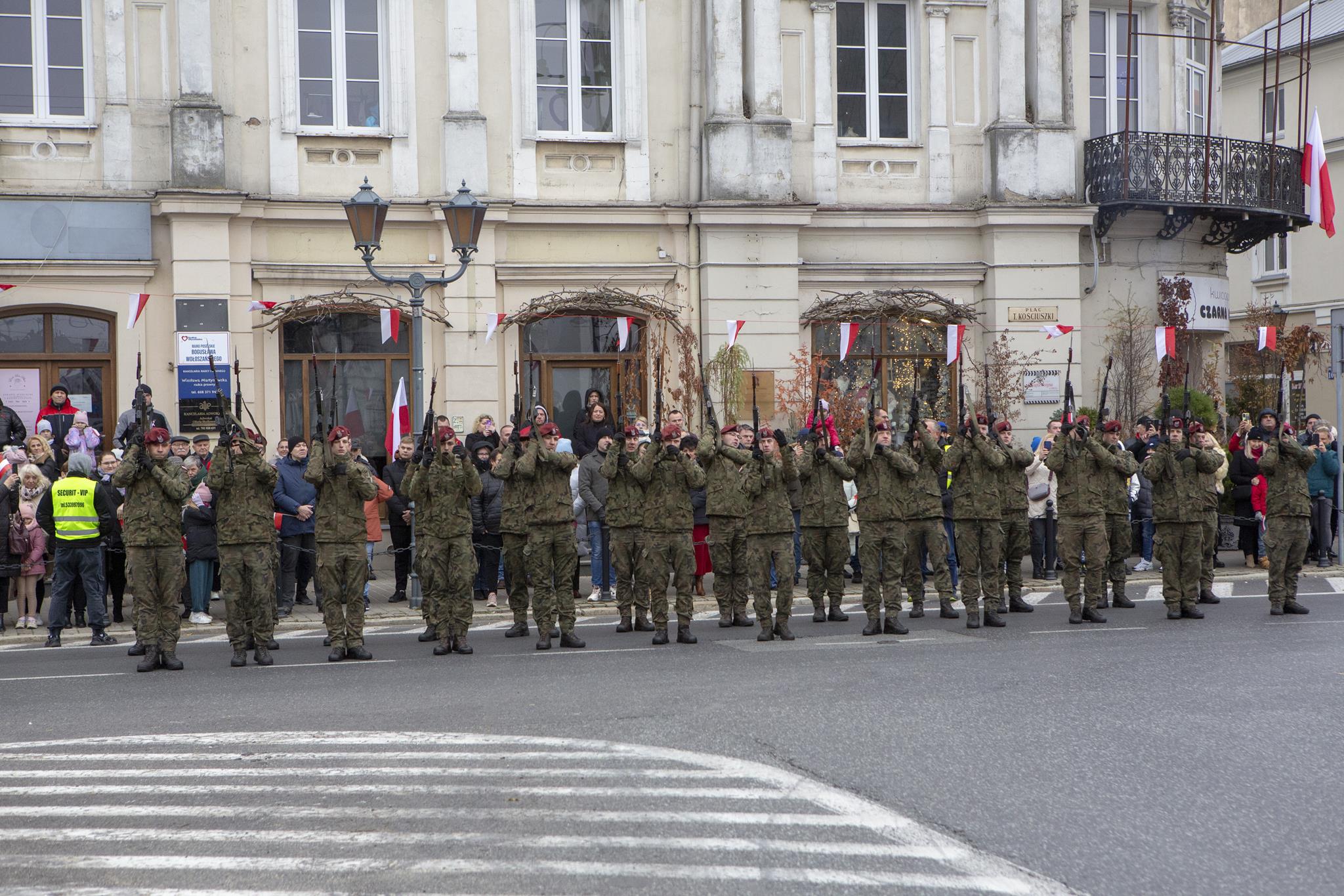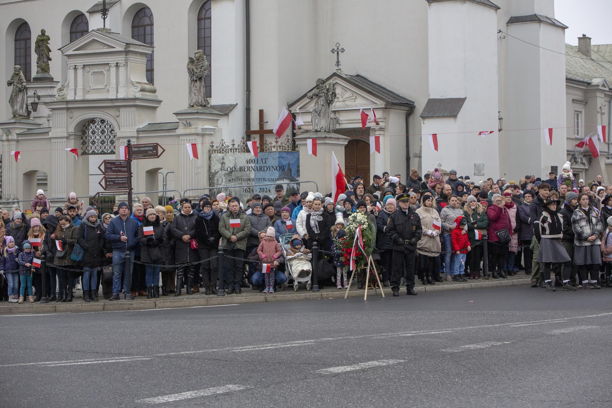 Całość rozpoczęła się od mszy świętej odprawionej w intencji Ojczyzny w kościele oo. Bernardynów. Po liturgii przybyli przeszli przy akompaniamencie Miejskiej Orkiestry Dętej i asyście żołnierzy Kompanii Honorowej 25. Brygady Kawalerii Powietrznej z Tomaszowa Mazowieckiego oraz licznie zebranych pocztów sztandarowych na plac Kościuszki. Tutaj pod pomnikiem Grobu Nieznanego Żołnierza uroczyście wciągnięto na maszt flagę państwową, odśpiewano hymn narodowy, po czym prezydent Juliusz Wiernicki wygłosił okolicznościowe przemówienie.