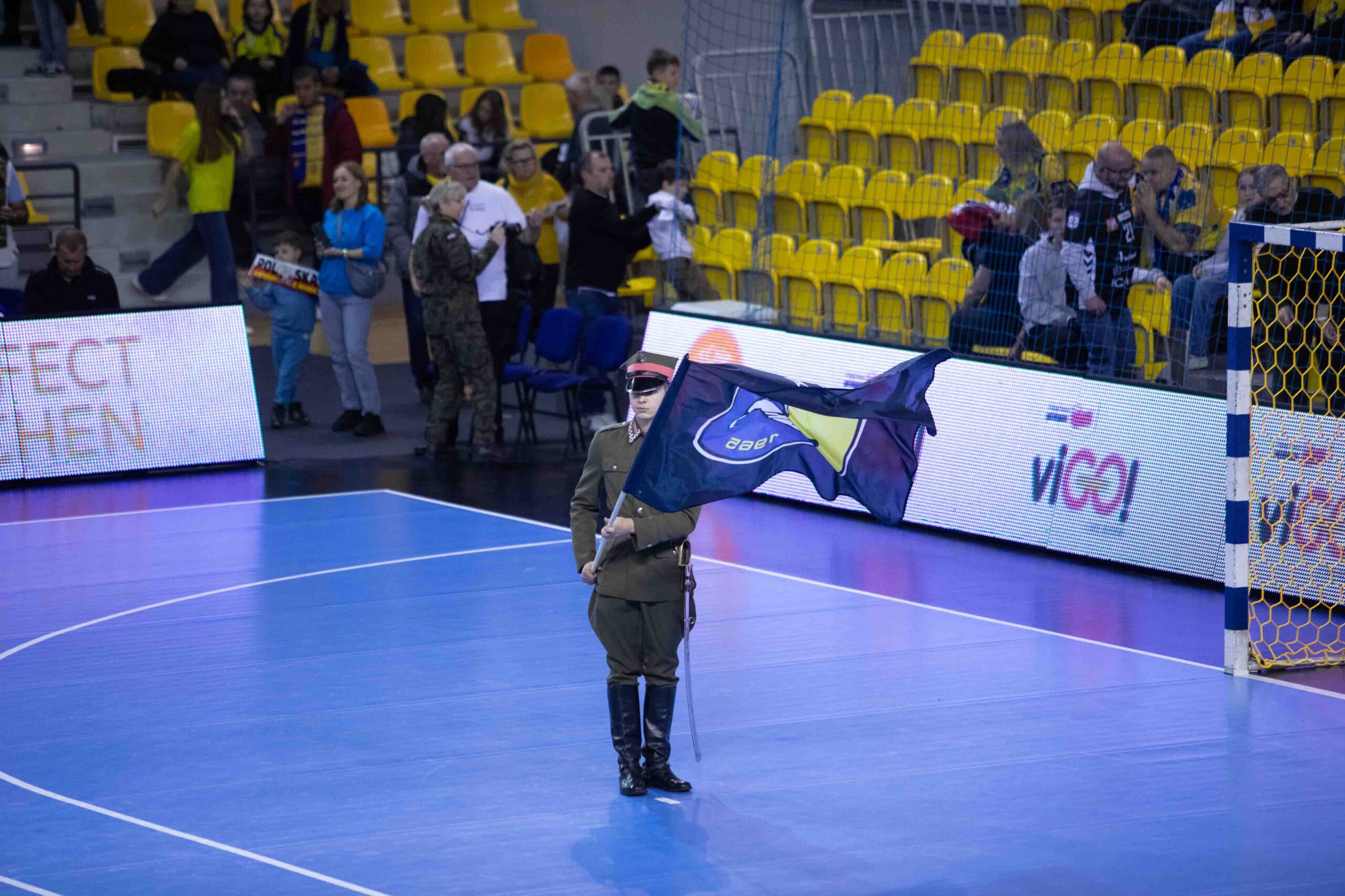 Sobotni mecz w Hali Legionów był wyjątkowy dla Kielczan z kilku powodów. Po pierwsze ze względu na obchodzony kilka dni temu Narodowy Dzień Niepodległości miał on patriotyczną oprawę. Przed meczem żołnierze z 10. Świętokrzyskiej Brygady Obrony Terytorialnej oraz Centrum Przygotowań do Misji Zagranicznych wynieśli biało-czerwoną flagę, odśpiewany został hymn państwowy, w holu wojskowi mieli swoje stoiska promocyjne, częstowali kibiców grochówką, a przed obiektem prezentowane były pojazdy wojskowe.