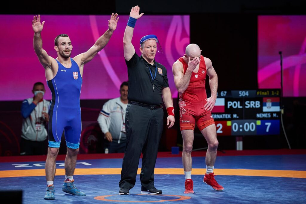 Zawodnik AKS rozpoczął turniej od wygranej 3:1 walki w 1/8 finału z Mołdawianinem Doniorem Isłamowem, w której popisał się efektownym wózkiem. Kolejną zwyciężył przez walkower, ponieważ jego przeciwnik, medalista mistrzostw świata i Europy Rosjanin Artjom Surkow, nie wyszedł na matę. W pojedynku o finał na początku popełnił błąd, ale zdołał odrobić straty i po pełnym emocji i zwrotów akcji starciu ostatecznie pokonał 5:4 Ormianina Slawika Galstjana, brązowego medalistę mistrzostw świata 2019 i Pucharu Świata 2020. W finale także rozpoczął od wyniku 0:4, ale tym razem jego przeciwnik, doświadczony Serb Mate Nemes, nie oddał prowadzenia i zwyciężył 7:2.
