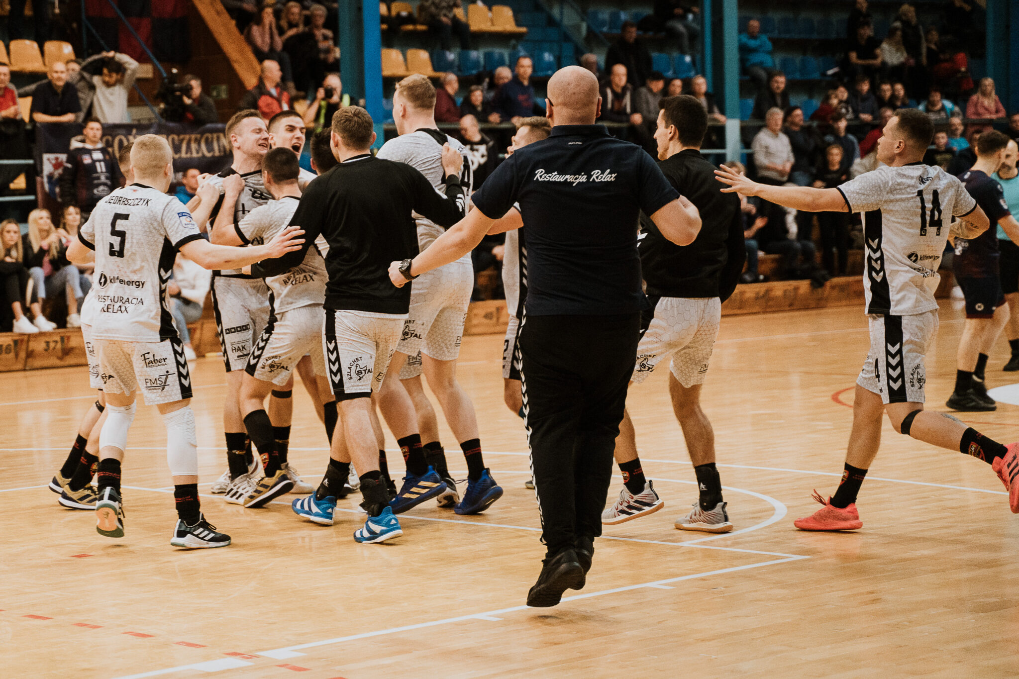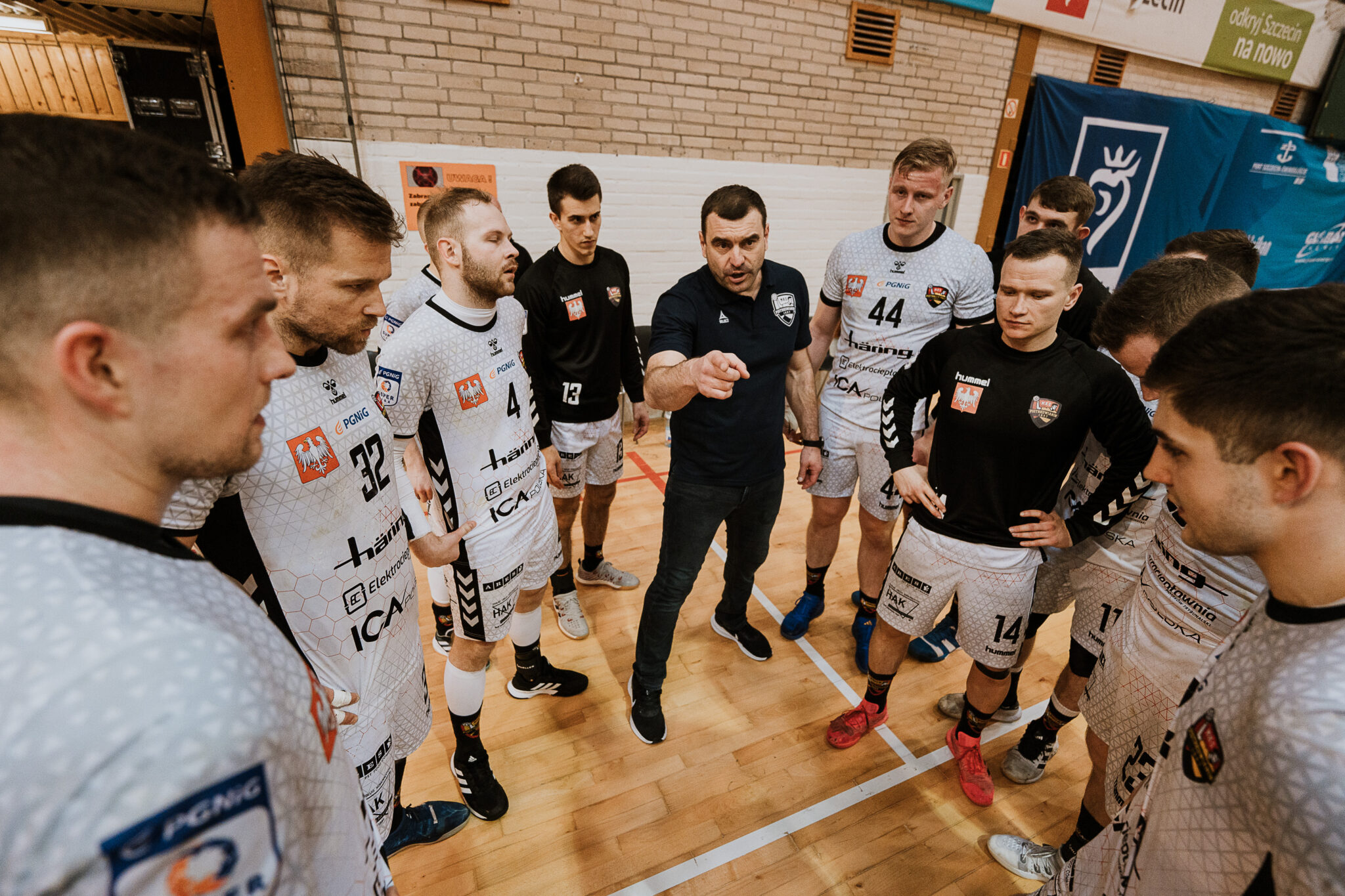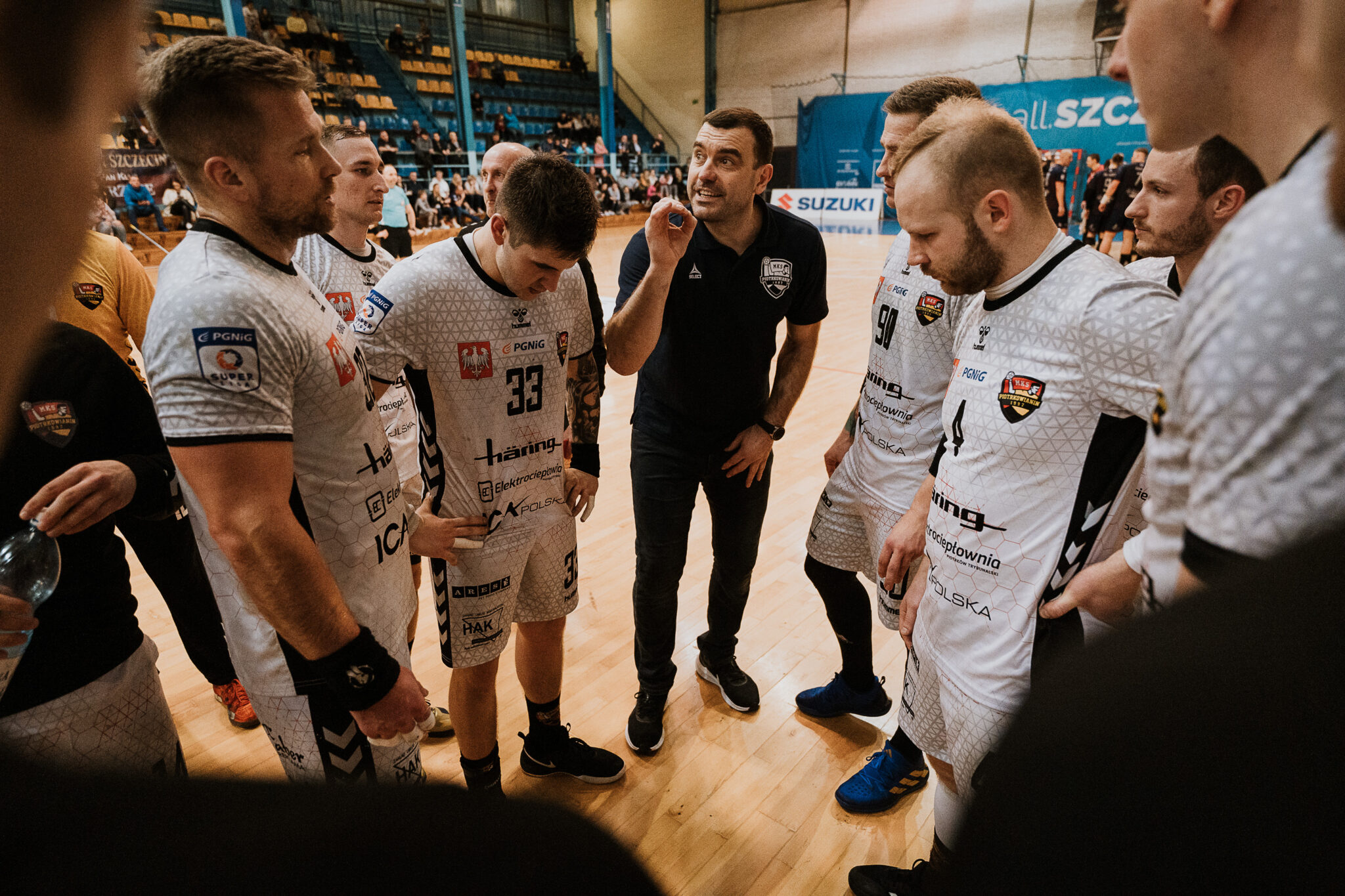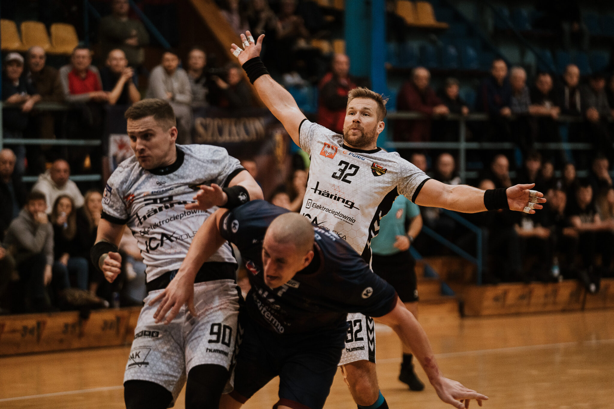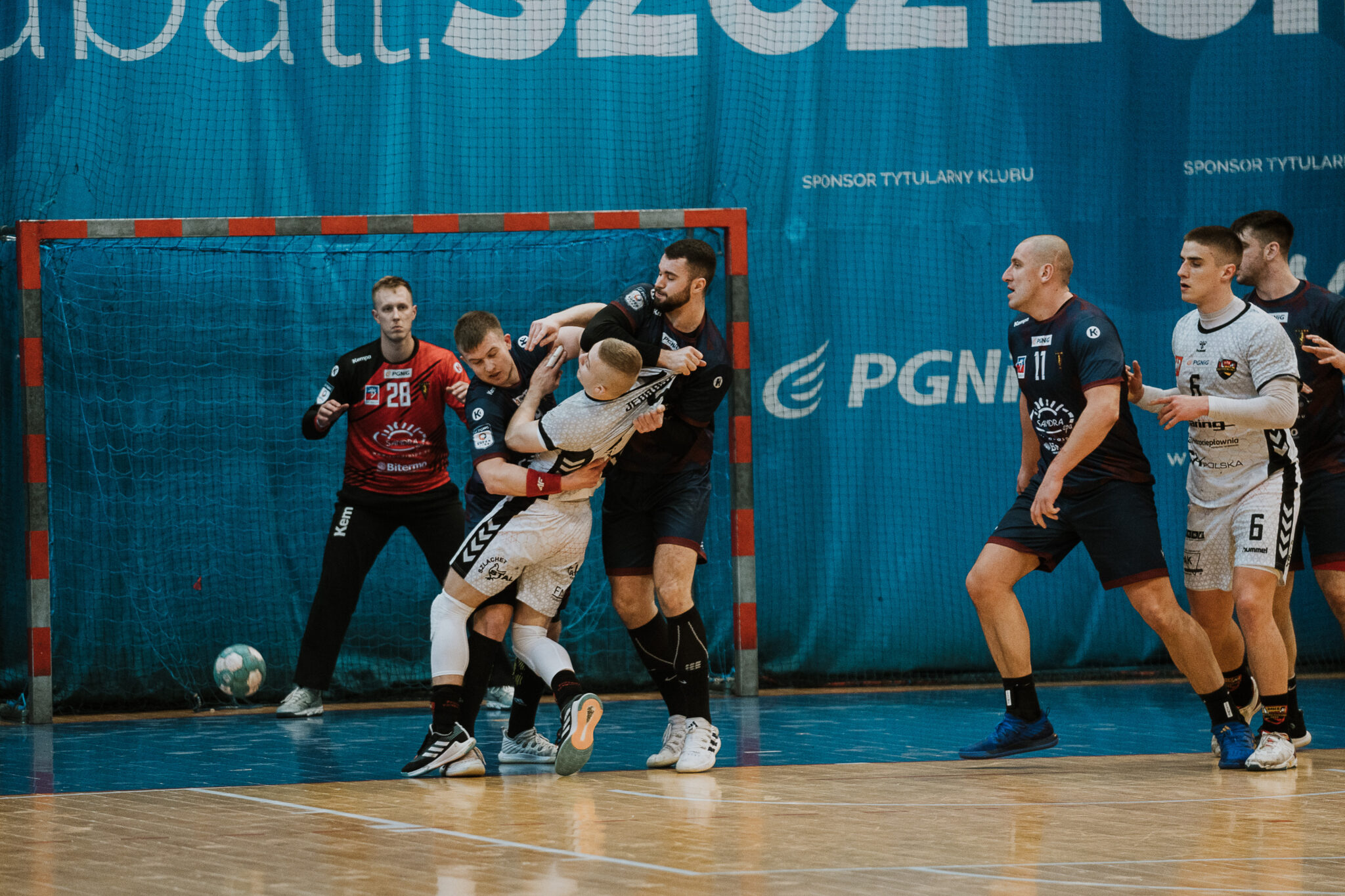 Drugą część meczu otworzył Paweł Kowalski i Piotrków osiągnął dwubramkowe prowadzenie, ale w 37 minucie po bramce Dawida Krysiaka było 16 – 15 i jak się później okazało było to ostatnie prowadzenie gospodarzy. Przestój i słabsza postawa w defensywie pozwoliła gościom zdobyć 4 bramki rzędu i prowadzili już 3 bramkami 20 – 17, a w 46 minucie już 22 – 18. Gospodarze niesieni dopingiem zniwelowali stratę na 10 minut przed końcem do 2 bramek. Szczecinianie mogli jeszcze doprowadzić do remisu, ale gry w przewadze w ostatnich 5 minut niestety nie wykorzystali. Trafiali nad bramką w słupki, a na domiar złego na pustą bramkę nie trafił Maksym Viunyk. Na 30 sekund przed końcem Piotrków miał piłkę prowadząc jedno bramką, niestety na 10 sekund przed końcem trafisz Surosz i z 3 punktów cieszyć się mogli goście.