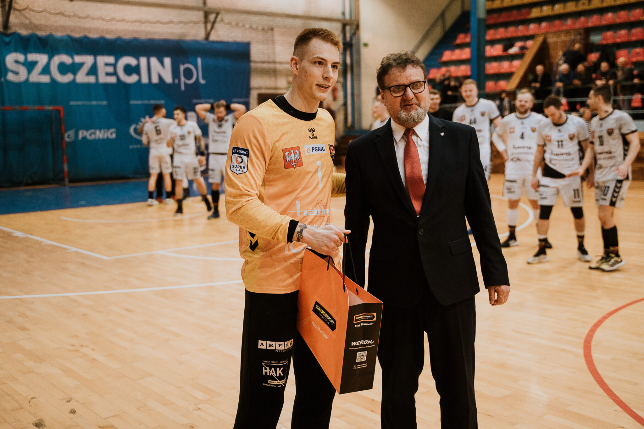 Szczypiorniści Piotrkowianina Piotrków wygrali w Szczecinie 27 – 25 i zdobyli bardzo cenne 3 punkty, które mogą przybliżyć ich do utrzymania w PGNiG Superlidze. Bohaterem spotkania był Kacper Ligarzewski, który w kolejnym meczu bronił jak w transie zwłaszcza w pierwszej połowie.