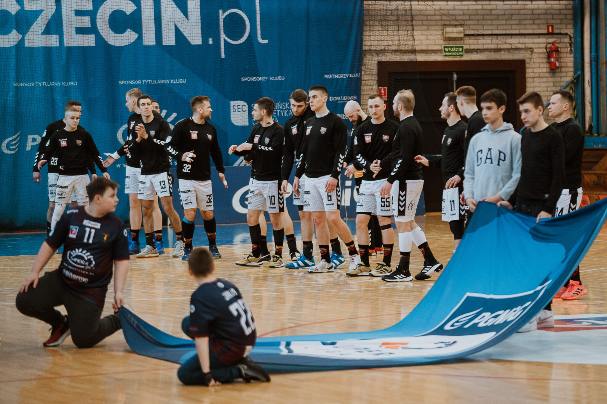 Mecz otworzył Filip Surosz, ale po chwili dwie bramki z rzędu zdobył Eliasz Kapela i na prowadzenie wyszli szczecinianie. W kolejnych akcjach klasą samą dla siebie był wspomniany już Ligarzewski. Efektowne akcje bramkarzy, a także słupki i poprzeczki zwłaszcza w wykonaniu gospodarzy doprowadziło do sytuacji, że w 21 minucie po bramkach Bogdana Cherkashchenki było tylko 8 – 8. O zaciętości meczu niech świadczy fakt, że żadna z drużyn w 1 połowie nie osiągnęła przewagi wyższej niż 1 bramka, choć szanse były. Do przerwy po bramce Adama Pacześnego goście prowadzili 13 – 12.