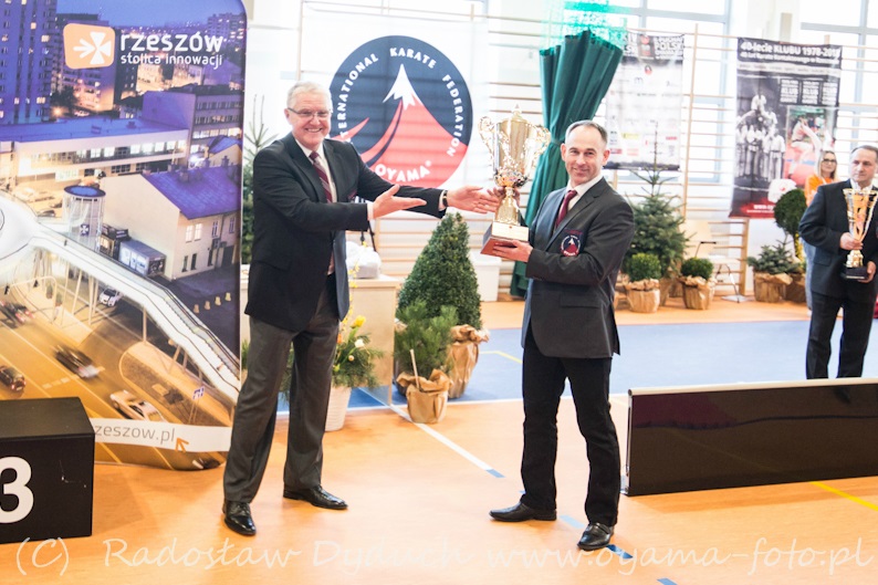 Przed dekoracją zwycięzców, odbyło się wręczenie nagród dla najlepszych klubów i zawodników w minionym sezonie. Prezes OYAMA PFK – Hanshi Jan Dyduch, uhonorował piotrkowski klub pucharem za wygranie rankingu Najlepszych Klubów Oyama Karate w 2017 r. Wyróżnienie za najlepsze wyniki sportowe w pracy trenerskiej odebrał Prezes PKOK „WASHI” – sensei Dariusz Szulc IV DAN. Wśród nagradzanych zawodników znaleźli się: