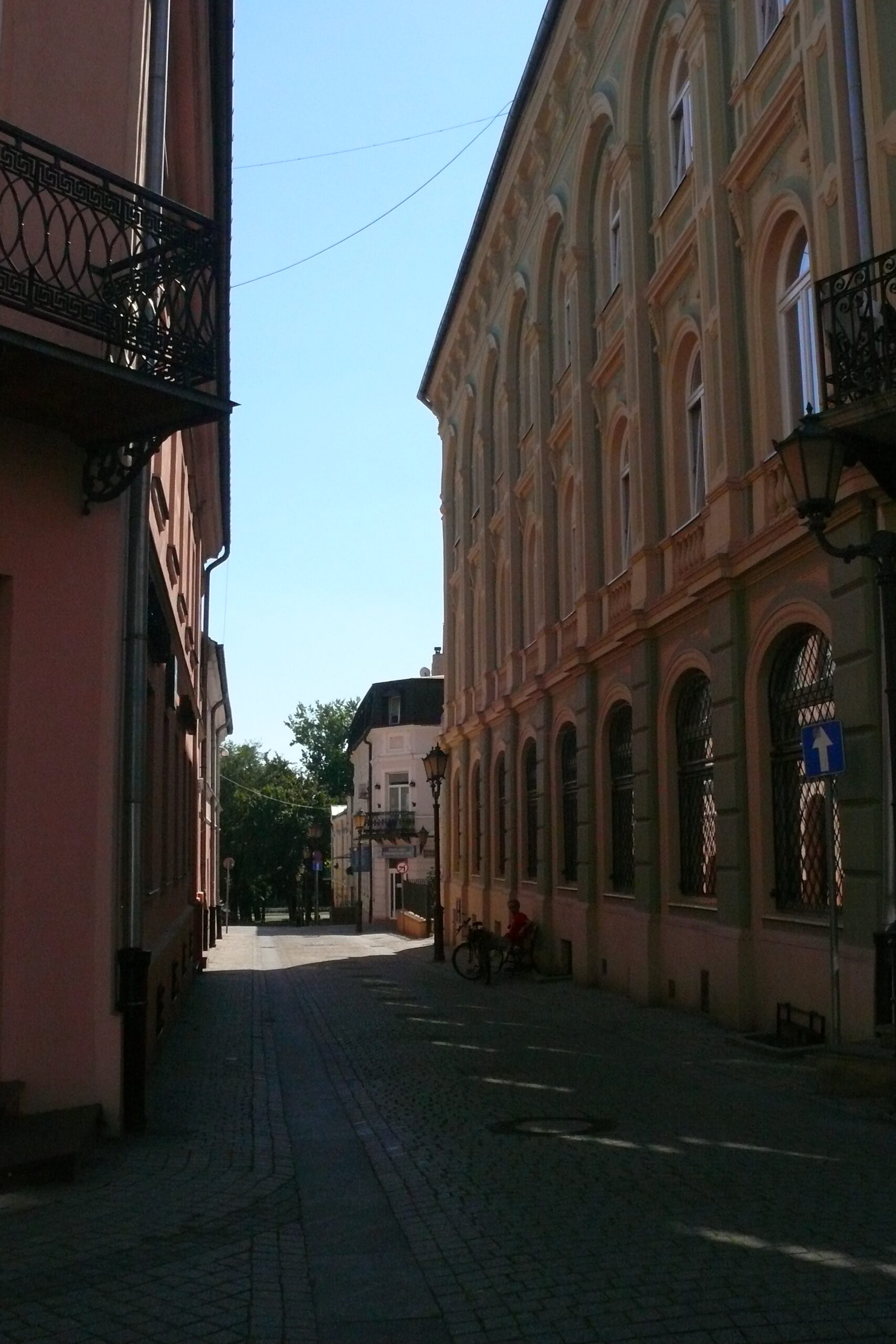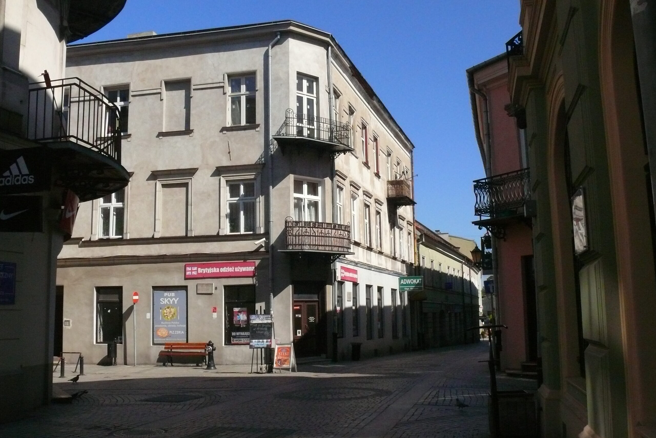 Po raz kolejny na ekranie Piotrków w „Akademii Pana Kleksa”pojawia się w scenie, w której Profesor Kleks prosi Adasia Niezgódkę by ten udał się do zakładu Filipa Golarza po nowe piegi. Zakład Golarza mieści się na filmowej ulicy Szarej. Po wyjściu od Golarza Adaś wraca do Akademii m.in. ulicą Rycerską. W kadrze doskonale widoczna jest ówczesna piotrkowska Galeria BWA oraz fragment, krzyżującej się z ulica Rycerską ulicy Sieradzkiej. Bez trudu można również dostrzec, że parterowe kondygnacje kamienic przy ul. Rycerskiej 6 i 8 osłonięte zostały kolorowymi dekoracjami. Przed budynkami zaś widnieją rozpostarte stoliki i parasole, przy których siedzą roześmiane dzieciaki. – „Jak dobrze pamiętam to właśnie z powodu zdjęć do „Akademii Pana Kleksa” przez kilka dni był zakaz wstępu w te rejony, gdzie pracowała ekipa filmowa” – wspominał swego czasu w rozmowie z autorką Remigiusz Niedźwiecki, jeden z piotrkowskich przewodników lokalnego oddziału PTTK. – „Głównie chodziło o to, że część kamienic przy Rycerskiej była „ubrana” w dekoracje. Jakieś kwiatki, cętki… To wszystko wyglądało niesamowicie kolorowo jak na tamte czasy.”. Powyższe słowa potwierdziła również inna mieszkanka tej części Starówki, Teresa Żołędziowska: – „Zdarzyło się kilkakrotnie, że mąż wracając z pracy nie mógł dostać się do naszego mieszkania, bo akurat filmowcy kręcili jakieś ujęcia i nie wolno było wchodzić na ulicę, nie mówiąc już o wejściu na klatkę schodową.”. To m.in. na balkonie kamienicy usytuowanej u zbiegu ulic Rycerskiej z Sieradzką siedział tytułowy „Leń” w jednej z piosenek z „Akademii Pana Kleksa”.