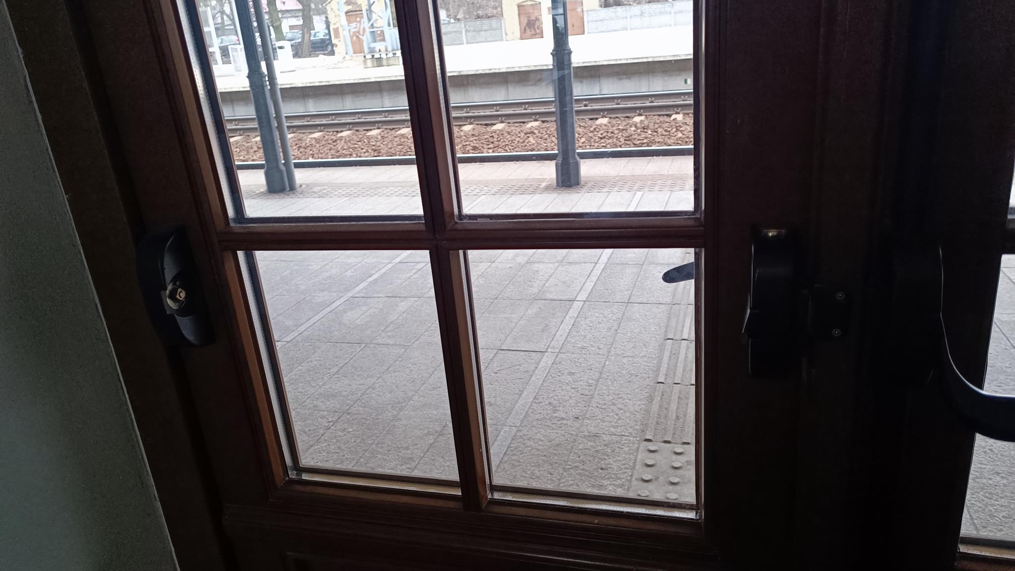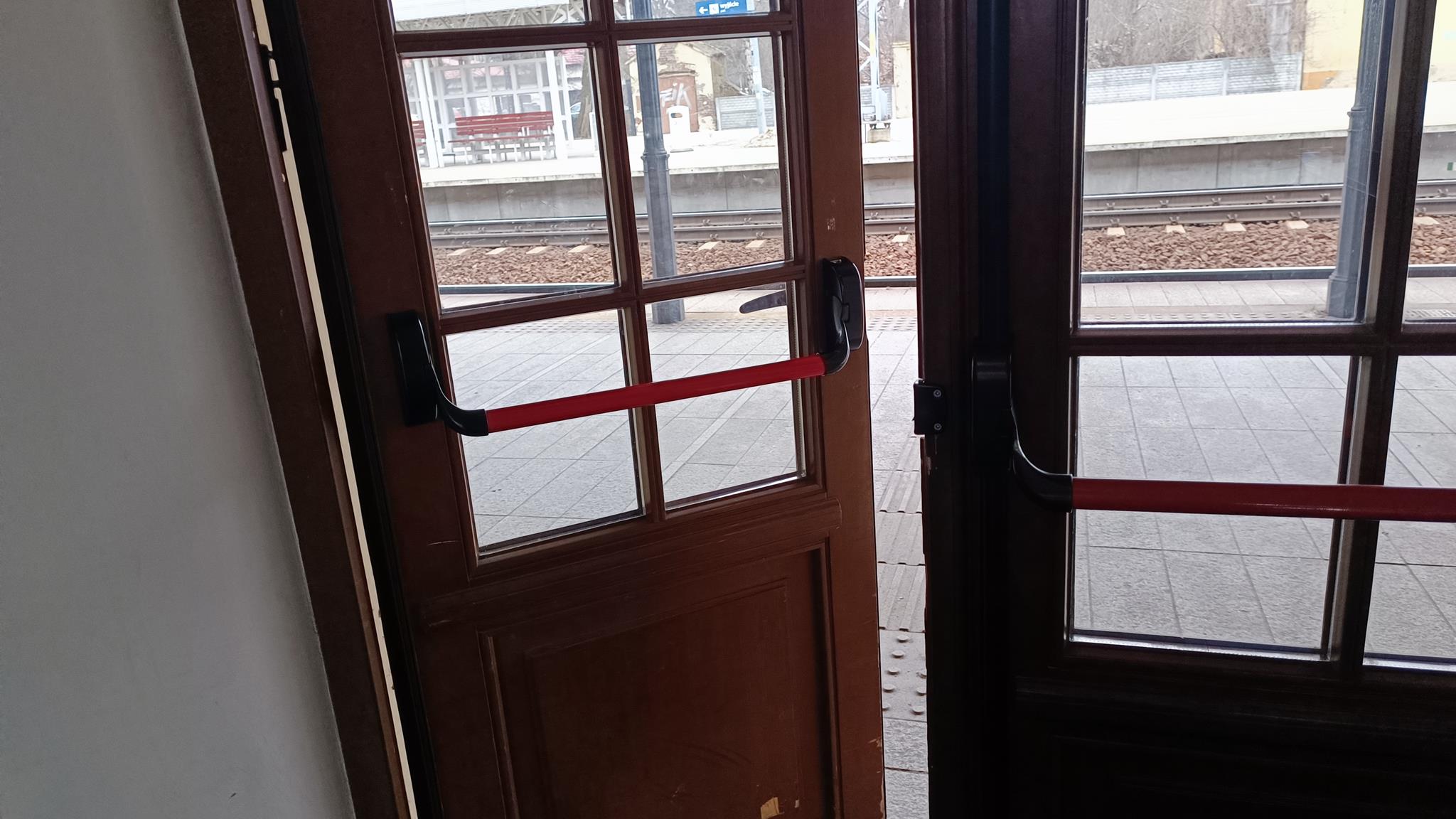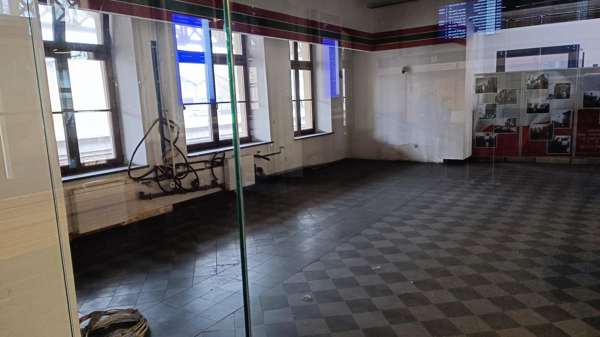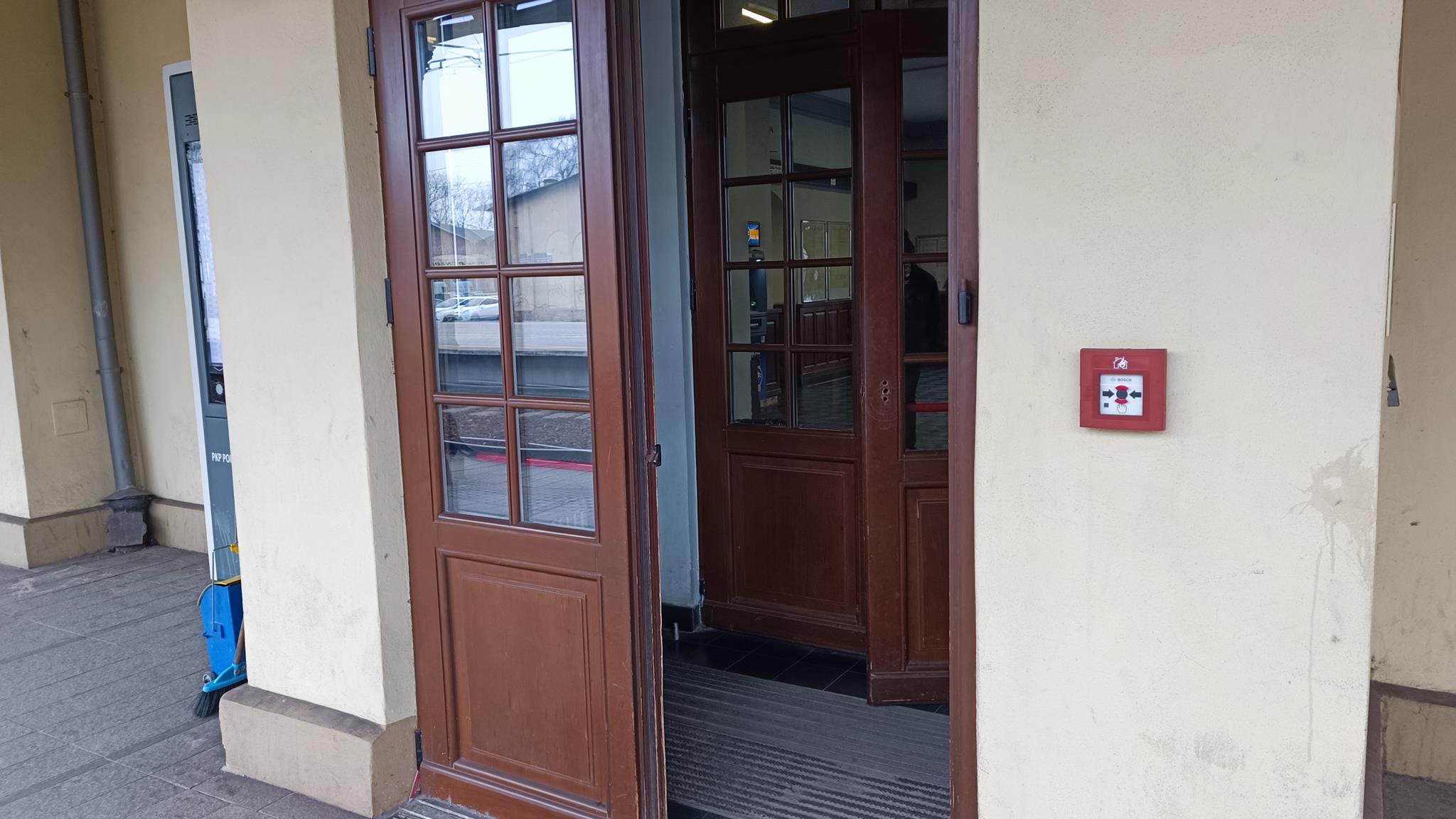 Drzwi wejściowe do hali głównej od strony peronów, są wyrwane. W kolejnych drzwiach próżno szukać klamki. Osoba która chce wejść do środka, musi wtykać palec w dziurę po klamce i narażać się na skaleczenie. Klamek nie ma także w innych drzwiach. Dopychacze do drzwi są wyrwane. Ściany są brudne. W niektórych miejscach farba się łuszczy bo prawdopodobnie wychodzi tam grzyb.