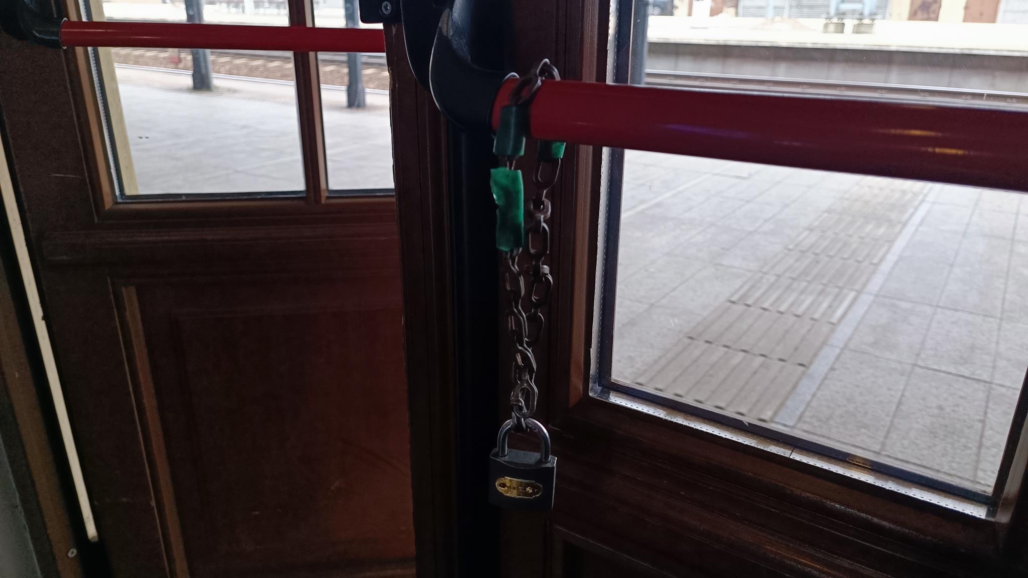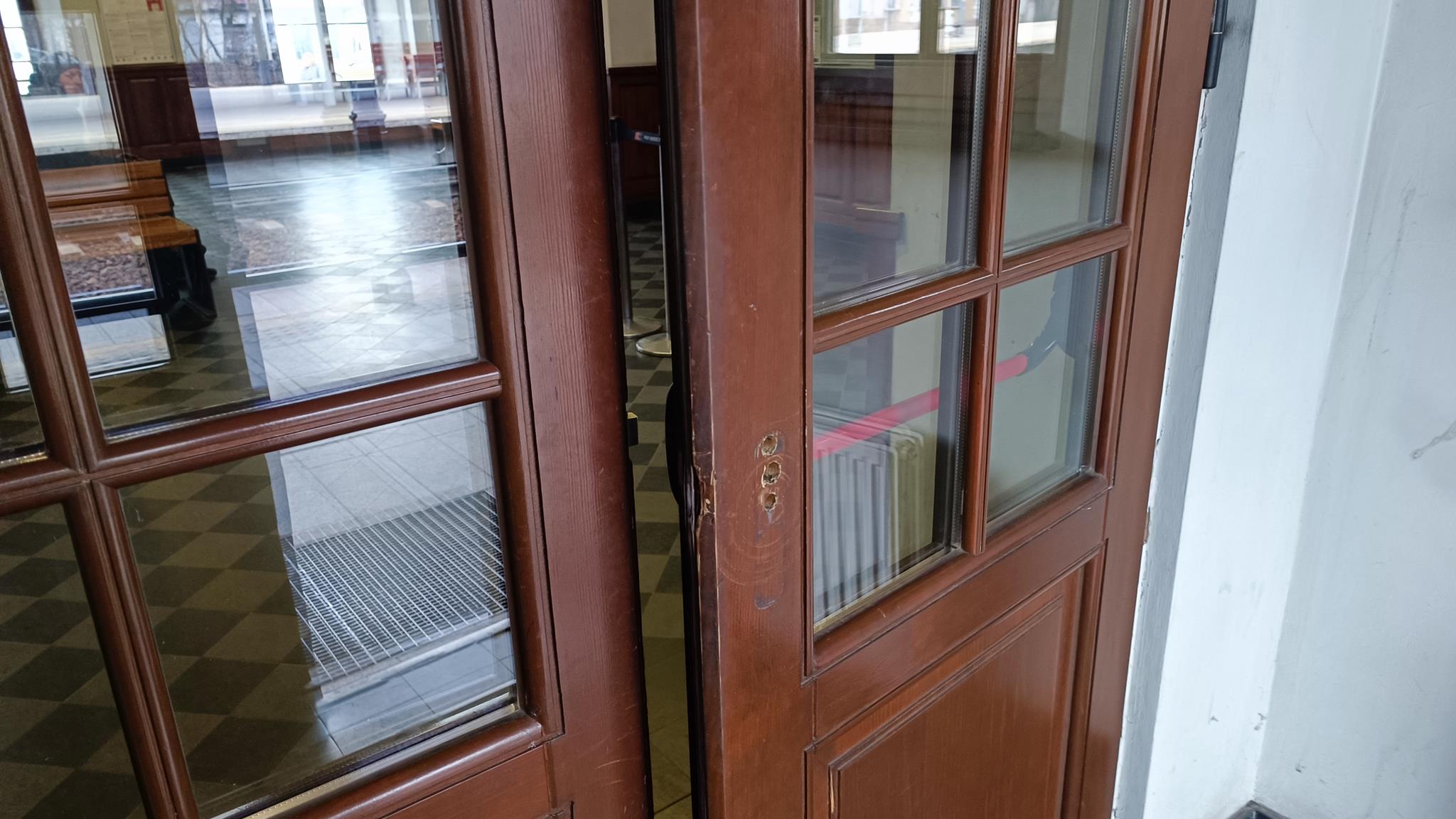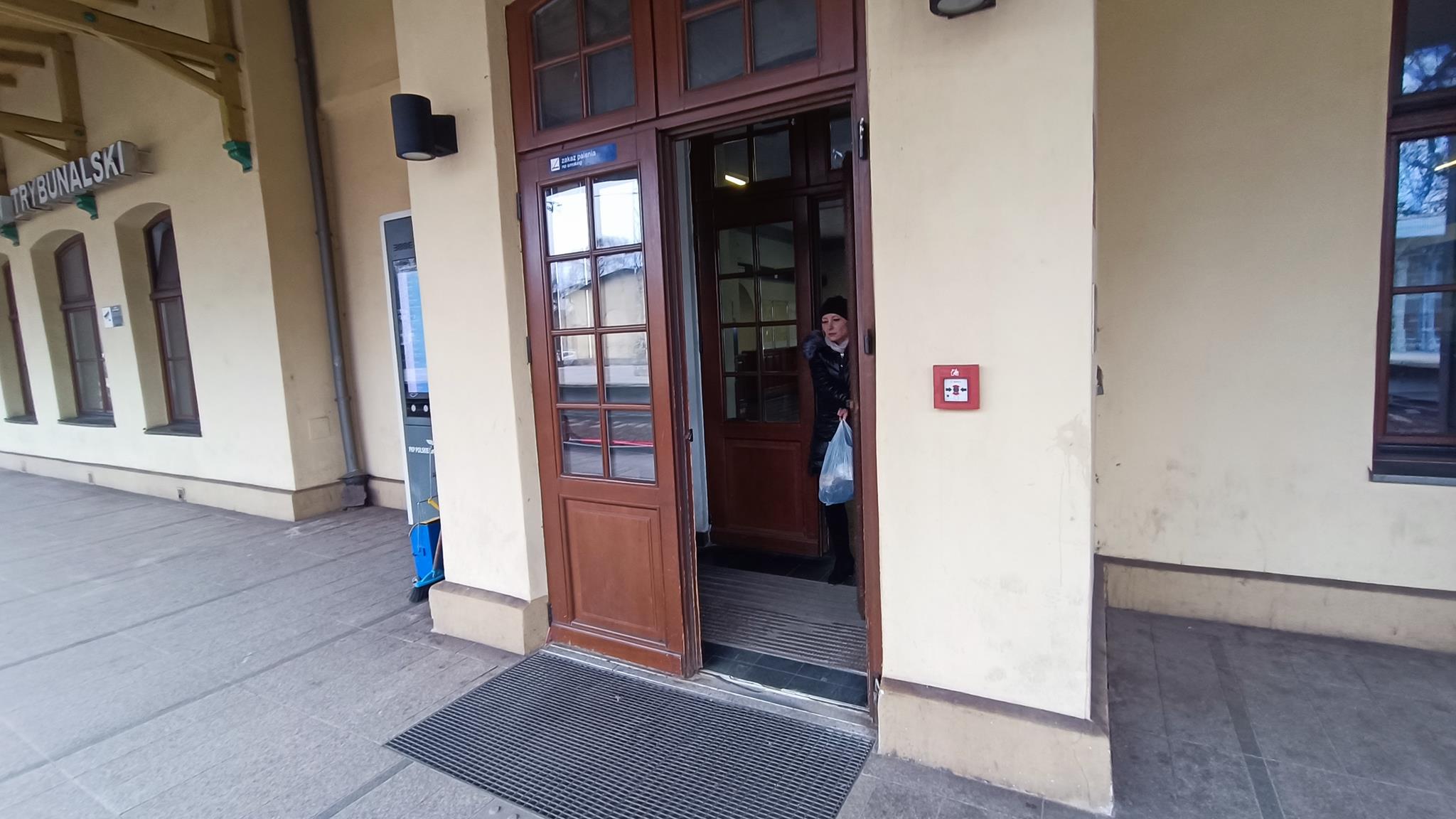 Drzwi wejściowe do hali głównej od strony peronów, są wyrwane. W kolejnych drzwiach próżno szukać klamki. Osoba która chce wejść do środka, musi wtykać palec w dziurę po klamce i narażać się na skaleczenie. Klamek nie ma także w innych drzwiach. Dopychacze do drzwi są wyrwane. Ściany są brudne. W niektórych miejscach farba się łuszczy bo prawdopodobnie wychodzi tam grzyb.