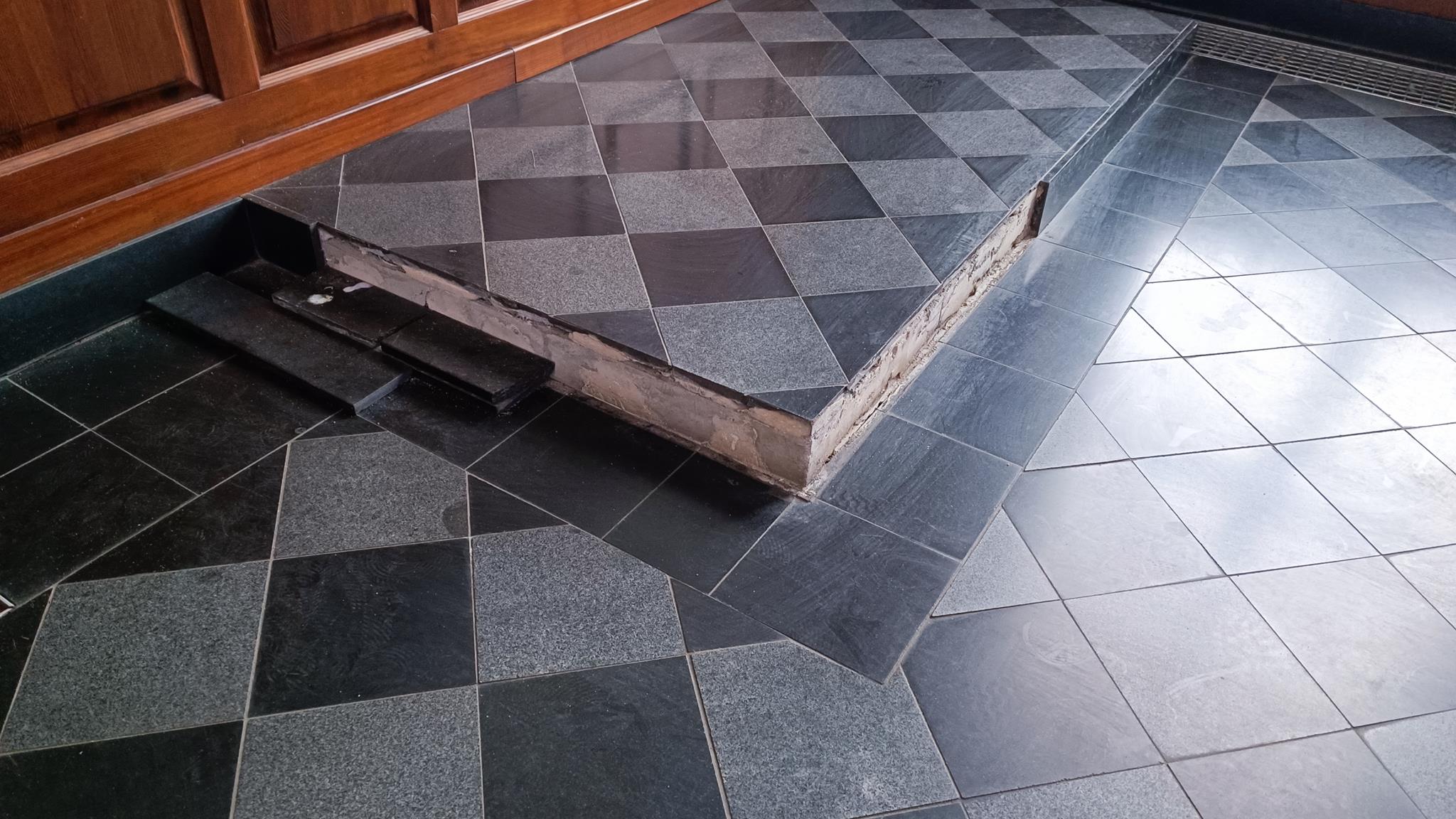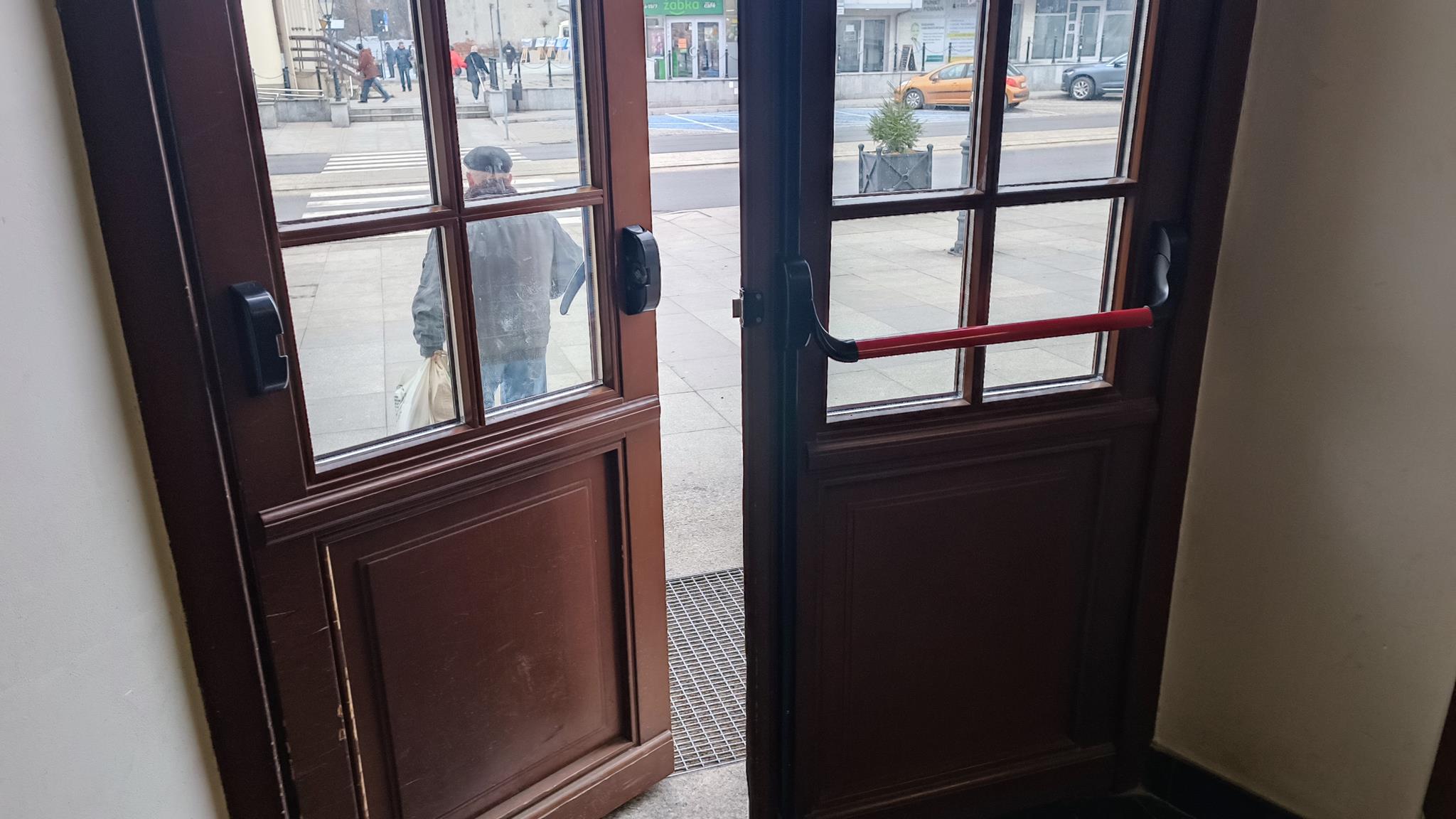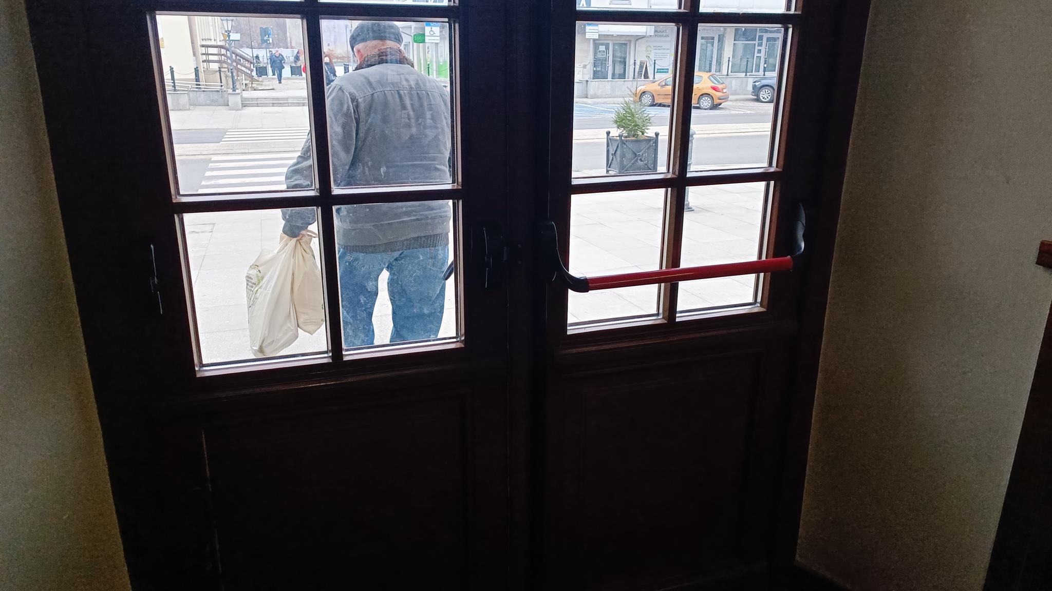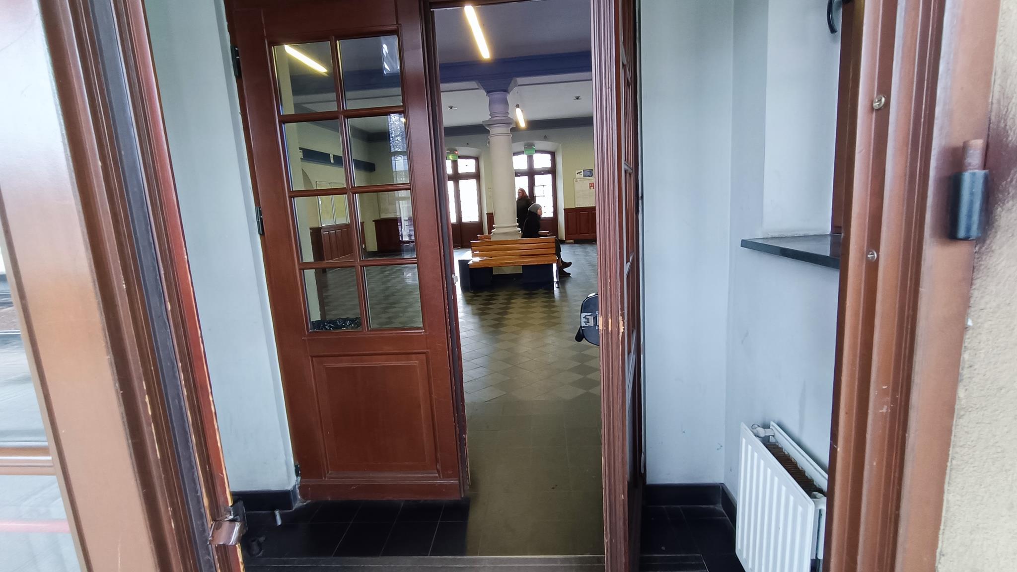 Drzwi wejściowe do hali głównej od strony peronów, są wyrwane. W kolejnych drzwiach próżno szukać klamki. Osoba która chce wejść do środka, musi wtykać palec w dziurę po klamce i narażać się na skaleczenie. Klamek nie ma także w innych drzwiach. Dopychacze do drzwi są wyrwane. Ściany są brudne. W niektórych miejscach farba się łuszczy bo prawdopodobnie wychodzi tam grzyb.