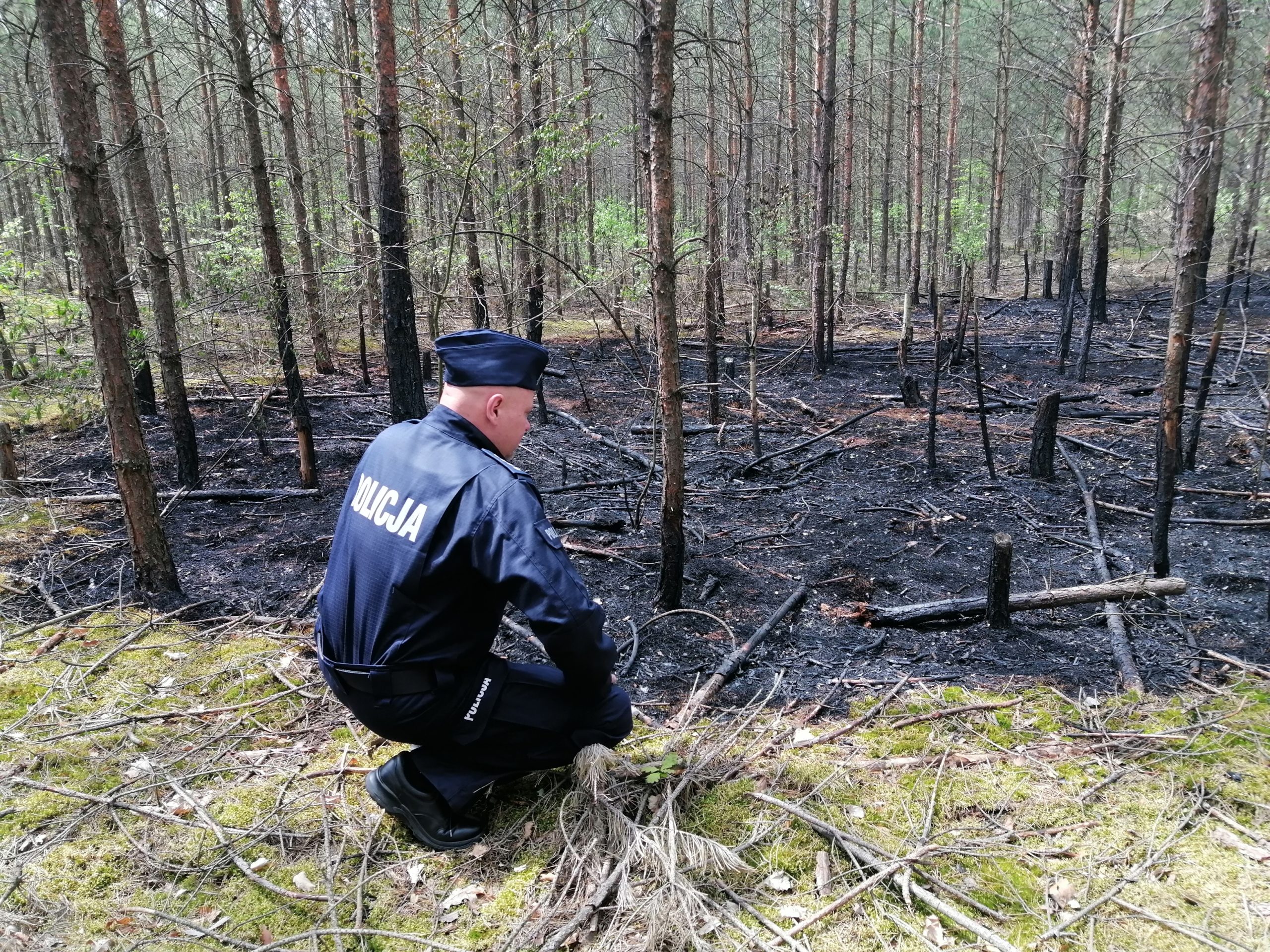 Przypomnijmy, do zdarzenia doszło w poniedziałek 18 maja. Wtedy to, dyżurny piotrkowskiej policji otrzymał zgłoszenie o pożarze lasu w Goleszach Parcela. Na miejsce pojechali policjanci z komisariatu w Wolborzu. Tam zastali Ochotniczą Straż Pożarną z Lubiaszowa, która prowadziła akcję gaśniczą. Na miejscu był również patrol Straży Leśnej. Okazało się, że płonął 15-letni młodnik sosnowy, Pożar obejmował powierzchnię 1 ara. Strażacy szybko opanowali ogień. Po około 30 minutach od zakończenia czynności, w odległości około 150 metrów ponownie zapłonął młodnik sosnowy. Policjanci z funkcjonariuszami Straży Leśnej wiedzieli już, że doszło do podpalenia. Do akcji gaśniczej włączyli się również piotrkowscy strażacy. Przy użyciu drona leśnicy sprawdzili pobliski teren, aby zobaczyć czy dojdzie do kolejnego podpalenia. Około 300 metrów dalej zauważono kolejny dym oraz uciekającą postać.