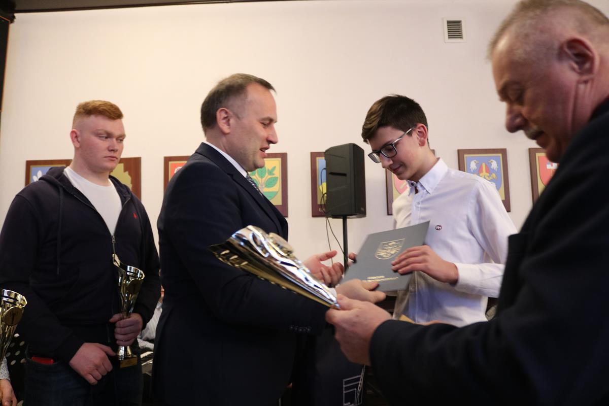– Sportowo – turystyczne podsumowanie roku, to okazja by pogratulować osiągniętych wyników w 2019 roku, ale przede wszystkim podziękować za wytężoną pracę która przynosi efekty. To dzięki państwa zaangażowaniu i sukcesom, o ziemi piotrkowskiej było głośno w województwie, w Polsce a nawet w Europie, za co raz jeszcze serdecznie dziękuję. Słowa uznania kieruję szczególnie do trenerów. To oni kształtują nie tylko dobrą formę fizyczną, ale także osobowość, która przydaje się w życiu – powiedział w swoim wystąpieniu starosta Piotr Wojtysiak, i dodał: – Każdego dnia współpracujemy z Ludowymi Zespołami Sportowymi, ze Szkolnymi Związkami Sportowymi, dlatego chciałbym podziękować wszystkim działaczom za wszelkie zawody zorganizowane w minionym roku. Jestem także przekonany, że na tej sali znajdują się przyszli medaliści olimpijscy czy mistrzostw świata – powiedział Piotr Wojtysiak.