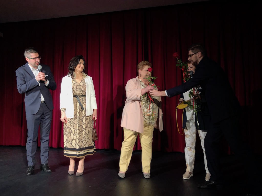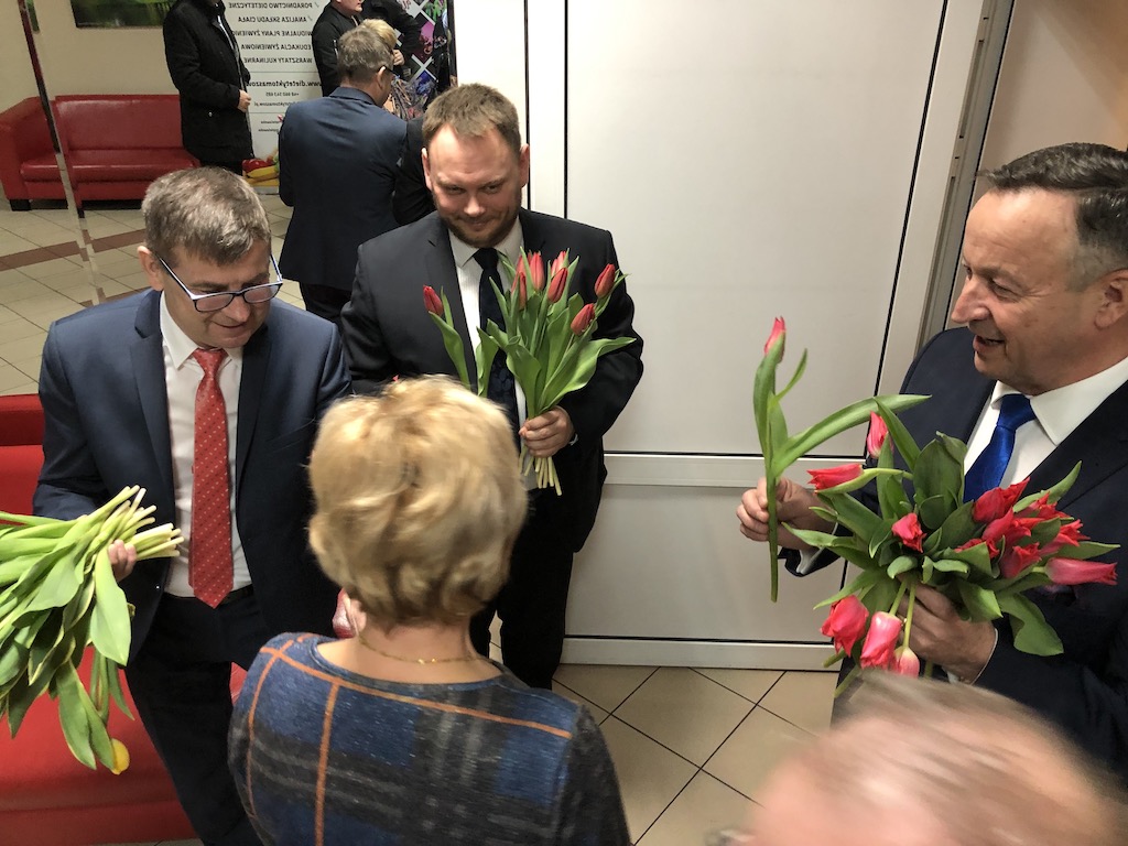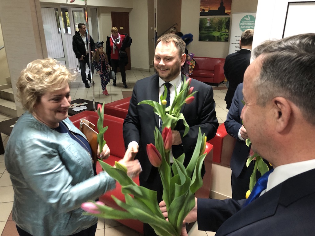 Wszystkie Panie wchodząc na salę widowiskową otrzymały tulipana od burmistrza Wolborza Andrzeja Jarosa, przewodniczącego Rady Miejskiej Zbigniewa Klewina i wiceprzewodniczącego Rady Powiatu Michała Szymańskiego.
