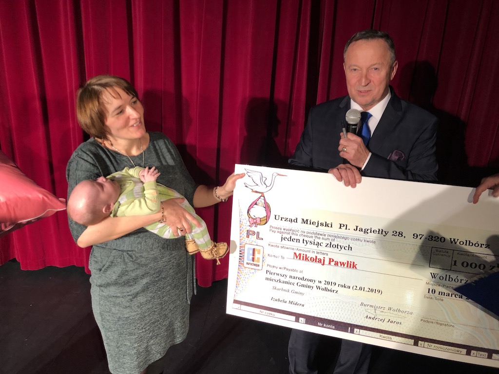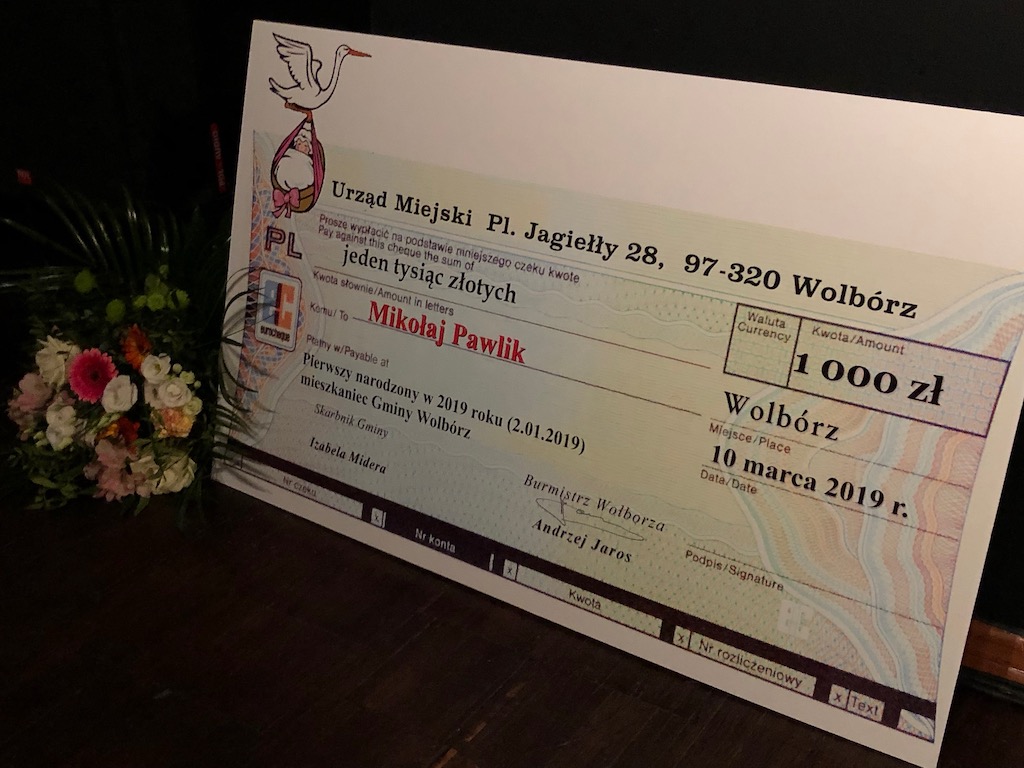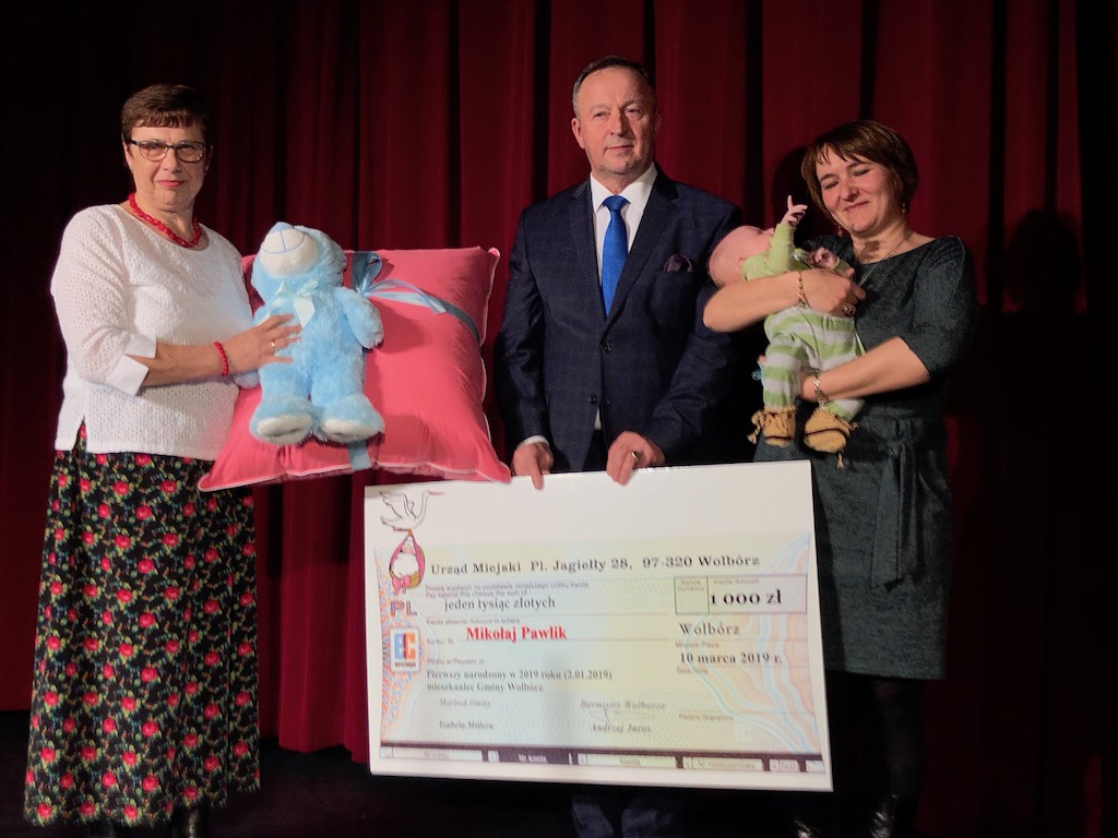 Piękny koncert piosenek Zbyszka Wodeckiego w wykonaniu miejscowych artystów odbył się w Wolborskim Centrum Kultury. Koncert zorganizowany został z okazji Dnia Kobiet. Tradycyjnie już burmistrz Wolborza Andrzej Jaros wręczył, tym razem Wiolettcie Pawlik, mamie pierwszego narodzonego mieszkańca gminy Mikołaja, czek na 1000 zł. Maluch, który przyszedł na świat 2 stycznia 2019 r., otrzymał także piękną poduchę udartą z pierza od KGW Polichno. Poduchę wręczyła przewodnicząca KGW Polichno Irena Kulbat.