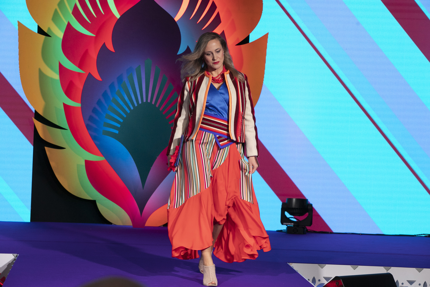 – Nasz strój jest inspirowany lokalnym ubiorem z powiatu radomszczańskiego. Tradycyjny pasiak tego regionu jest użyty zarówno w żakiecie, jak i w sukience. Do tego torebka w maki – opisuje Karolina Cieciura z KGW „Makowe Panienki” z Kietlina.