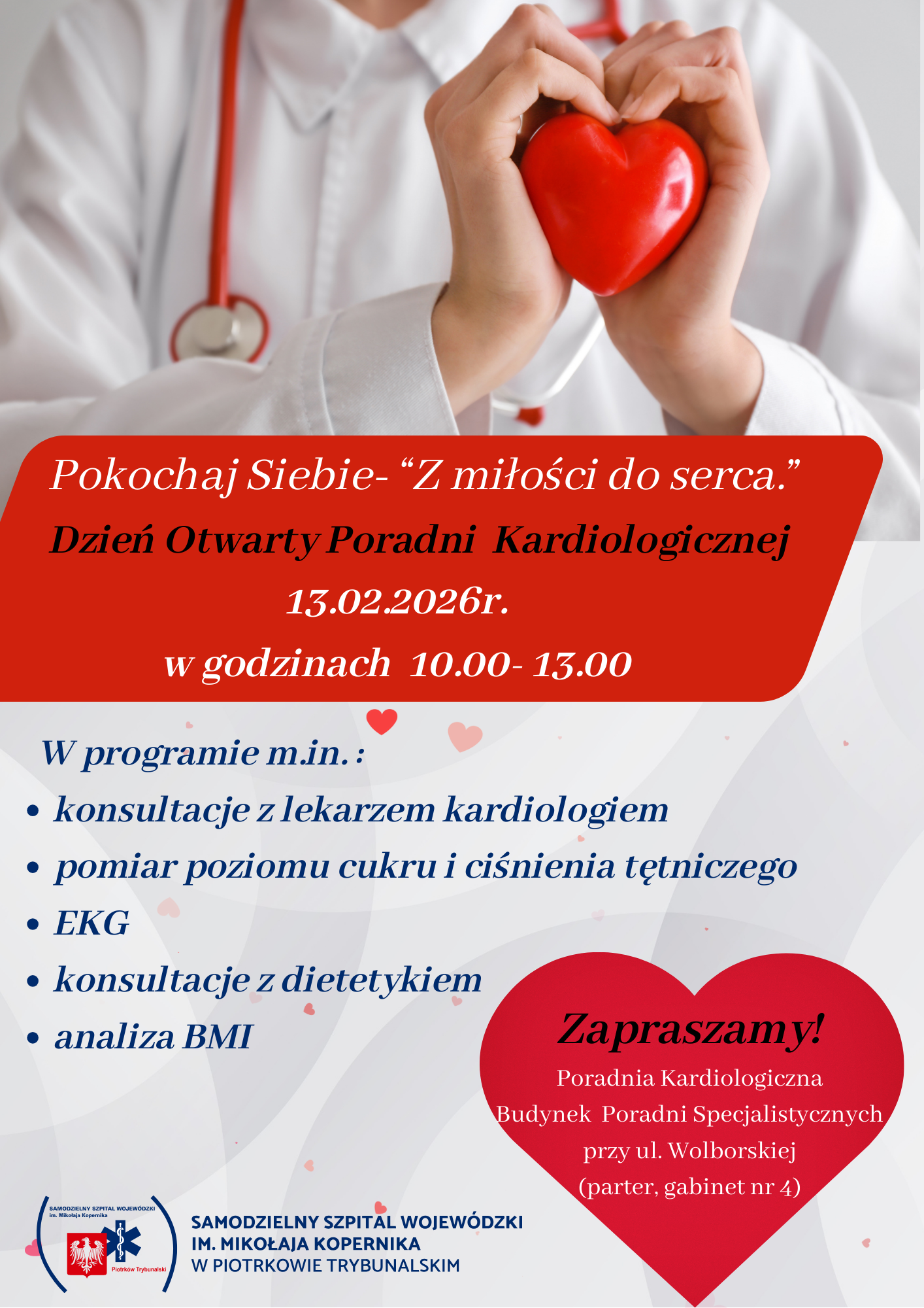 Walentynki to czas, kiedy myślimy o uczuciach, ale warto pomyśleć też o… zdrowiu! Już w najbliższy piątek, 13 lutego 2026 roku, Samodzielny Szpital Wojewódzki zaprasza wszystkich mieszkańców na wyjątkowe wydarzenie pod hasłem „Pokochaj siebie – z Miłości do Serca”.