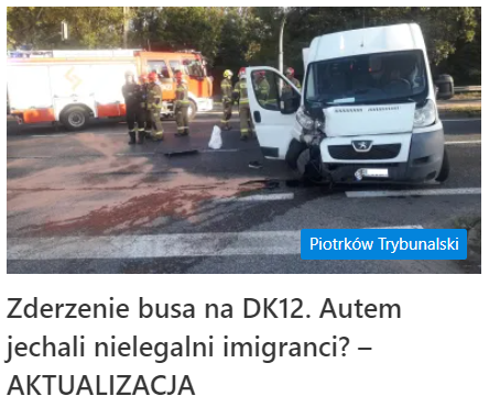 Przypomnijmy, że do zdarzenia doszło po godzinie 7:00. W stojący na skrzyżowaniu samochód marki toyota, uderzył bus jadący od strony Sulejowa. Tuż po zderzeniu, zarówno kierowca jak i pasażerowie busa uciekli do lasu.