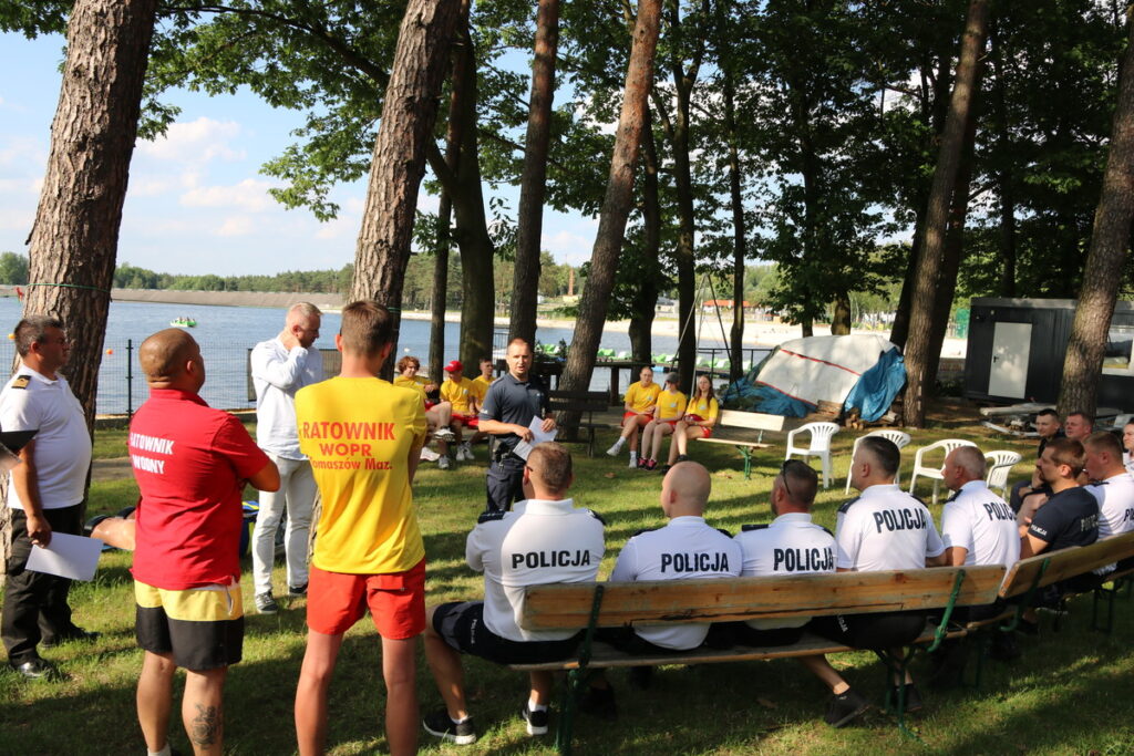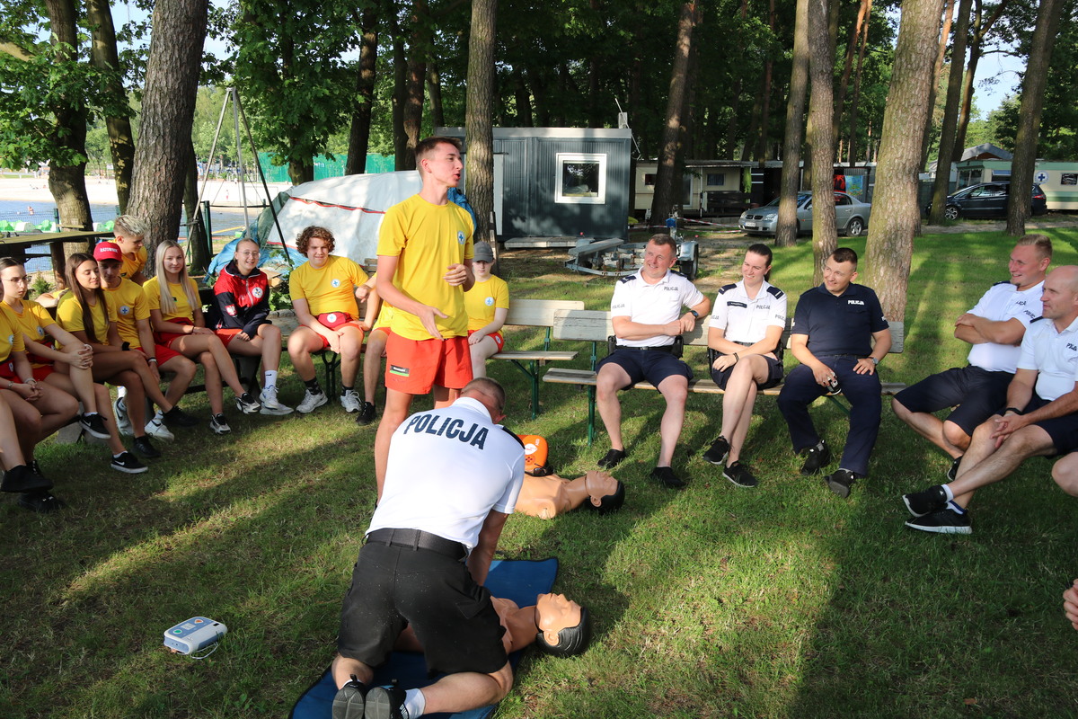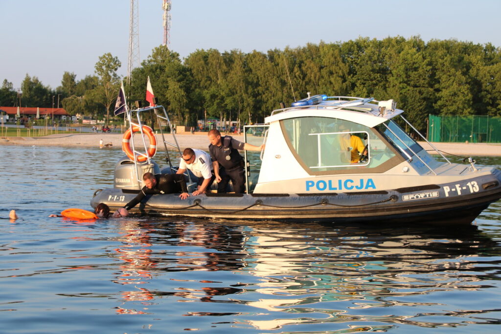 W szkoleniu uczestniczyli przedstawiciele Urzędu Żeglugi Śródlądowej oraz Państwowego Gospodarstwa Wodnego ,,Wody Polskie”. – Miało ono na celu podniesie kwalifikacji zawodowych policjantów, w tym zdolności poszukiwania osób zaginionych z wykorzystaniem sprzętu w porze nocnej, jak również współdziałania z innymi podmiotami dbającymi o bezpieczeństwo osób wypoczywających nad wodą. Wzięło w nim udział 12 policjantów z: Piotrkowa, Tomaszowa, Poddębic, Opoczna, Sieradza. Policjanci wspólnie z WOPR-em przećwiczyli stosowanie pasów transportowych oraz lin ratowniczych. Przeprowadzono szkolenie z zakresy pierwszej pomocy BLS – zespół czynności obejmujący bezprzewodowe utrzymywanie drożności dróg oddechowych oraz podtrzymywanie oddychania i krążenia. Przećwiczono elementy ratownicze RKO na fantomie, a następnie przystąpiono do zagadnień związanych z wykorzystaniem torby medycznej oraz apteczki pierwszej pomocy tj. opatrywaniem ran, czynnościami po ukąszeniach owadów czy oparzeniach, zadławieniach oraz stabilizacją złamań. Przećwiczono stosowanie AED – relacjonuje podkom. Adam Dembiński z KWP w Łodzi.