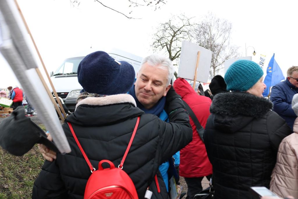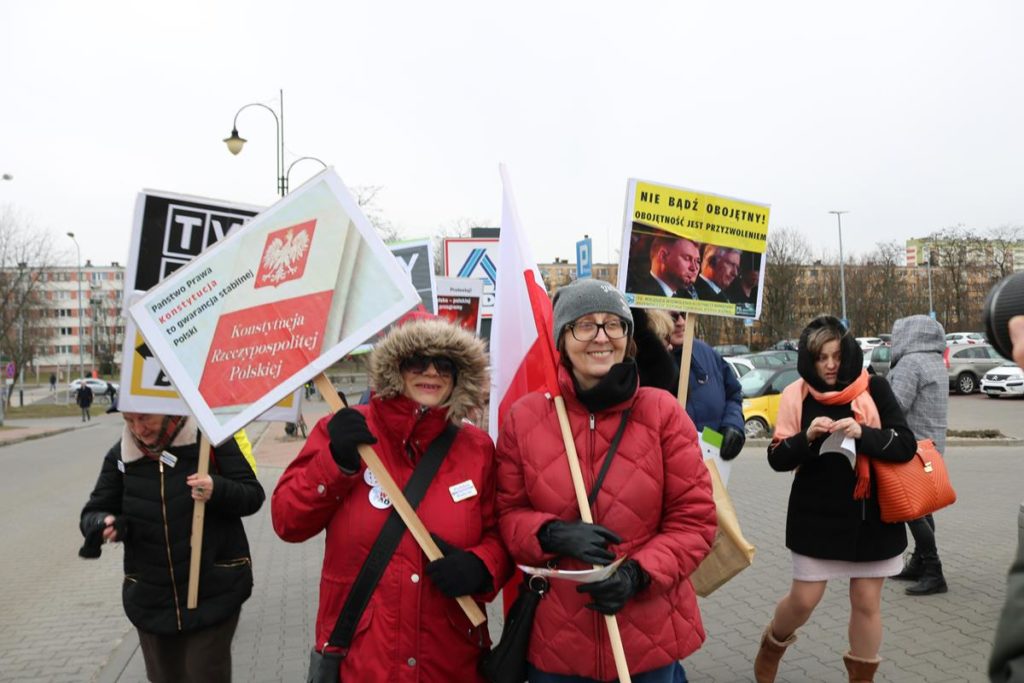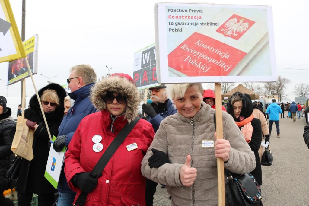 – Przyjechałyśmy do Piotrkowa, bo jeszcze nas tu nie było. 1 marca zeszłego roku zawiązał się społeczny komitet „Polskie Babcie”. Spotkałyśmy się wtedy przed siedzibą TVP, Sądem Najwyższym i Trybunałem Konstytucyjnym – tak zawiązała się nasza grupa. Ostatnio byłyśmy w Pułtusku, dziś u was, a jutro będziemy w Hajnówce – mówi jedna z kobiet i dodaje: – W każdym miejscu, niesiemy przesłanie. Chcemy powiedzieć, o co wszystkie babcie walczą dla swoich wnuczków. Chcemy żeby w Polsce było normalnie, żeby przestrzegano prawo, żeby była należyta edukacja, wolne i niezależne Sądy – dodaje Anna Łabuź – najstarsza uczestniczka.