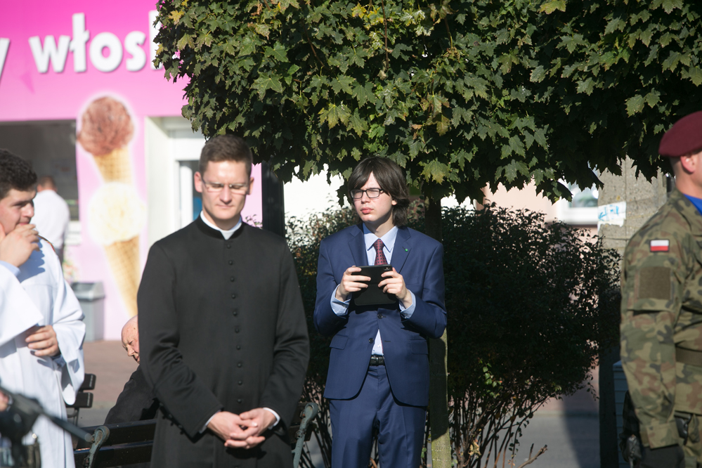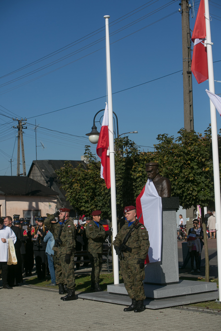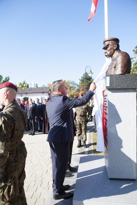 Po wystąpieniach nastąpił moment odsłonięcia popiersia, po którym odczytany został przez oficera Wojska Polskiego apel poległych. Była też okolicznościowa salwa. Pomnik poświęcony został przez arcybiskupa seniora Władysława Ziółka.
