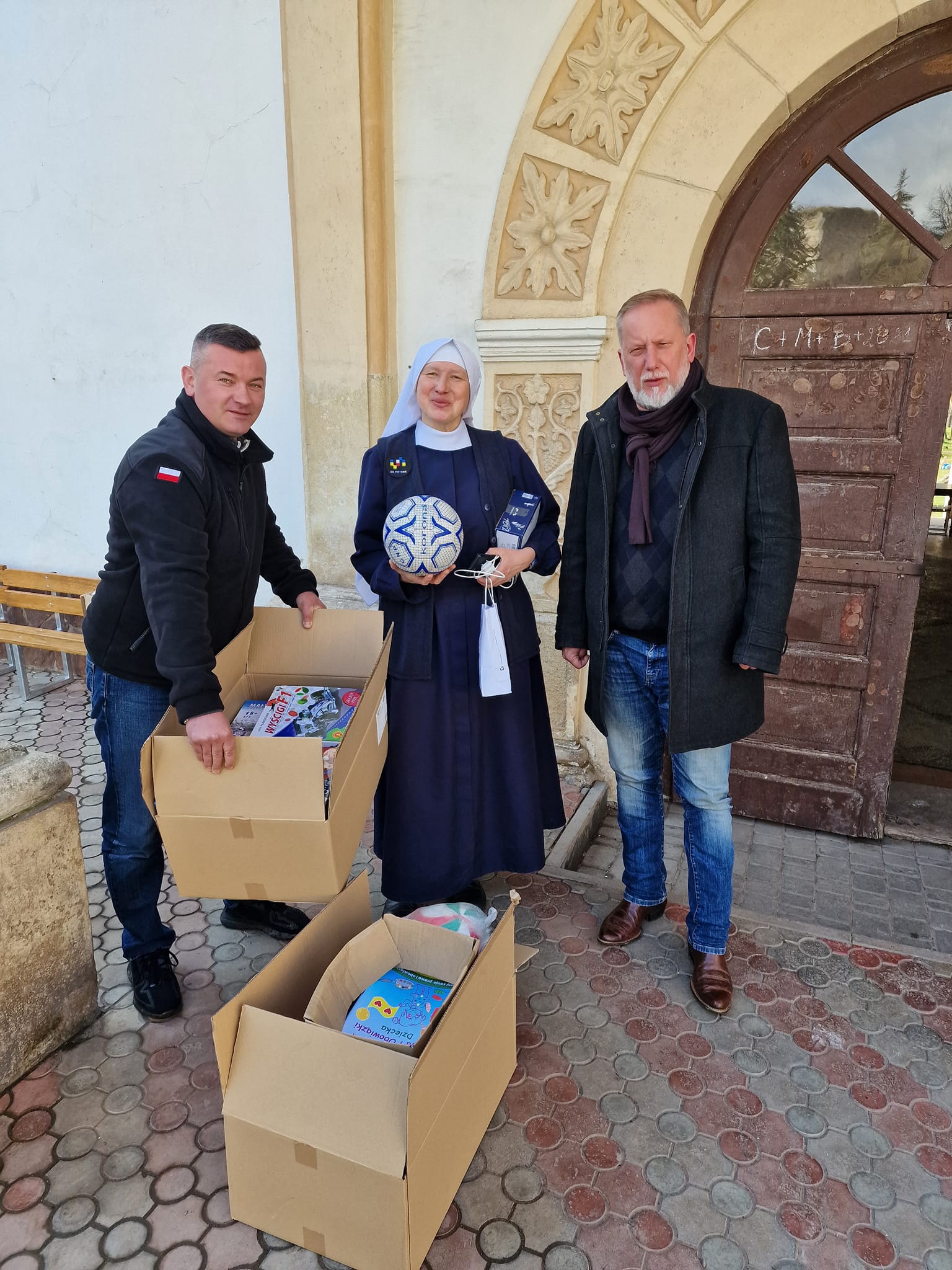 W efekcie jeden bus i trzyosobowa ekipa udała się do Jazłowca, gdzie zakonnice niepokalanki opiekują się sierotami i samotnymi matkami z dziećmi. Przełożona siostra Julia oraz siostry Szymona i pochodząca z Ukrainy Tatiana.