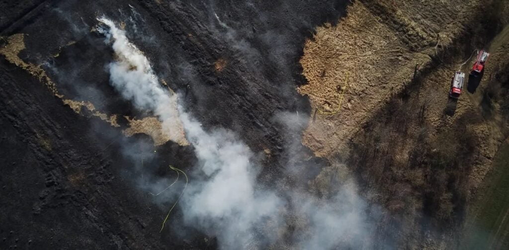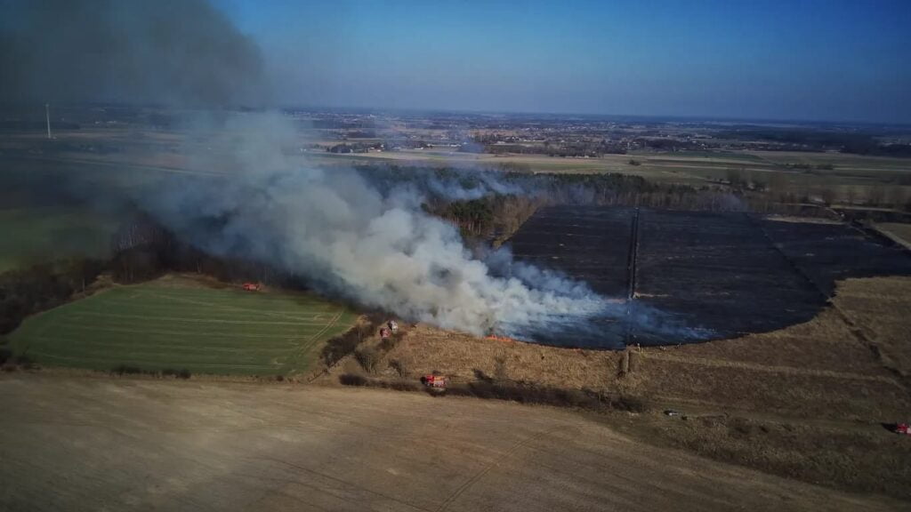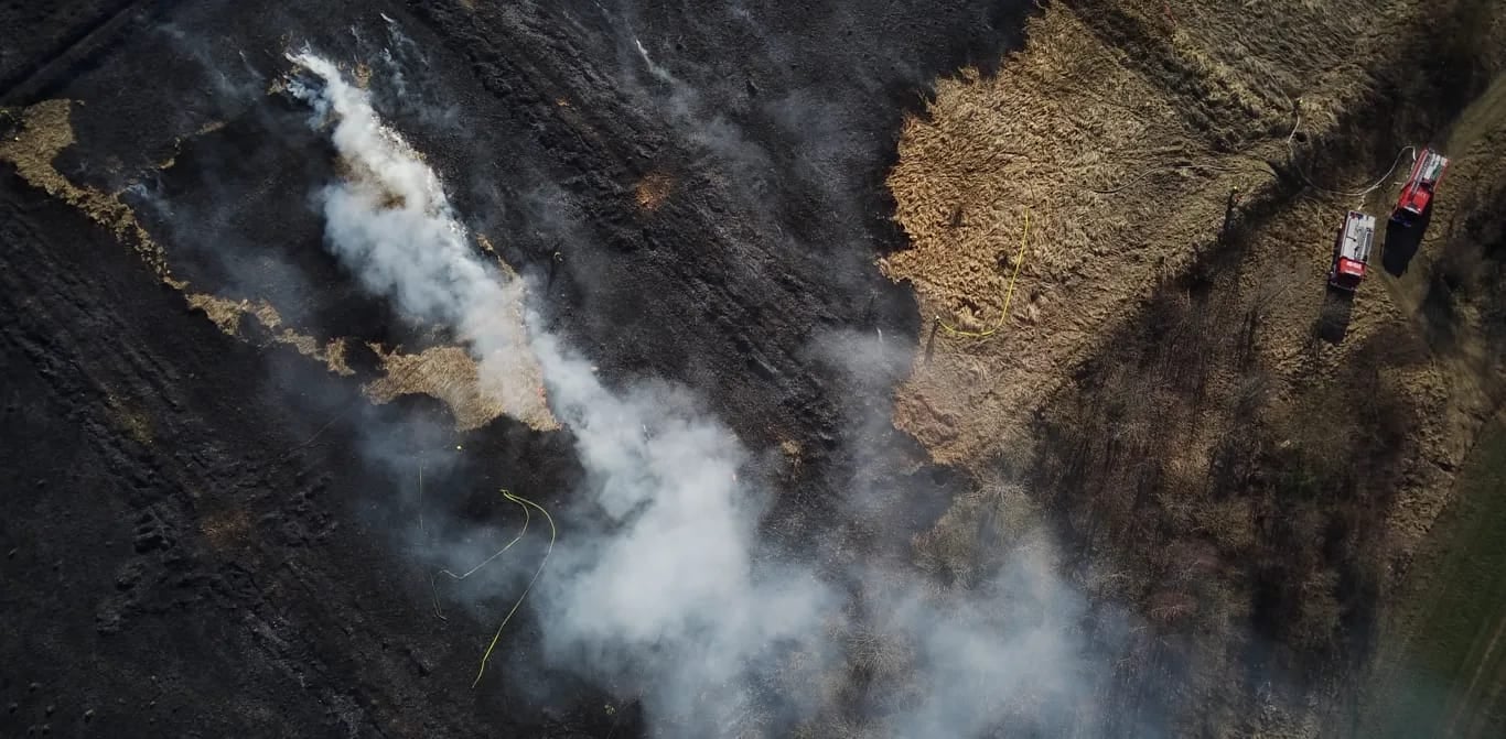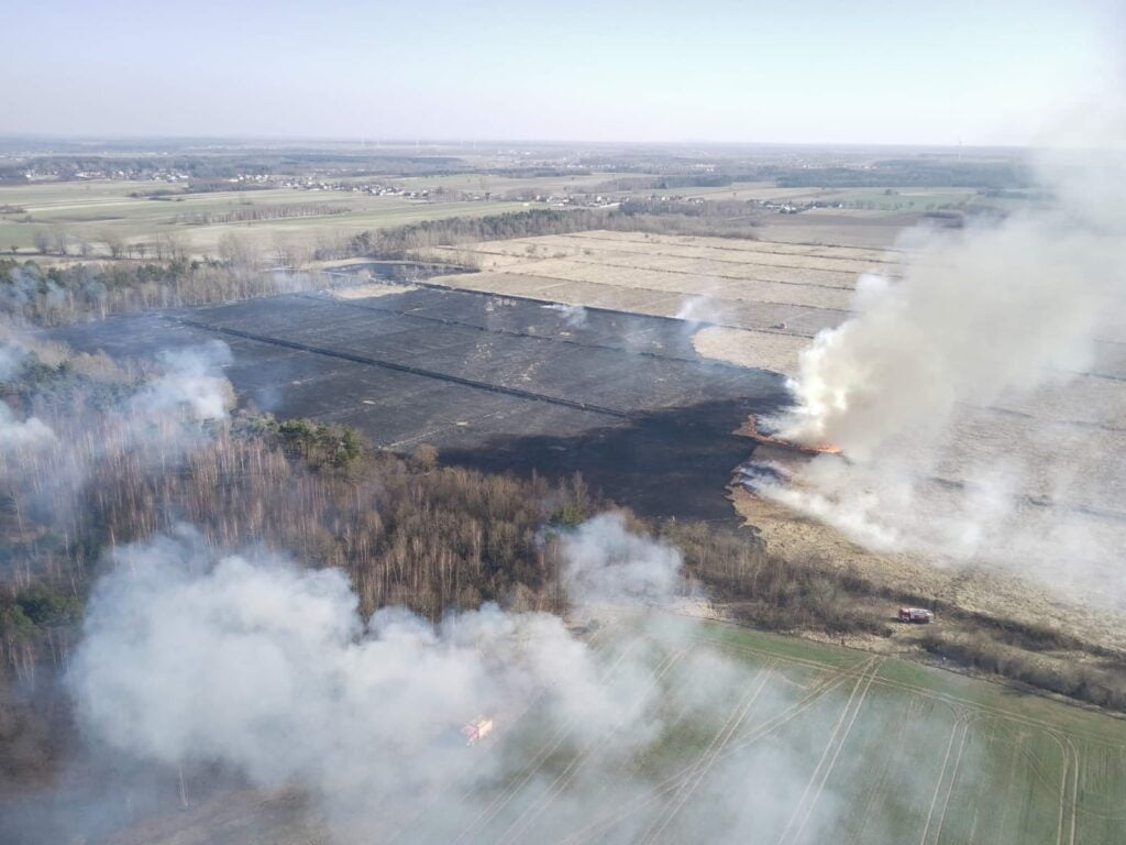 – Zdecydowana większość pożarów powstała w marcu. W całej Polsce śmierć w pożarach traw poniosło już 7 osób! Wypalanie traw nie tylko nie użyźnia gleby ale przeciwnie ją wyjaławia. Pożar traw może również rozprzestrzenić się na lasy czy zabudowania i przez to powodować większe straty materialne. We wtorek 22 marca w powiecie piotrkowskim doszło do dwóch poważnych pożarów traw, a w konsekwencji również lasów. W okolicach miejscowości Gieski w gminie Rozprza spaleniu uległo ok. 25 ha traw i lasu oraz w tym samym czasie w miejscowości Olszyny w gminie Łęki Szlacheckie, pożar strawił 3 ha nieużytków i lasu. Ze względu na niekorzystną pożarowo aurę apelujemy o rozsądek i rozwagę. – informują piotrkowscy strażacy.