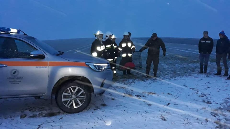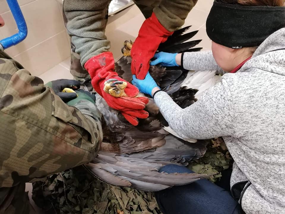 – Sytuacja dość poważna. Ptak dorosły, wystraszony i gotów się bronić. Trzeba go schwytać tak, żeby sam nie ucierpiał i nikogo nie zranił. W akcji, Strażnika Leśnego wspierali dzielni druhowie z OSP Lubanów I OSP Grabica. (…) Ptak już trafił do Leśnego Ośrodka Rehabilitacji Zwierząt Nadleśnictwa Piotrków. Otrzymał pierwszą pomoc lekarską. Podejrzewane jest u niego porażenie prądem. To dorosły ptak w dobrej kondycji fizycznej. Jeśli jego stan się do jutra nie zmieni, zostanie przetransportowany do azylu dla ptaków w Warszawie – informuje na swoim profilu facebookowym Nadleśnictwo Piotrków.