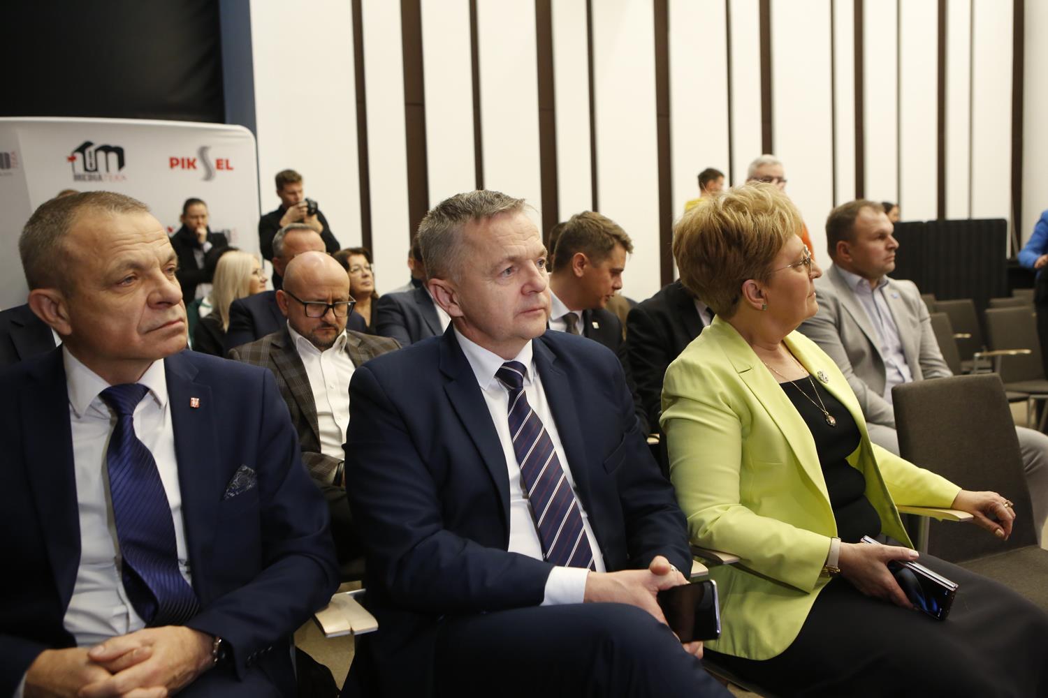 Wicemarszałek Piotr Wojtysiak powiedział, ze to dla niego szczególny dzień. – Dzisiaj mam podwójną satysfakcję, bo jako starosta powiatu piotrkowskiego zabiegałem o to, żeby generalnie w strategii województwa łódzkiego powstał Miejski Obszar Funkcjonalny Piotrków – Bełchatów – Radomsko. Pamiętajmy, że poprzedni zarząd przygotowując strategię, pominął ten ważny dla województwa łódzkiego obszar. Wówczas wraz z prezydentem Piotrkowa i Radomska udało nam się uzyskać zapewnienie, że taki Miejski Obszar Funkcjonalny powstanie – powiedział Piotr Wojtysiak i dodał: – To także satysfakcja, że jako wicemarszałek odpowiedzialny za fundusze europejskie, przyjeżdżamy z panią marszałek Skrzydlewską podpisać umowę, która finalizuje ważne inwestycje, które będą realizowane przez grupę samorządów. To nie będą tylko inwestycje na danym terytorium danego samorządu, ale to będą inwestycje funkcjonalne łączące samorządy (4:11) ziemi piotrkowskiej, radomszczańskiej i bełchatowskiej – mówił wicemarszałek Piotr Wojtysiak.