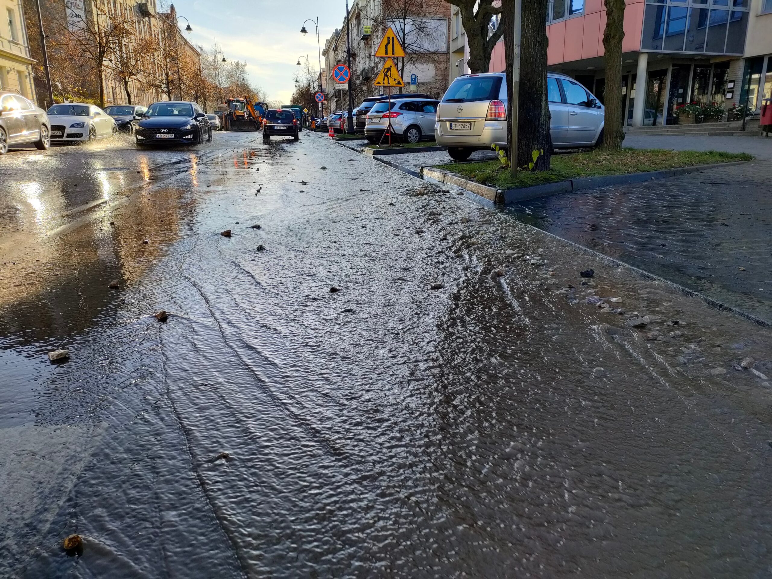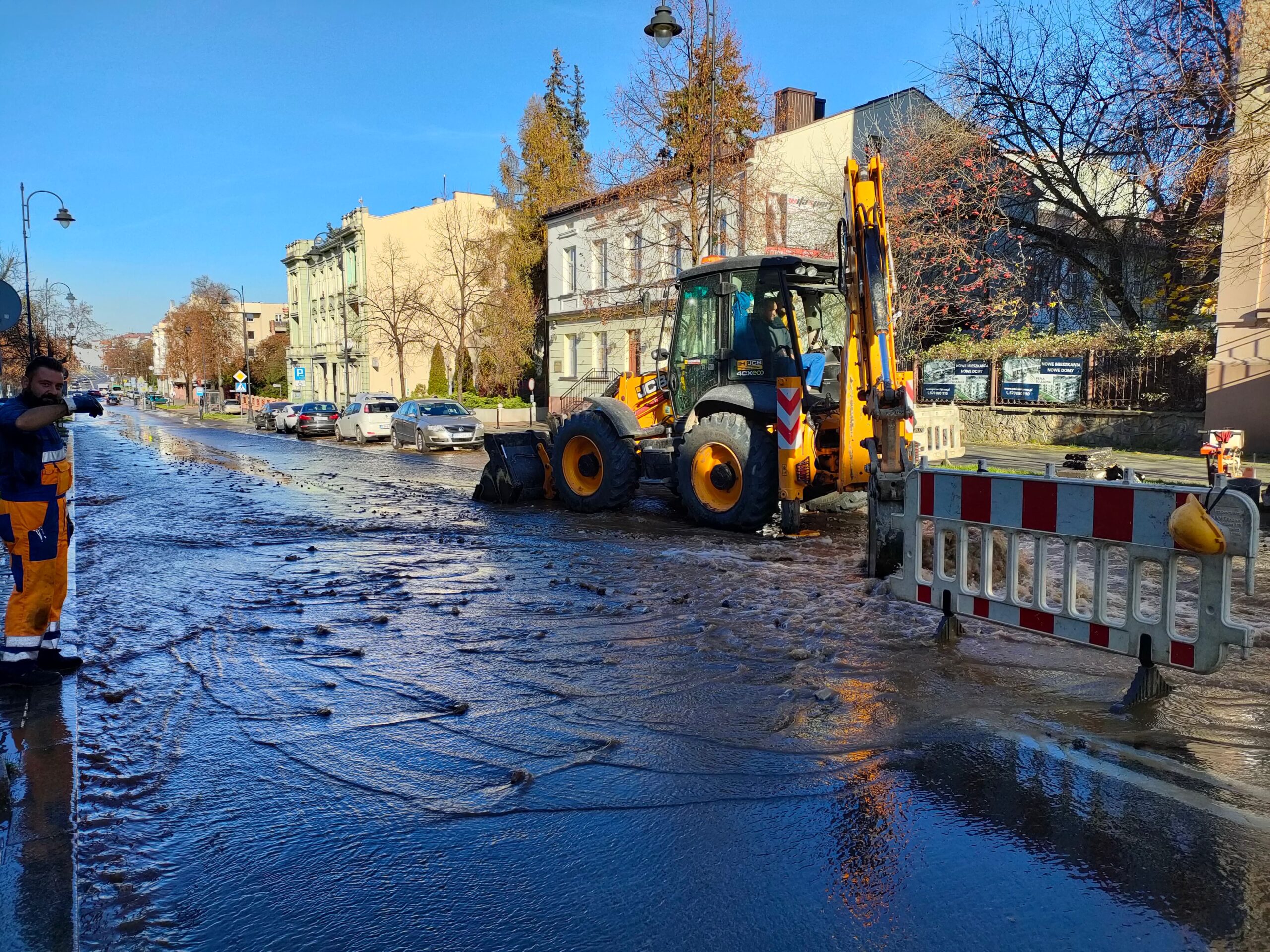 Magistrala wodna pękła na 3 Maja w Piotrkowie. Do awarii doszło we wtorek (08.11) w okolicy prokuratury i MOKu. Ruch na ulicy jest utrudniony, a potok wody płynie do skrzyżowania z Kopernika.