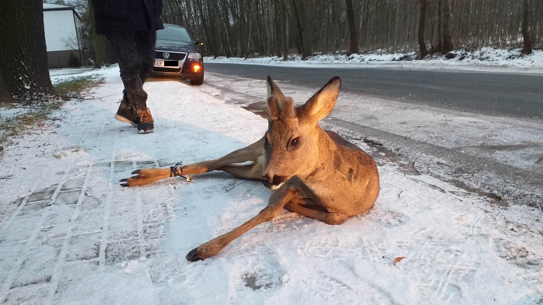 Do potrącenia zwierzęcia doszło w okolicy wiaduktu rakowskiego. Malec wybiegł z lasu i uderzył w drzwi vw passata. Jedną z osób która zatrzymała się by pomóc potrąconemu jeleniowi był nasz czytelnik, pan Tomasz. – Próbowałem jakoś pomóc temu zwierzakowi. Niestety nie mogłem się dodzwonić do weterynarza i wtedy poprosiliśmy na miejsce policję. Myślałem, że radiowozem przewiozą ranne zwierzę do lecznicy, ale funkcjonariuszka pokazała mi pełny bagażnik policyjnych gratów, więc nie pozostało nic innego jak samemu zabrać jelonka do specjalisty i tak rogacz trafił do Osady Leśnej w Kole – relacjonuje nacz czytelnik.