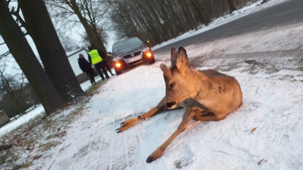 Młodziutki jeleń zderzył się w środę rano z osobówką. Zwierzę próbowało przebiec na drugą stronę drogi Piotrków – Moszczenica.