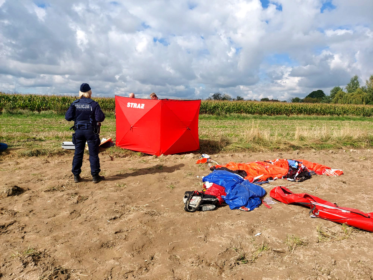 Do dramatycznego wypadku z udziałem dwóch mężczyzn doszło w piątek rano podczas szkoleń międzynarodowej grupy spadochronowej. Jak wstępnie ustalono, dwóm skoczkom prawdopodobnie zaplątały się linki spadochronu i runęli na ziemię.