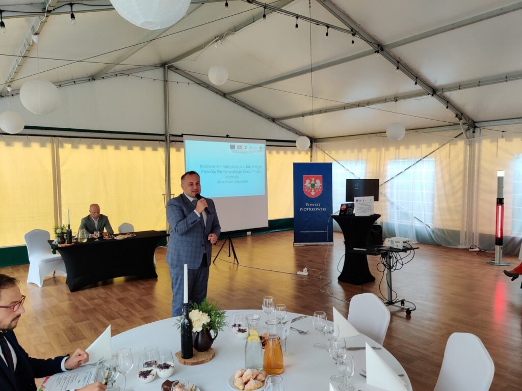 – Dziękuję mieszkańcom gmin Powiatu Piotrkowskiego, którzy wzięli udział w warsztatach i podzielili się swoimi produktami i związanymi z tym historiami. Dzisiaj produktem jest miejsce. Chciałbym, aby Powiat Piotrkowski był kojarzony z produktami smacznymi i wysokiej jakości, które obecnie są wytwarzane przez Koła Gospodyń Wiejskich i przedsiębiorców – podkreślał Starosta Powiatu Piotrkowskiego, Piotr Wojtysiak.. – Chciałbym, aby produkty te stały się ambasadorem Ziemi Piotrkowskiej. Będziemy promować lokalne produkty i wspierać przedsiębiorców, którzy je wytwarzają. Powiat pozyskał kolejne środki tym razem w wysokości 1,5 mln złotych na promocję przedsiębiorców z terenu Powiatu. Wykreujemy nowe produkty, które będziemy brandować marką, rozpoznawalną w kraju i Europie. Smaki Ziemi Piotrkowskiej będzie można wytwarzać w dwóch powstających właśnie inkubatorach pszczelarskim i owocowo-warzywnym – przypomniał Starosta Piotrkowski.