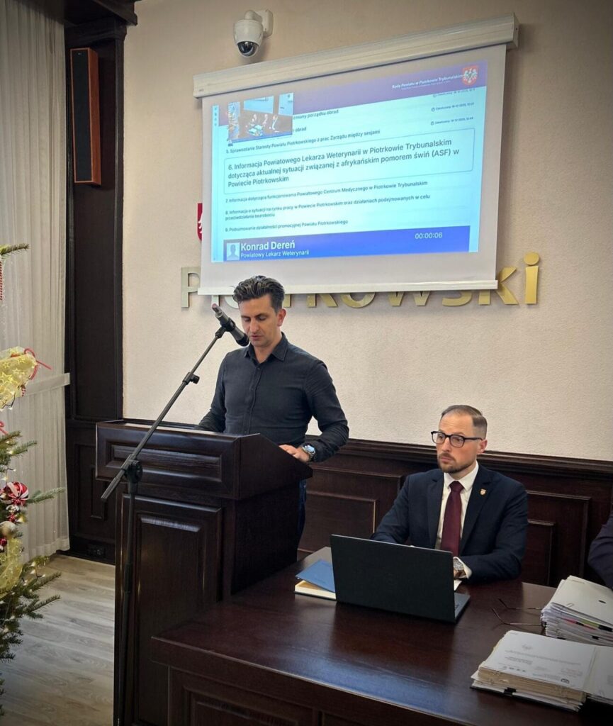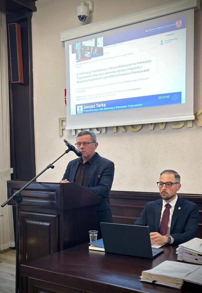 Jednym z istotnych punktów obrad była informacja Powiatowego Lekarza Weterynarii w Piotrkowie Trybunalskim, Konrada Derenia, dotycząca aktualnej sytuacji związanej z afrykańskim pomorem świń (ASF) na terenie powiatu.
