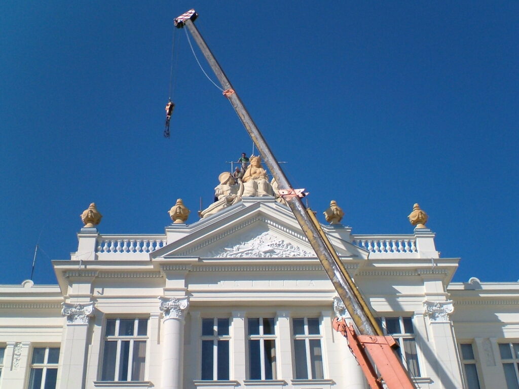 Dokładnie za miesiąc minie dziewiętnaście lat odkąd bogini Temida powróciła w dosłownym znaczeniu na szczyt eklektycznego gmachu piotrkowskiego sądu. Odtąd ten najbardziej okazały budynek w mieście zwraca uwagę już nie tylko pilastrowaną elewacją z ryzalitem zwieńczonym tympanonem i balustradą, pod którą widnieją  labrysy (obusieczne topory), symbole sędziowskie z czasów Starożytnego Rzymu, ale także okazałą rzeźbą Triady Temidy. Jej powrót był rekonstrukcją oryginalnego wyglądu budynku z początku XX wieku. Dziś przypominamy operację osadzenia 3,5 metrowego posągu bogini na dachu Pałacu Sprawiedliwości w Piotrkowie.