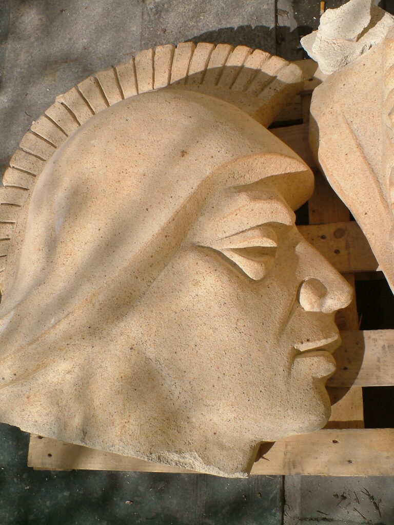 Przez blisko sto lat fronton piotrkowskiego gmachu sądowego przy ulicy Słowackiego 5 był zdekompletowany, niepełny, bowiem pozbawiony posągu Triady Temidy, jaki go zdobił tuż po wybudowaniu. Posąg, jak i cały obiekt zaprojektował w stylu eklektycznym Feliks Nowicki (1840-1920). Pierwotna Temida, którą możemy podziwiać na zaledwie kilku ocalałych fotografiach z początku XX wieku, niestety nie przetrwała na swym miejscu nawet dekady. Rzeźba została zdemontowana jeszcze w czasie I wojny światowej, bowiem niejaki Tyller, główny wykonawca budowlany sądowego gmachu, odlał posąg bogini sprawiedliwości z tak kruchego materiału, że wkrótce po oddaniu obiektu do użytku poszczególne jej fragmenty z dużym impetem „lądowały” na głowach sądowych petentów. Okazją do powrotu Triady na jej pierwotne miejsce i rekonstrukcją oryginalnego wyglądu gmachu był częściowy remont jego dachu i elewacji. Pierwsze zmiany w ogóle w wyglądzie najpiękniejszego i najbardziej okazałego budynku w mieście Piotrkowianie mogli zauważyć już pod koniec 2006 roku.