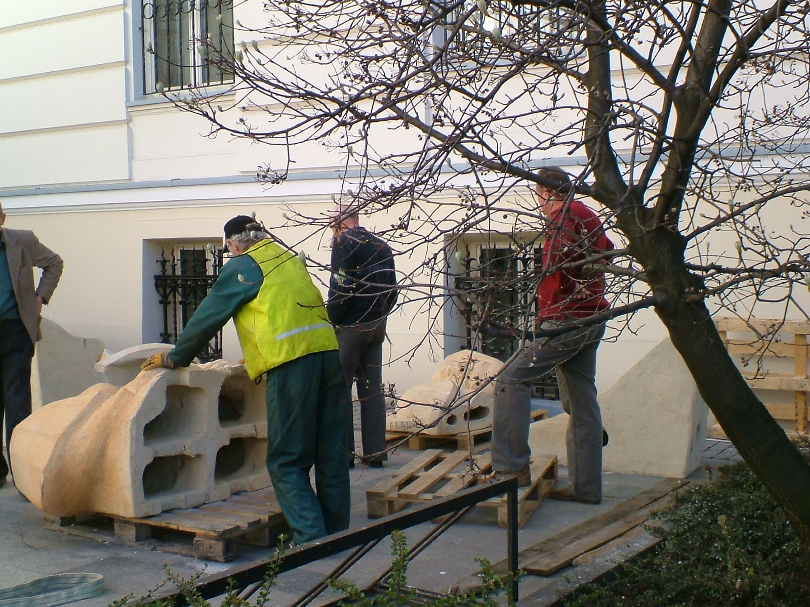 Ich montaż rozpoczął się kilka minut po godzinie 8.00 w sobotę 22 kwietnia 2007 roku. Z uwagi na warunki atmosferyczne nie udało się wykonać montażu w I kwartale, jak pierwotnie zakładano. Przez kilka godzin, za pomocą dźwigu, kolejne fragmenty rzeźby, jeden po drugim, były transportowane na dach gmachu sądowego, gdzie je mocowano w specjalnie dla nich przeznaczonym miejscu. Prace nadzorował osobiście sam autor posągu. Ostatni fragment Triady Temidy – głowa rycerza – „powędrował” do góry po godzinie 15.00. Posąg w pełnej już okazałości można było podziwiać na szczycie sądowego gmachu po blisko ośmiu godzinach prac. Pod względem logistyczno-technicznym transport na dach fragmentów rzeźby i ich montaż były operacją dość trudną. Zwłaszcza dla operatora dźwigu. Nie tylko musiał on uważać by nie „wypuścić” podczepionych elementów posągu, ale także by nie uszkodzić elewacji zabytkowego gmachu sądu. Także odbiór fragmentów rzeźby na dachu przez montujących, z uwagi na wagę ceramicznych kawałków był sporym wysiłkiem. Na szczęście tego dnia panowała bezwietrzna i słoneczna pogoda, co bez wątpienia ułatwiło całą akcję i zapewniło przechodniom interesujące widowisko.
