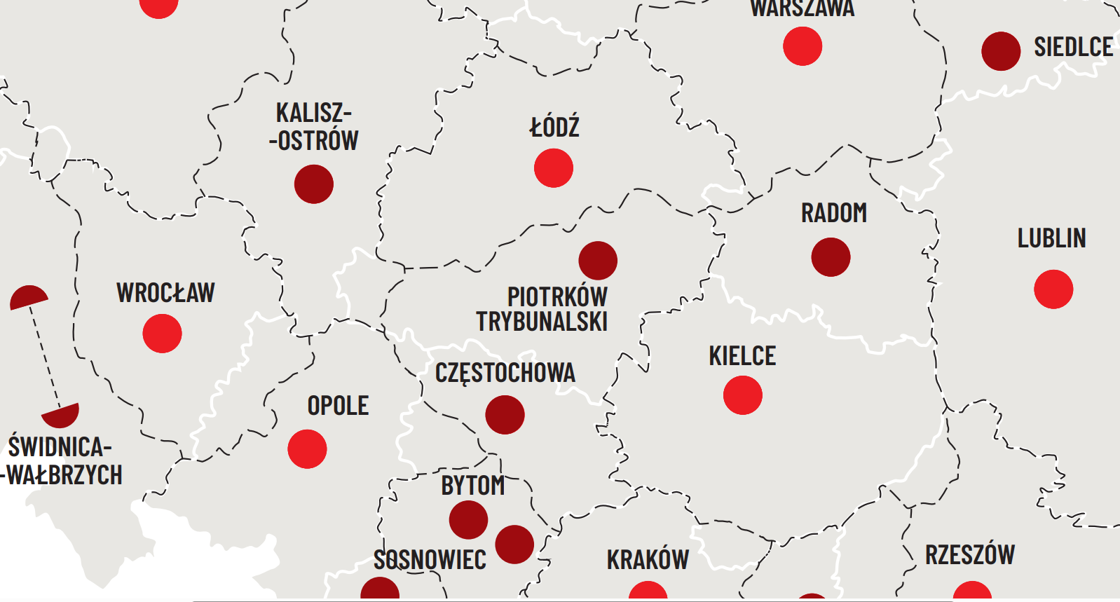„Trzecia nowa jednostka powstaje między okręgami metropolitalnymi Łodzi i konurbacji śląsko-dąbrowskiej. Składa się z regionów Częstochowy i Piotrkowa Trybunalskiego. Zasięg tego pierwszego odpowiada w przybliżeniu miejscowej archidiecezji, obejmując pas „jurajski” z dzisiejszego województwa śląskiego. Od strony Łodzi do obszaru ciążenia Piotrkowa wchodzą jedynie pobliskie Bełchatów i Tomaszów. Zjednoczenie Częstochowy i Piotrkowa Trybunalskiego rozwiązuje problem ich wspólnego zaplecza, dotychczas rozdzielonego granicą. ” – czytamy w raporcie Instytutu Sobieskiego.