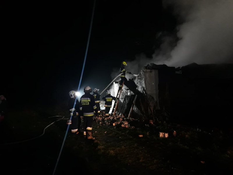 Po przybyciu na miejsce pierwszych jednostek, strażacy ogień zastali w budynku gospodarczego. Ogniem objęty był dach oraz wnętrze budynku.