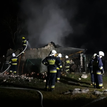 – Strażacy zabezpieczyli miejsce zdarzenia oraz odłączyli zasilanie energii elektrycznej w budynku. Po ugaszeniu ognia, działania strażaków polegały na przeszukaniu obiektu i przelewaniu wodą tlących się elementów. W pożarze na szczęście nie ucierpiała żadna osoba – relacjonuje strażak.