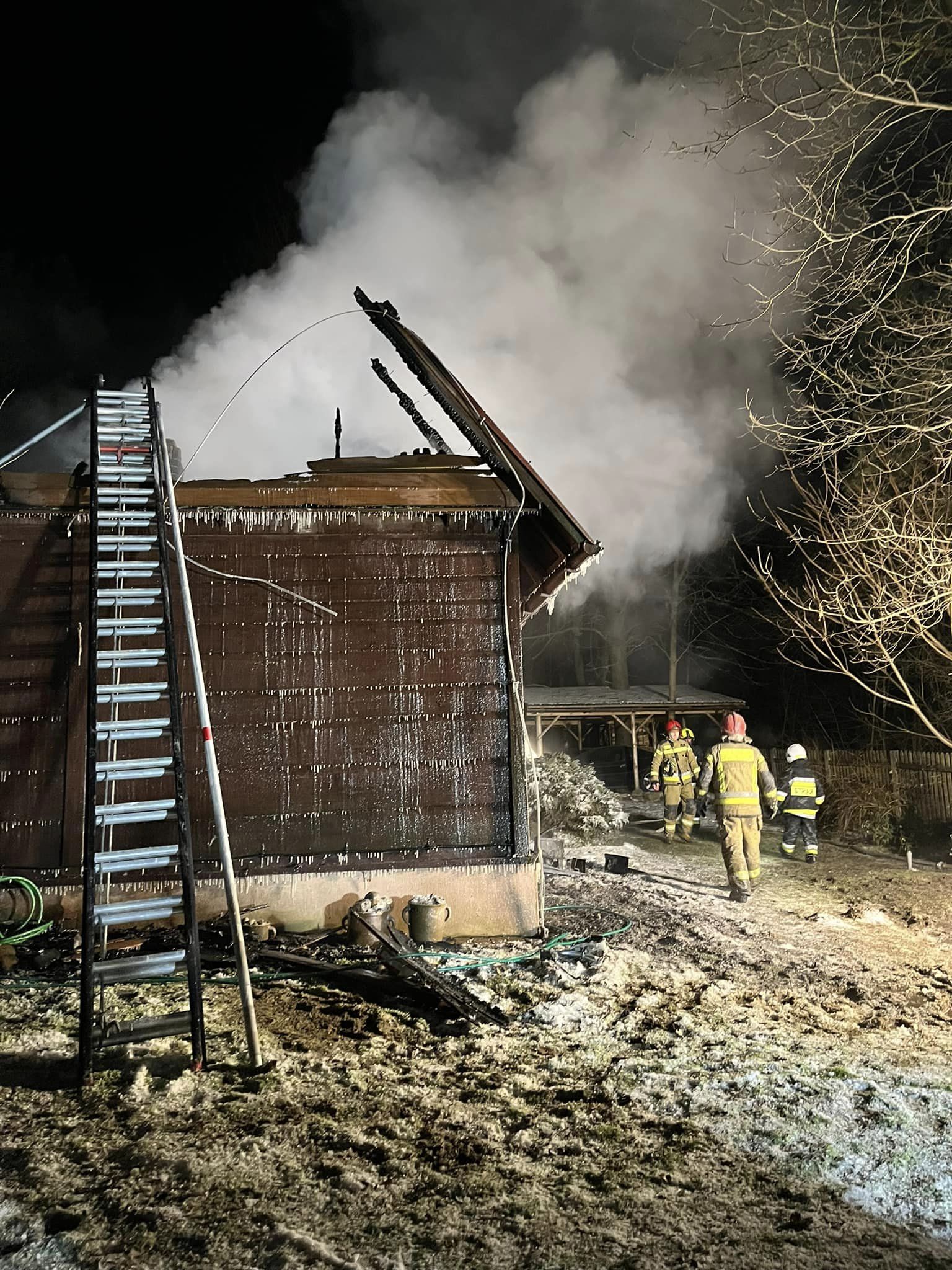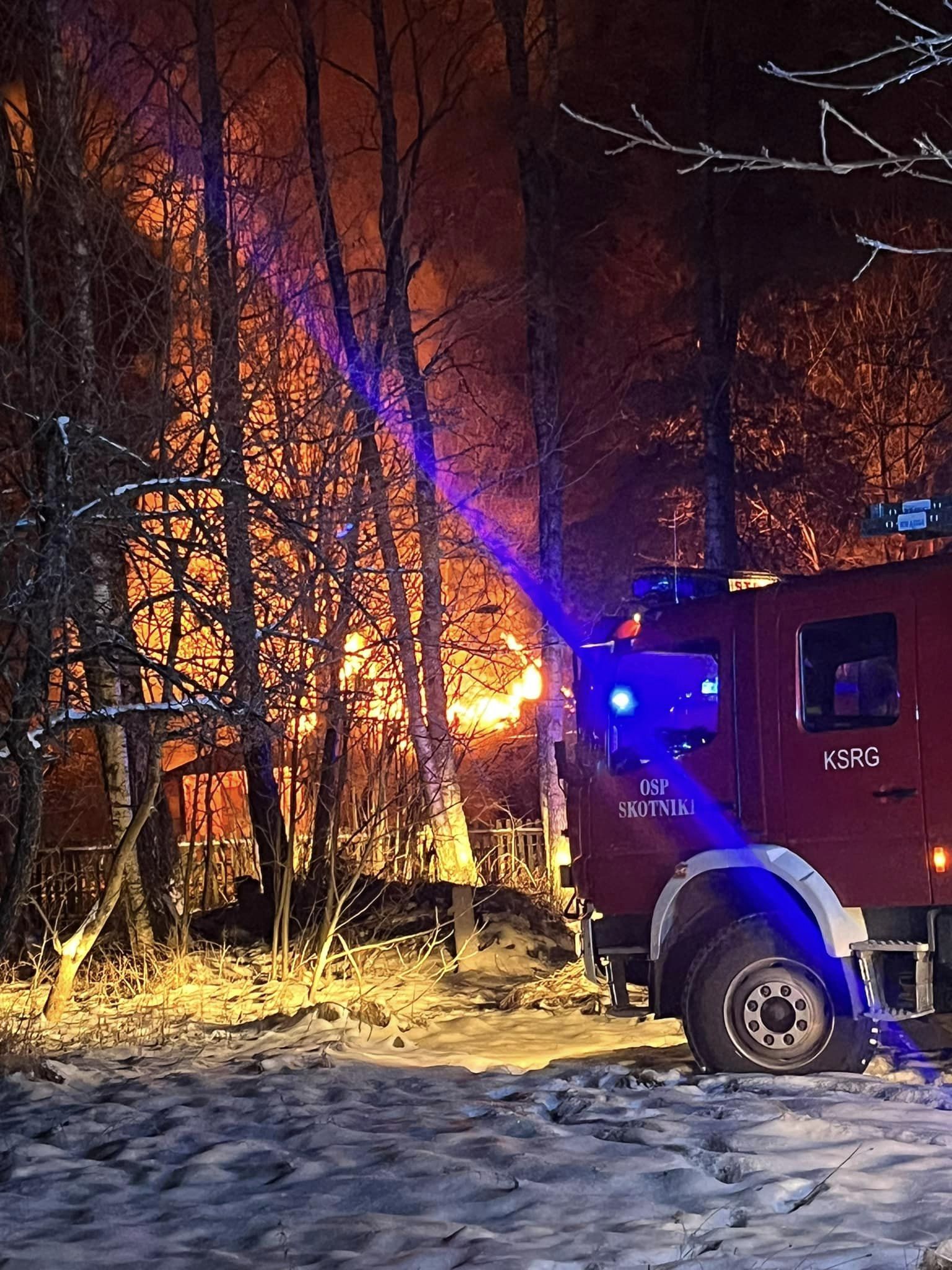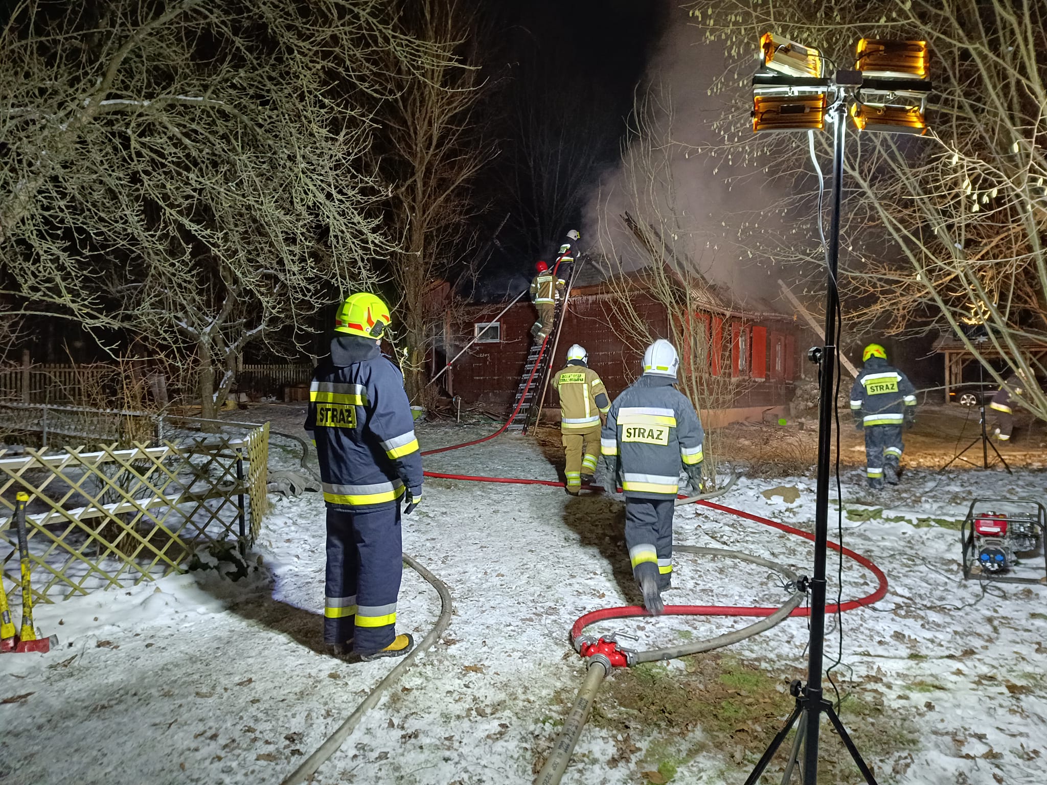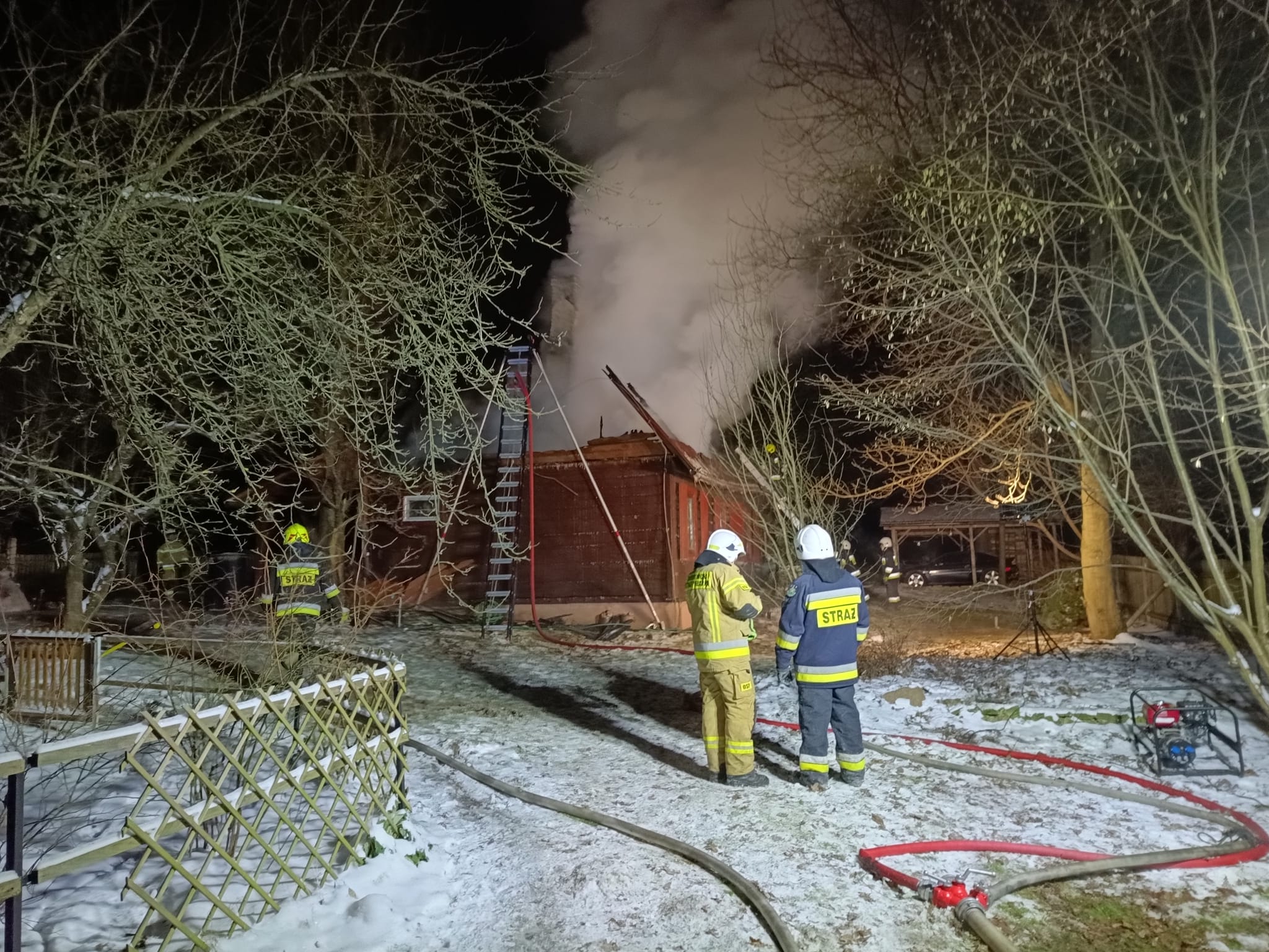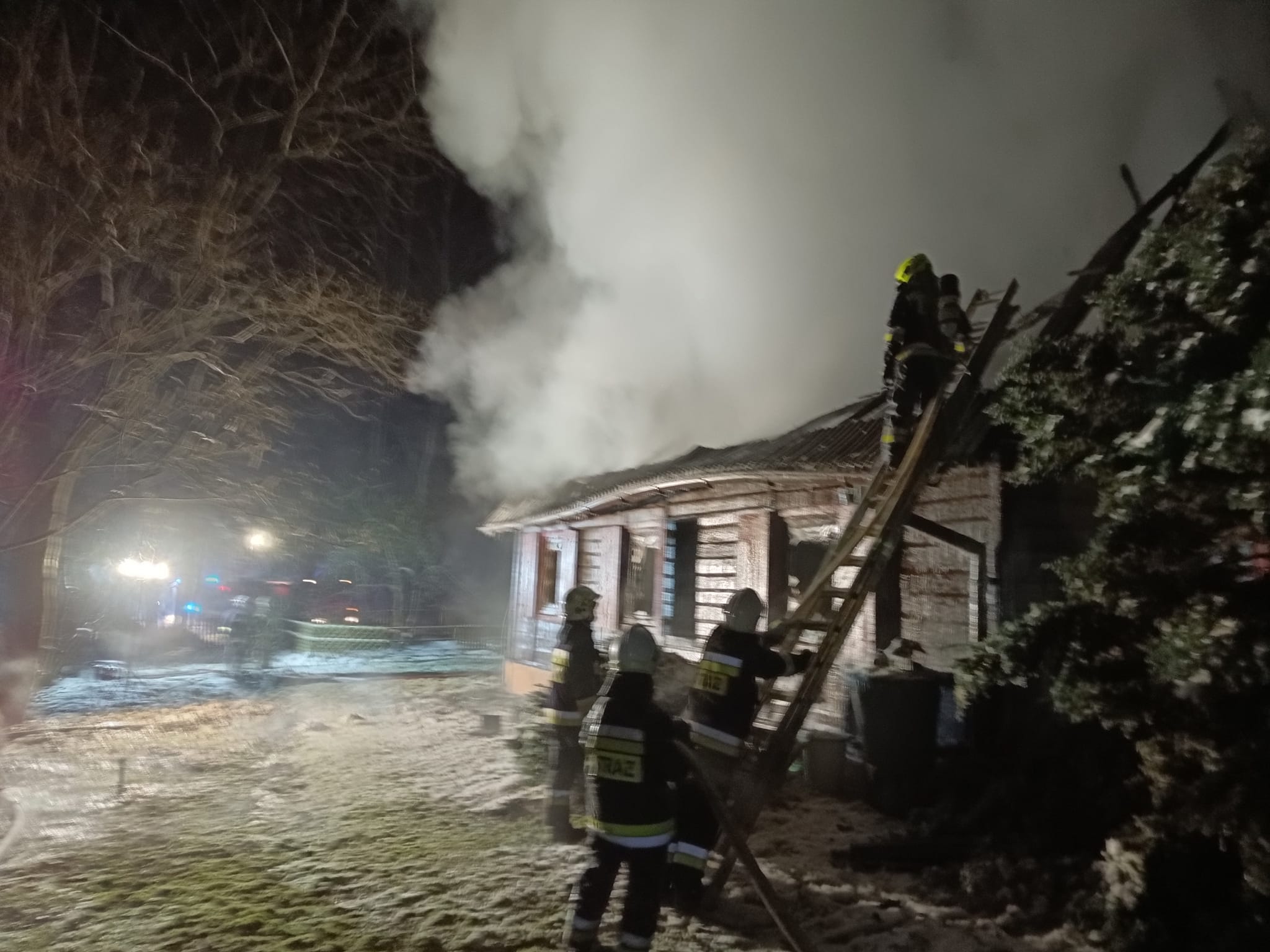 Doszczętnie spalił się dom jednorodzinny w Szarbsku w gminie Aleksandrów. Jedna osoba została ranna.