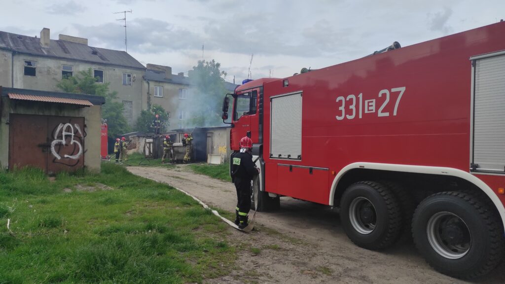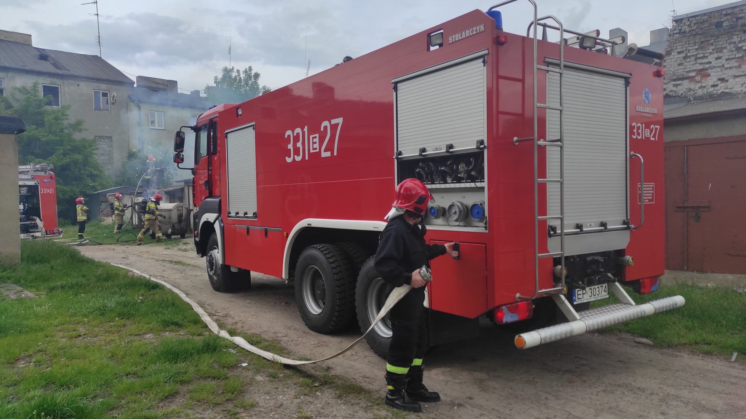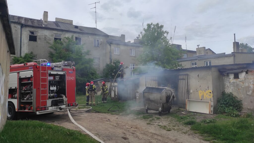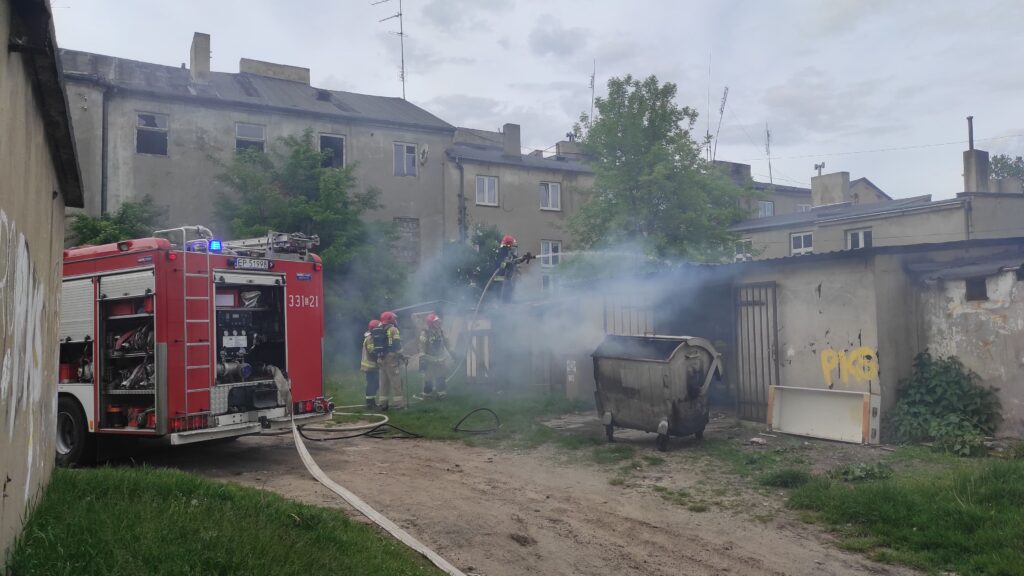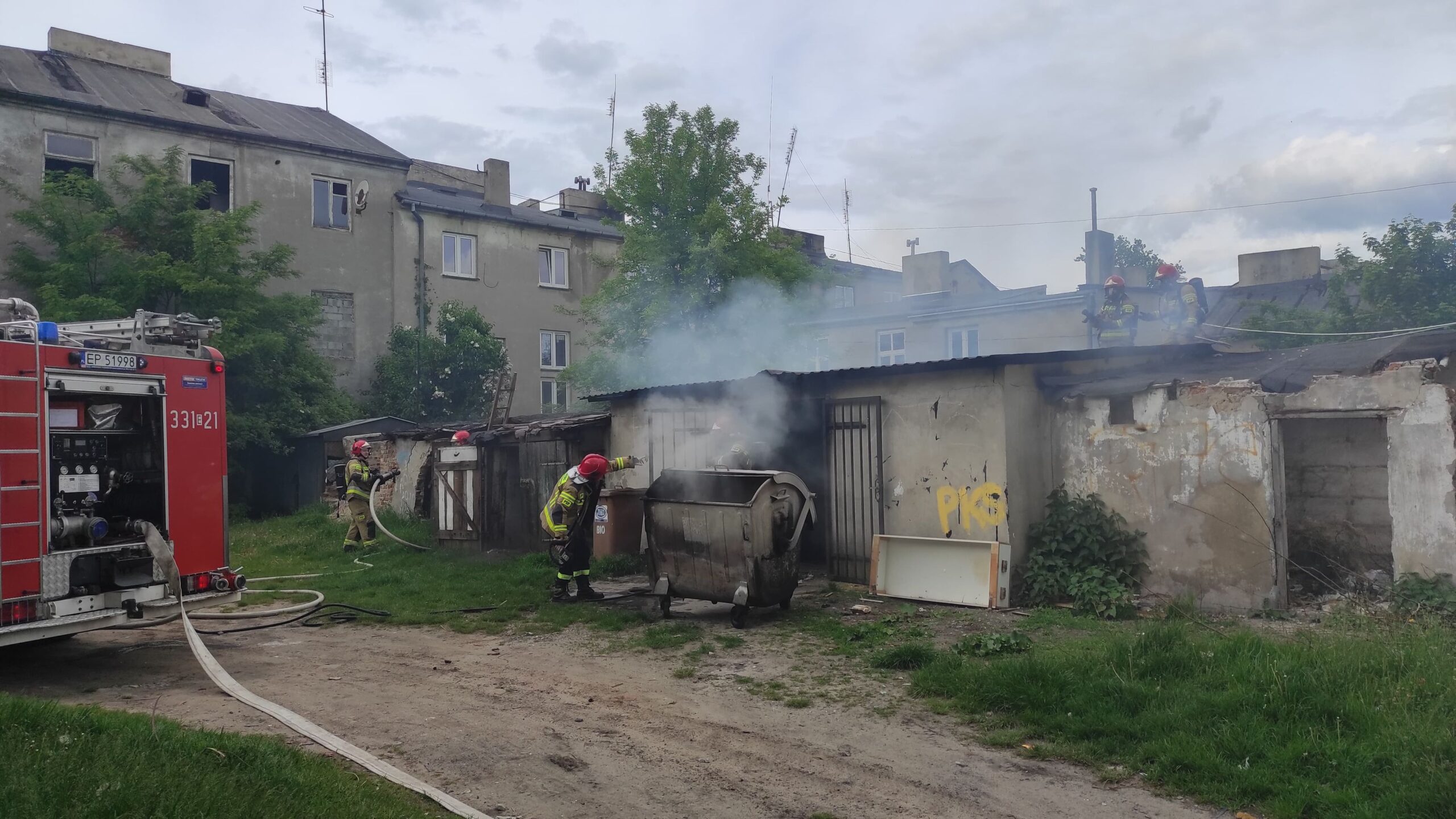 Trzy zastępy strażaków gasiły pożar komórek i pergoli śmietnikowej na ulicy Garncarskiej w Piotrkowie. Na szczęście nikomu nic się nie stało.