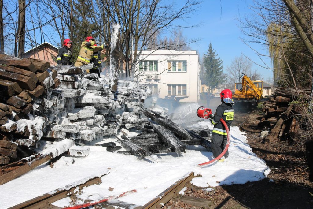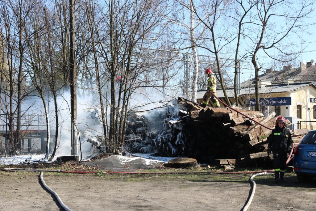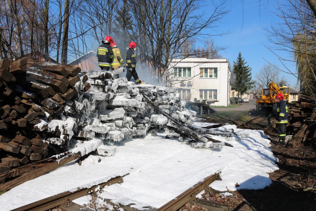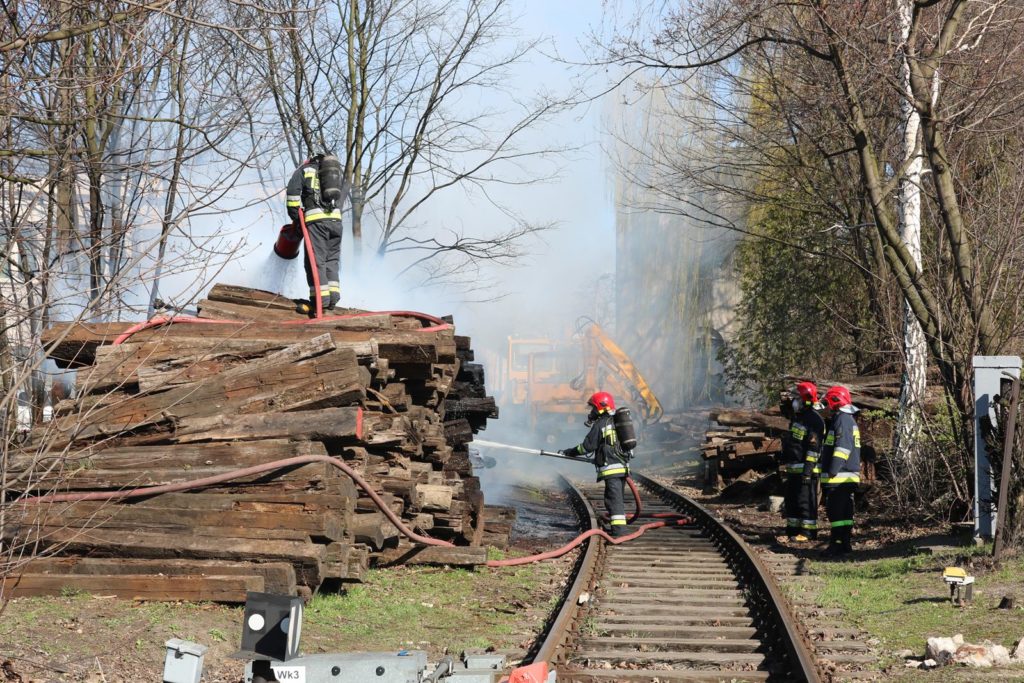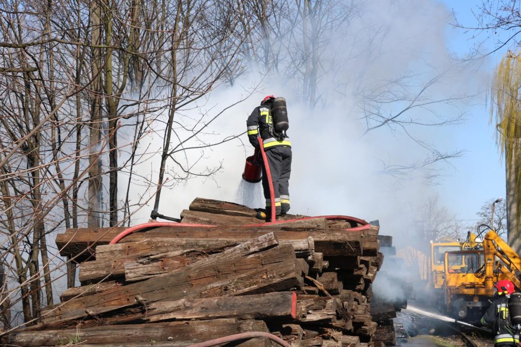 Piotrkowscy strażacy ugasili stare podkłady kolejowe. – Po dojeździe na miejsce pierwszego zastępu strażaków, okazało się, że pożar jest na tyle rozwinięty, że siły i środki są niewystarczające, dlatego zadysponowano kolejny zastęp. Udało się zlokalizować i ugasić pożar. Stertę podkładów trzeba było przelać pianą gaśniczą. Gaszenie było utrudnione, bowiem drewniane podkłady nasączone są olejami – poinformował mł. bryg. Wojciech Pawlikowski, zastępca dowódcy JRG w Piotrkowie.
