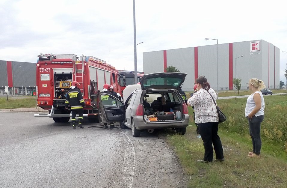 Prawdopodobnie nieszczelne przewody paliwowe były przyczyną pożaru samochodu osobowego, do którego doszło w niedzielę po południu na DK 74 tuż za Piotrkowem w kierunku Bełchatowa.