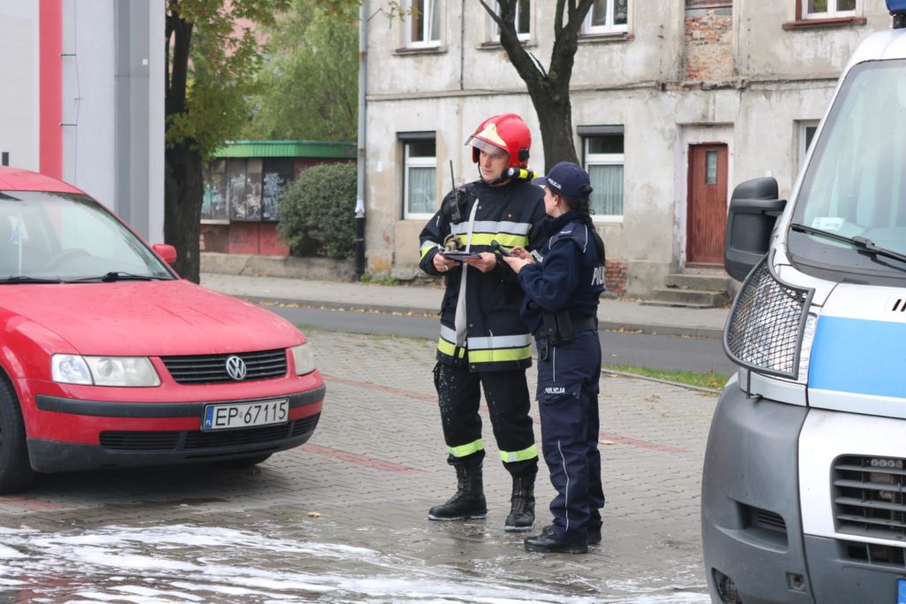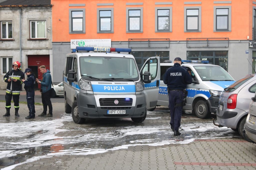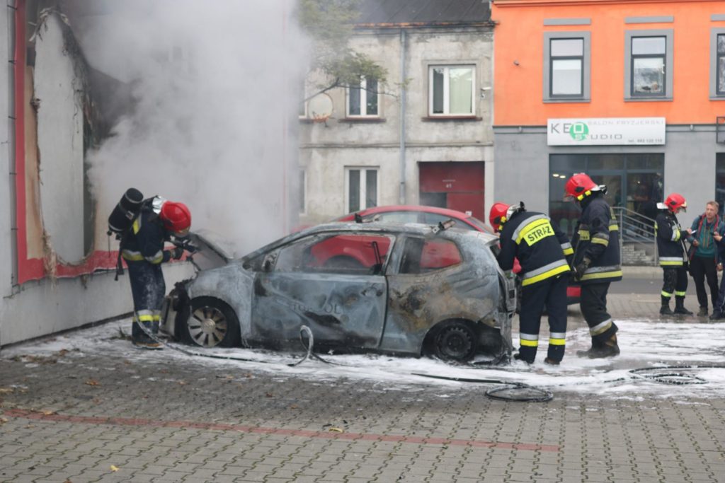 Lekkich poparzeń dłoni podczas gaszenia doznał właściciel feralnego pojazdu. Uszkodzeniu uległa także reklama sklepu i elewacja budynku.