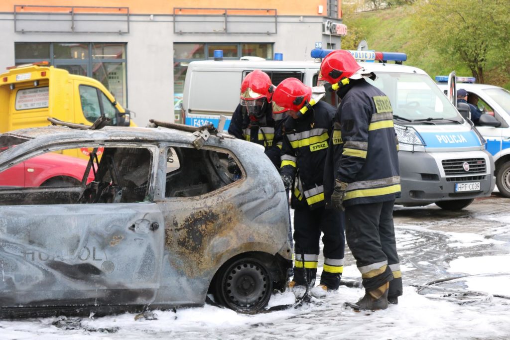 Na parkingu sklepu meblowego Bodzio doszczętnie spłonął vw up. Do zdarzenia doszło w czwartek po południu.