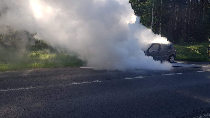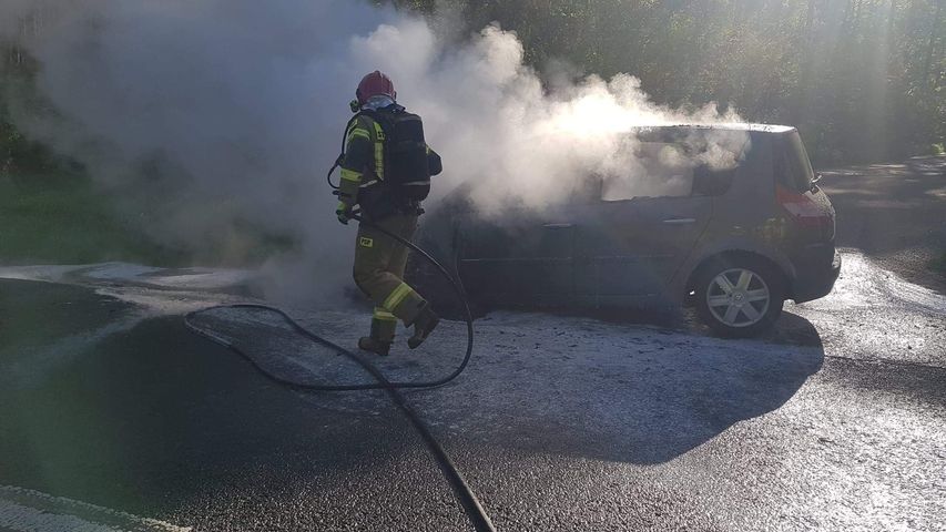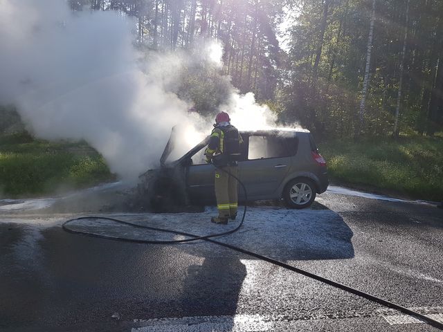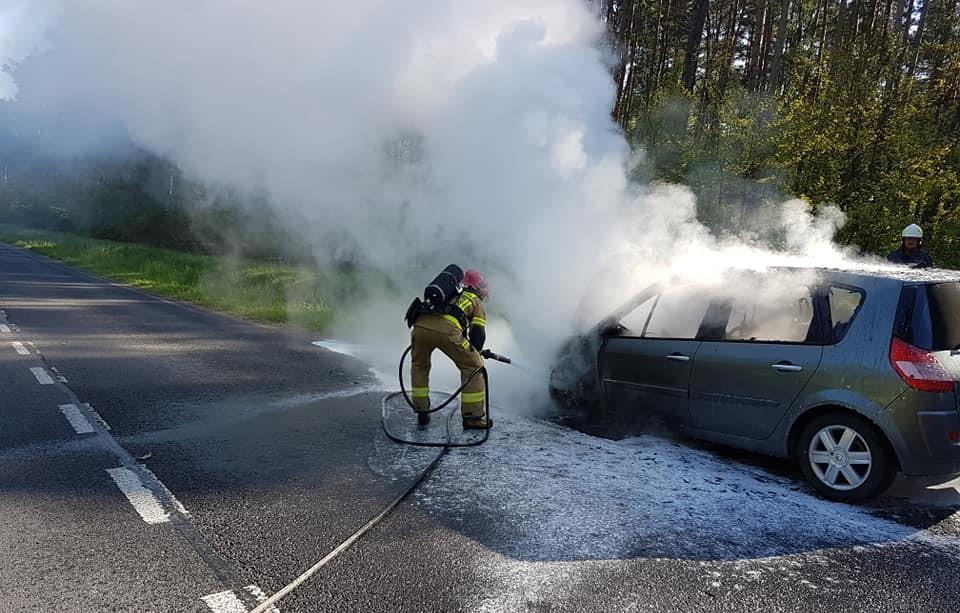 Pomiędzy Przygłowem w miejscowością w Łęczno zapalił się samochód osobowy. Z ogniem walczyły dwa zastępy strażaków.