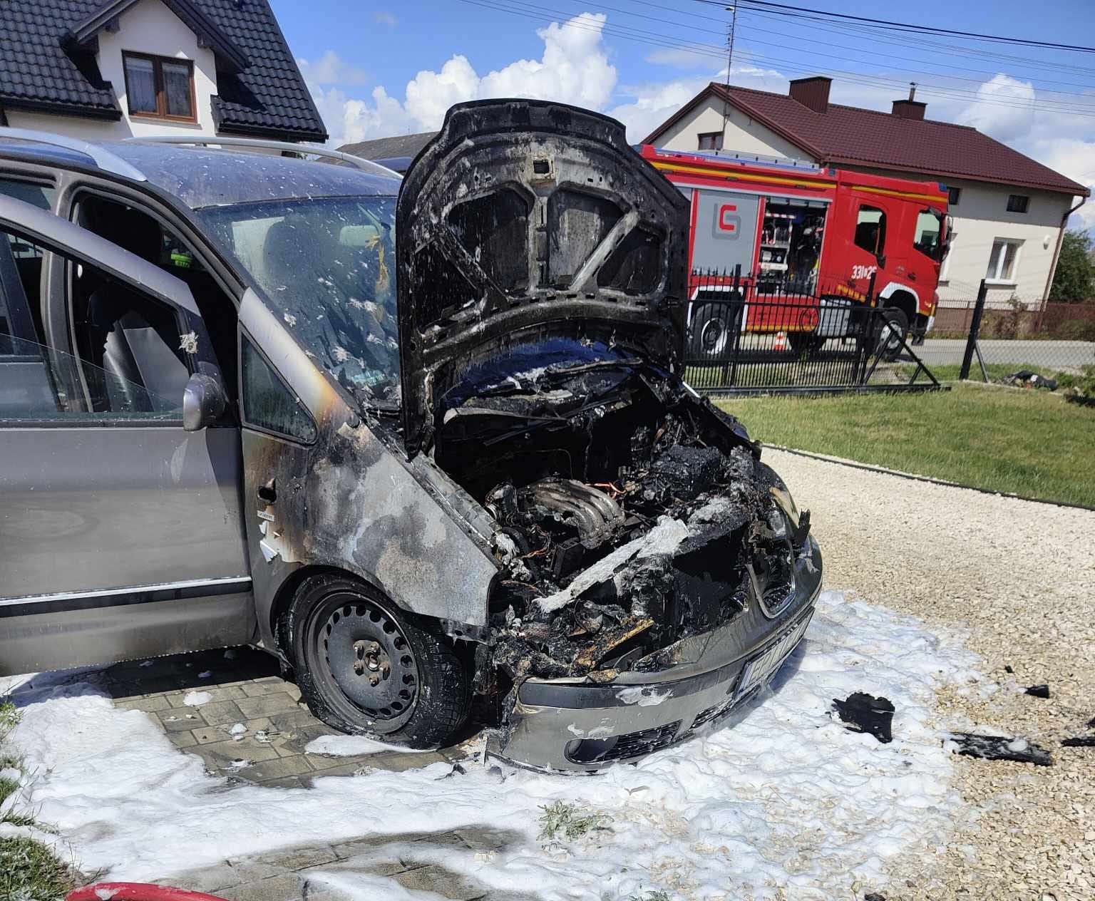 Trzy zastępy strażaków gasiły pożar samochodu osobowego. Do zdarzenia doszło we wtorek wczesnym popołudniem. Ranna została jedna osoba.