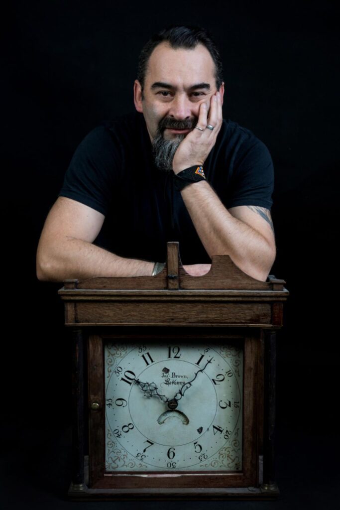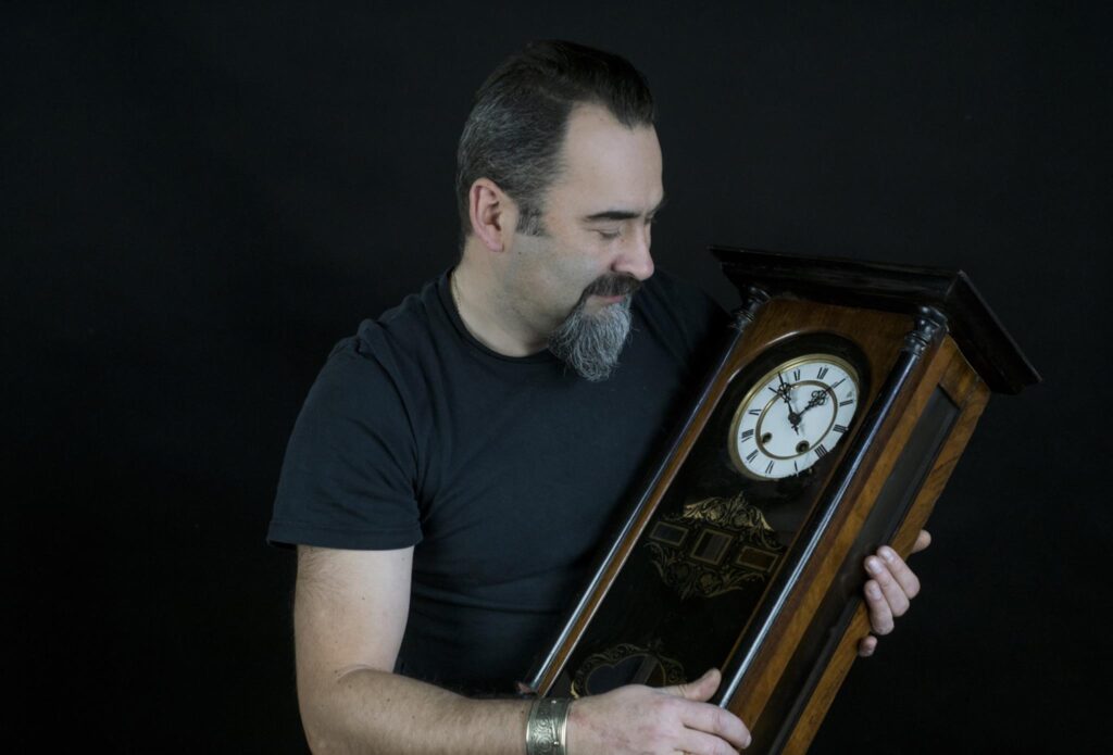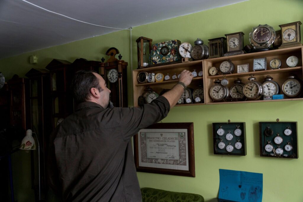 Moja droga z zegarami zaczęła się jeszcze w szkole podstawowej, kiedy trzeba było wybrać sobie jakiś pomysł na życie. Jestem dość uzdolniony plastycznie oraz manualnie, uczęszczałem więc na modelarnię w Piotrkowie. Trochę też malowałem (z dzisiejszego punktu widzenia, bazgroły i takie tam), chciałem nawet iść do liceum plastycznego w Łodzi. Ale nie było na to zgody moich rodziców -“musisz mieć jakiś zawód” – twierdzili. I wtedy mój tata opowiedział mi o zawodzie zegarmistrz z takim zaangażowaniem, że postanowiłem spróbować, a nadarzyła się okazja, ponieważ mój instruktor z modelarni był synem znanego w Piotrkowie zegarmistrza. I tak w połowie ósmej klasy trafiłem do zakładu zegarmistrzowskiego Mistrza Józefa Filasa. I już zostałem na kilka lat. Ukończyłem szkołę zawodową o profilu zegarmistrz, przedmiotów zawodowych uczyłem się w Łódzkim Technikum Mechaniki Precyzyjnej nr 4. Po trzech latach nauki i zdanym egzaminie, otrzymałem Dyplom Czeladniczy, który już uprawniał do wykonywania zawodu na własną rękę. Niestety to były bardzo trudne czasy dla zegarmistrzostwa, po kilku miesiącach zamknąłem swój pierwszy zakład w Piotrkowie i poszedłem do pracy w masarni. Tak, wiem, trochę mało precyzyjna praca… Potem było wojsko i wyjazd za chlebem zagranicę. I tu zaczyna się nowy etap mojej drogi zawodowej, mieszkałem wtedy w Rzymie, w czasie wolnym od pracy zwiedzałem, a było co zwiedzać. Pewnego dnia zobaczyłem ciekawą scenę: częściowo na ulicy, częściowo w zakładzie stał ciekawy mebel, wyglądał na stary i taki pięknie zdobiony, a przy nim dwóch czy trzech panów, jeden coś przykręcał, drugi malował… Usiadłem na krawężniku i przyglądałem się temu przez kilka dobrych godzin. To wtedy pomyślałem “ja to chcę robić w życiu”.