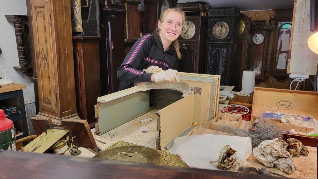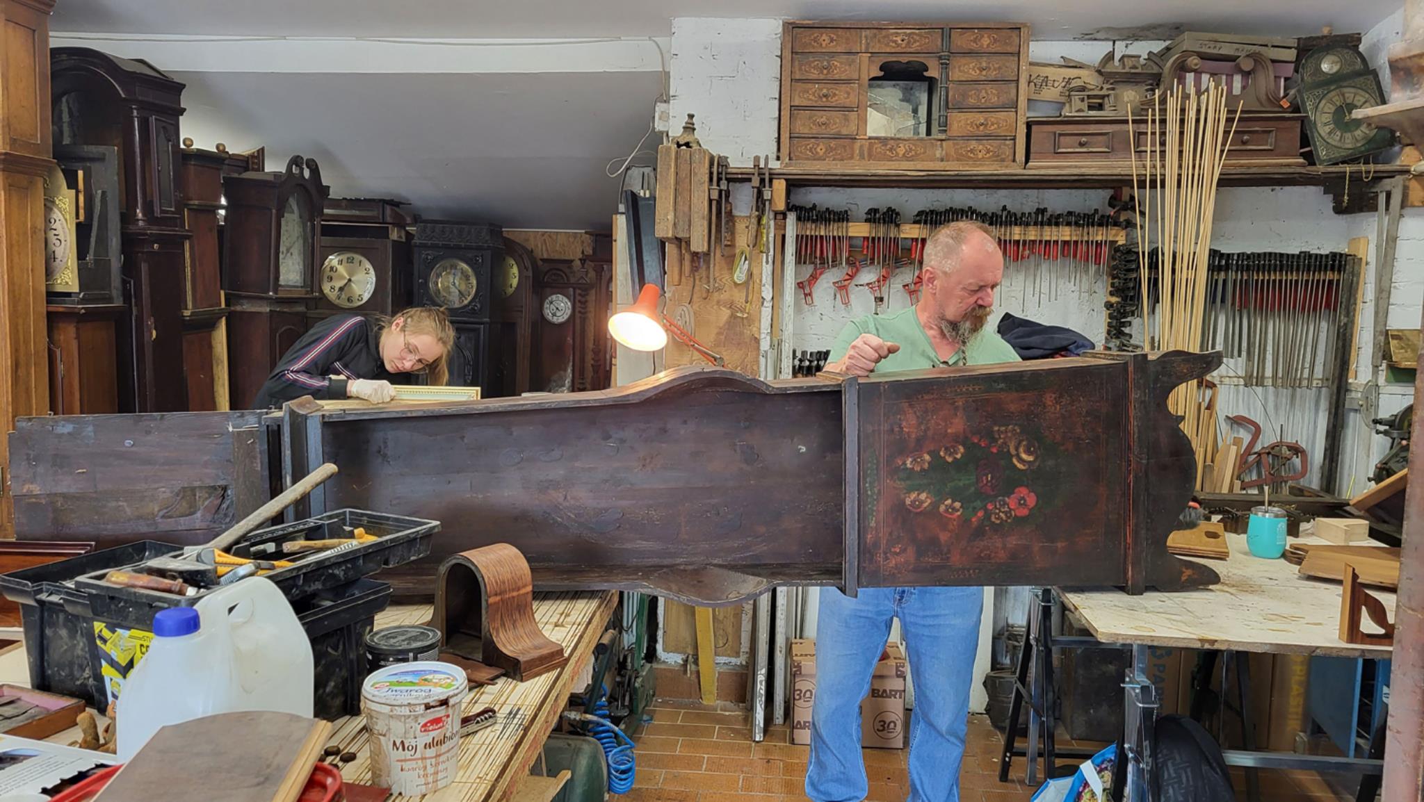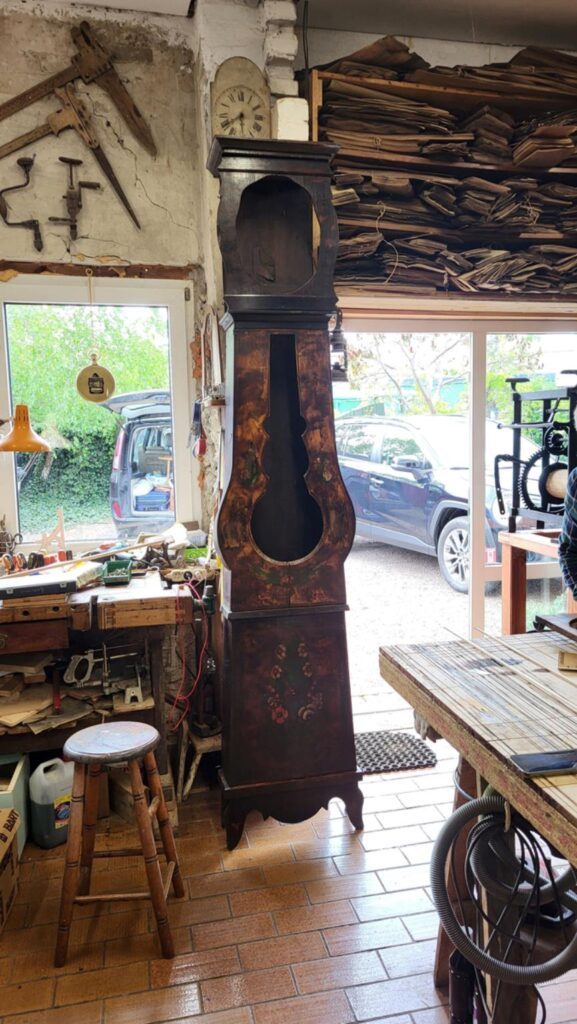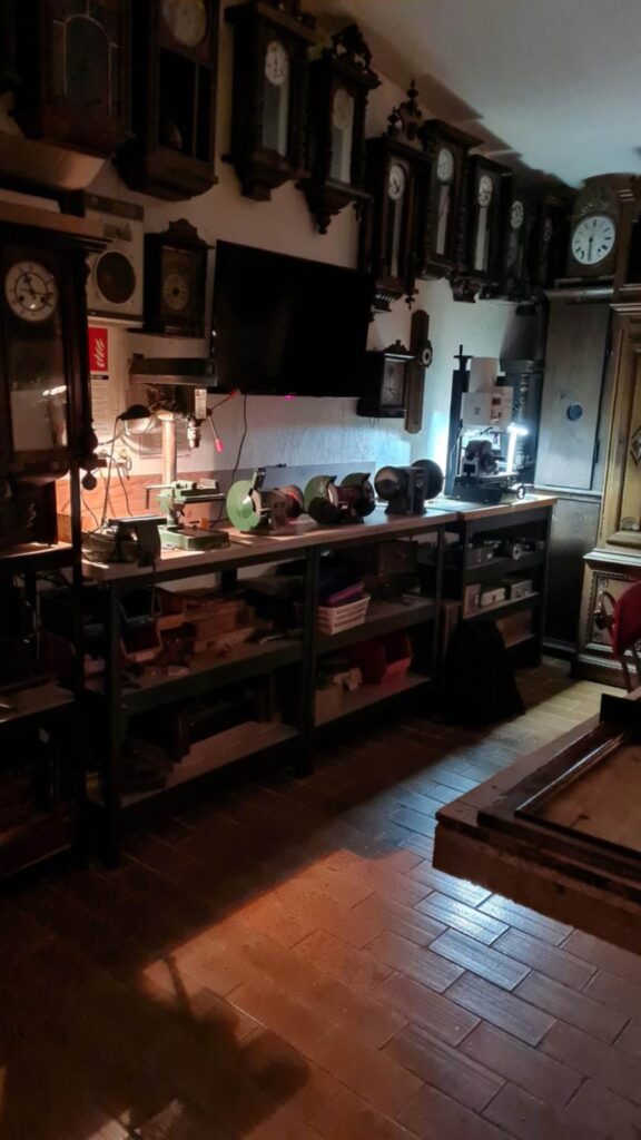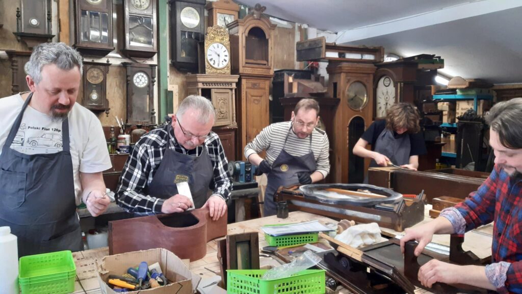 W 2002 roku wyprowadzam się z Warszawy do Ręczna, kupuję dom przez telefon, mam nie lada wyzwanie- przetransportowanie olbrzymiej pracowni. Wynająłem tira, 25 osób pakowało pracownię na ciężarówkę przez 12 godzin, po czym druga ekipa w Ręcznie czekała do rozładunku. I tak pracownia zaczęła funkcjonować w nowym miejscu. Przez cały czas próbowałem łączyć dwie moje pasje w jedną: renowacja mebli i zegarmistrzostwo. Ostatecznie zapadła decyzja o przeprofilowaniu pracowni w pracownię renowacji zegarów w roku 2018 (po 20-tu latach działalności), wtedy też podjąłem decyzję o podejściu do Egzaminu Mistrzowskiego i ruszyły pierwsze warsztaty renowacji zegarów.