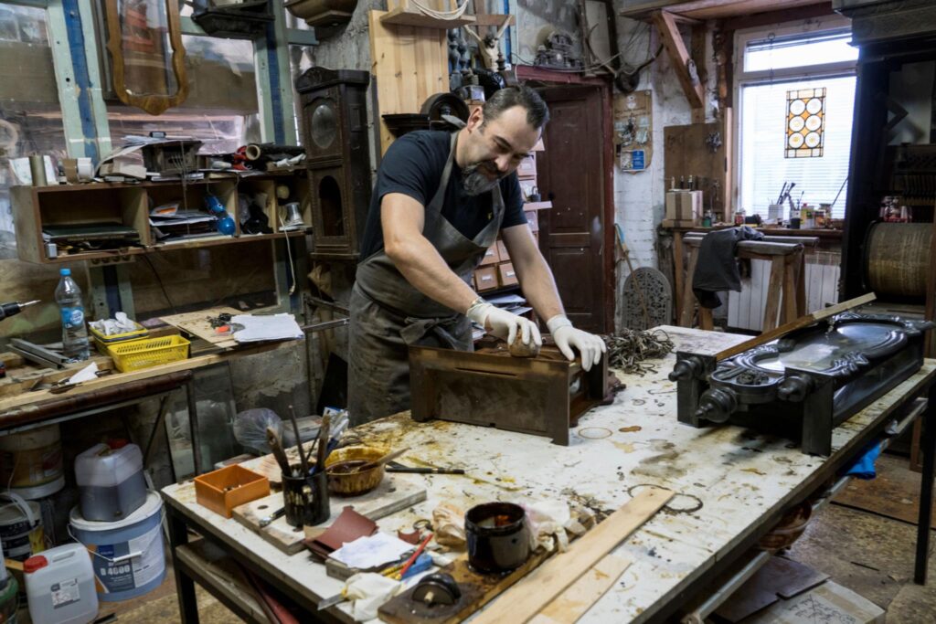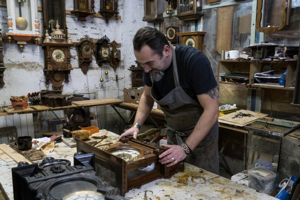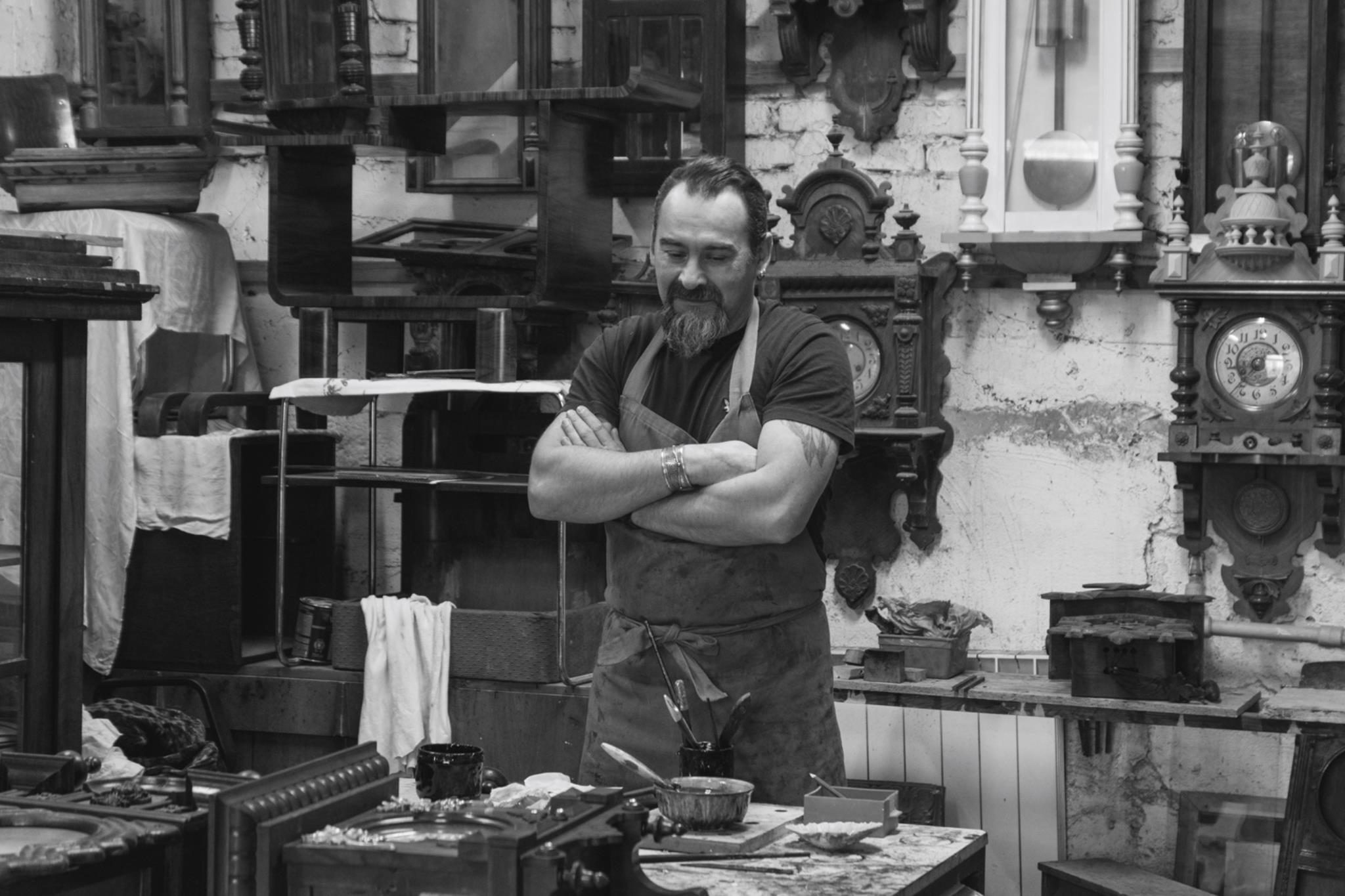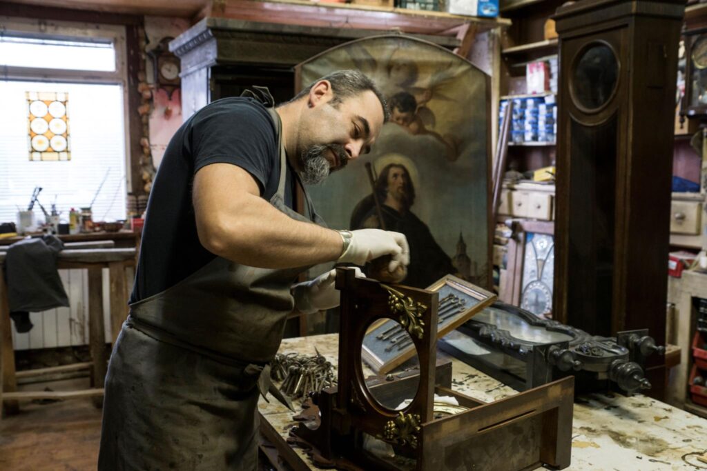 Można tak powiedzieć. Po powrocie do Polski wyruszyłem za głosem serca do Warszawy i oczywiście w poszukiwaniu pracy i… trudno w to uwierzyć na trzeci dzień znalazłem ogłoszenie w prasie “przyjmę do renowacji mebli”. Na spotkaniu pani prezes firmy powiedziała “zegarmistrza na etacie już mamy, ale mogę zaproponować naukę nowego zawodu” – i oto chodziło. Uczyłem się zawodu renowatora mebli, to niesamowita praca łącząca w sobie kilka zawodów na raz, bo i stolarza, politurownika, tapicera, pozłotnika, ślusarza, rzeźbiarza czy malarza. Chłonąłem naukę w tempie natychmiastowym, w ciągu trzech lat przeszedłem wszystkie działy ogromnej jak na tamte czasy pracowni zatrudniającej ponad 90 pracowników. Następnie przeszedłem jeszcze dwie pracownie, by w 1998 roku otworzyć swoją własną. W międzyczasie podjąłem współpracę z kilkoma zakładami zegarmistrzowskimi w Warszawie, wykonując dla nich renowacje skrzynek zegarowych oraz naprawy mechanizmów.